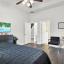 The home features a bright and open floor plan, complete with a private study, formal dining area, and a living room filled with natural light, as well as numerous hidden storage spaces throughout. The kitchen features a large island, ample cabinetry, stainless steel appliances, and a breakfast nook that seamlessly transitions into the living area.