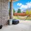 Outdoor living includes a covered patio and a large backyard with a peach tree. Solar panels help keep summer electricity bills impressively low.