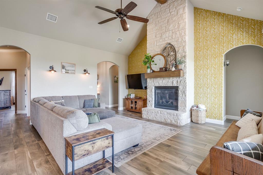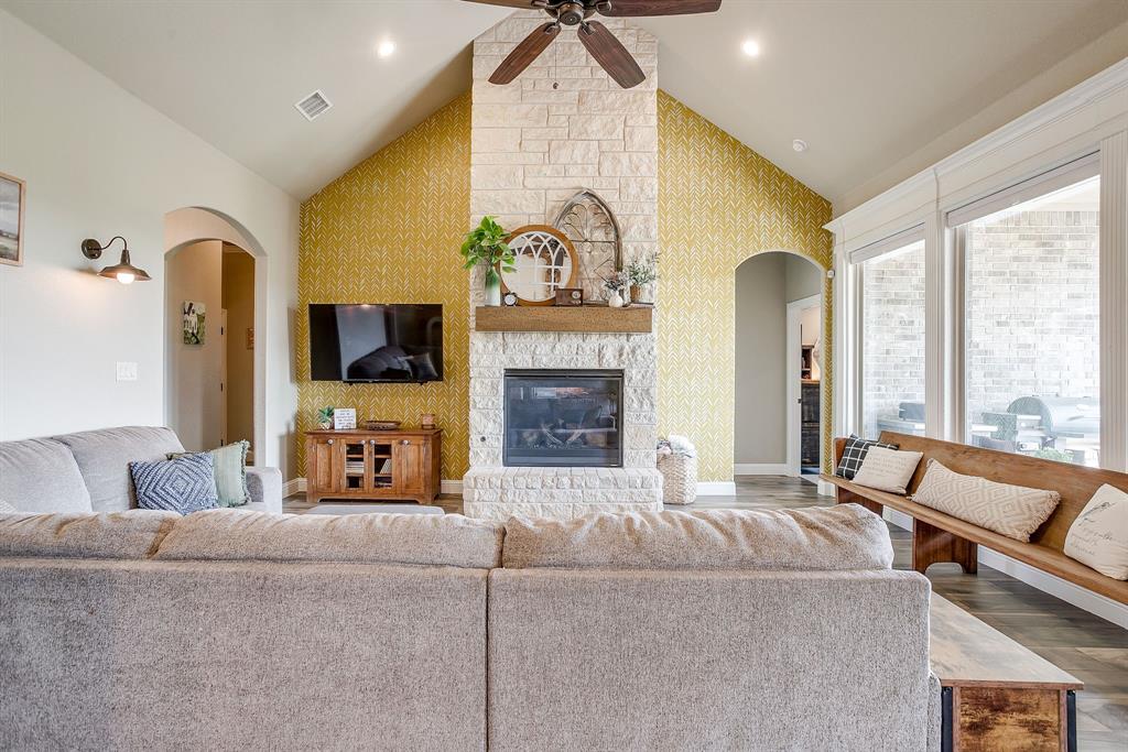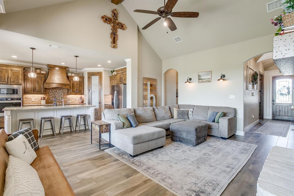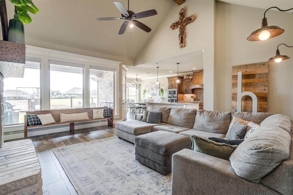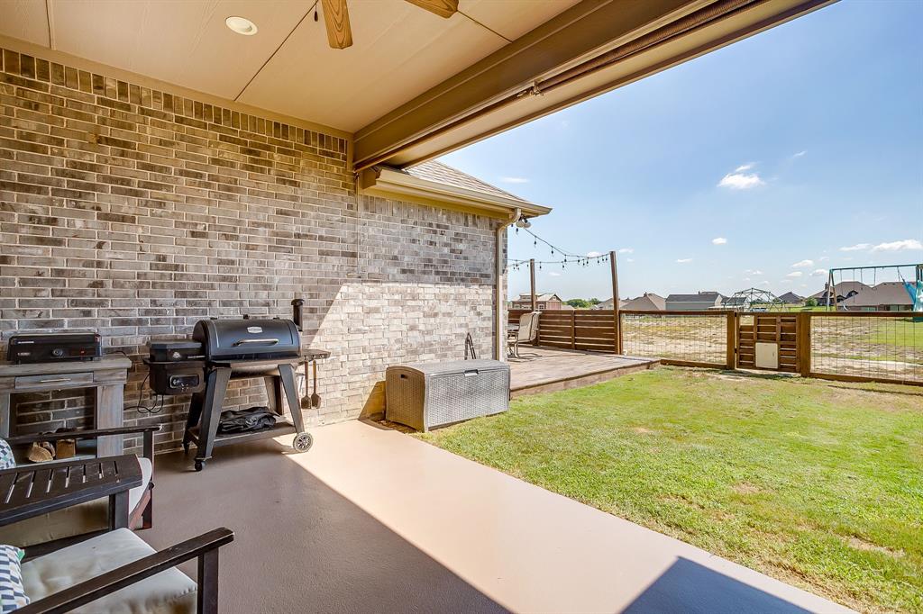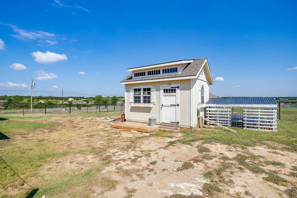 Welcome to a meticulously maintained home featuring a contemporary design with modern amenities! 1 acre of clever and clean landscaped property, open space- ideal for outdoor activities, gardening or room to roam! Inside the home you will experience a bright open floor plan with high ceilings, gourmet kitchen featuring stainless steel appliances, granite countertops, and a spacious island that overlooks a cozy living area with relaxing natural lighting. Luxurious main suite with easy access to the walk in closet. Well maintained lawn, private driveway, and plenty of room for recreational or leisure setups near a covered patio and family gathering deck area! The office is equipped with a closet which allows for this room to be used as a fourth bedroom. 10x14 outbuilding used as storage and chicken coop. The location of this home is great for easy access to the Chisholm trail pkwy. For privacy reasons not all bedrooms are shown in the listing photos.