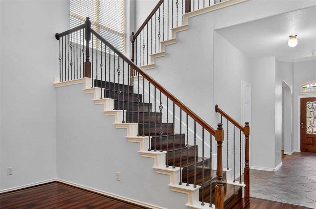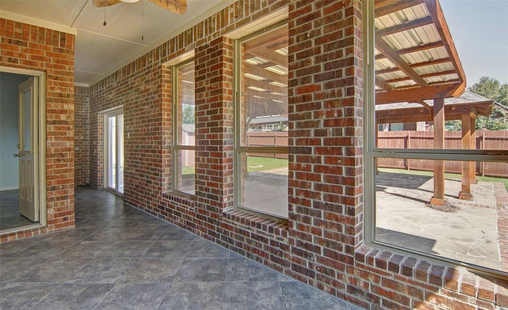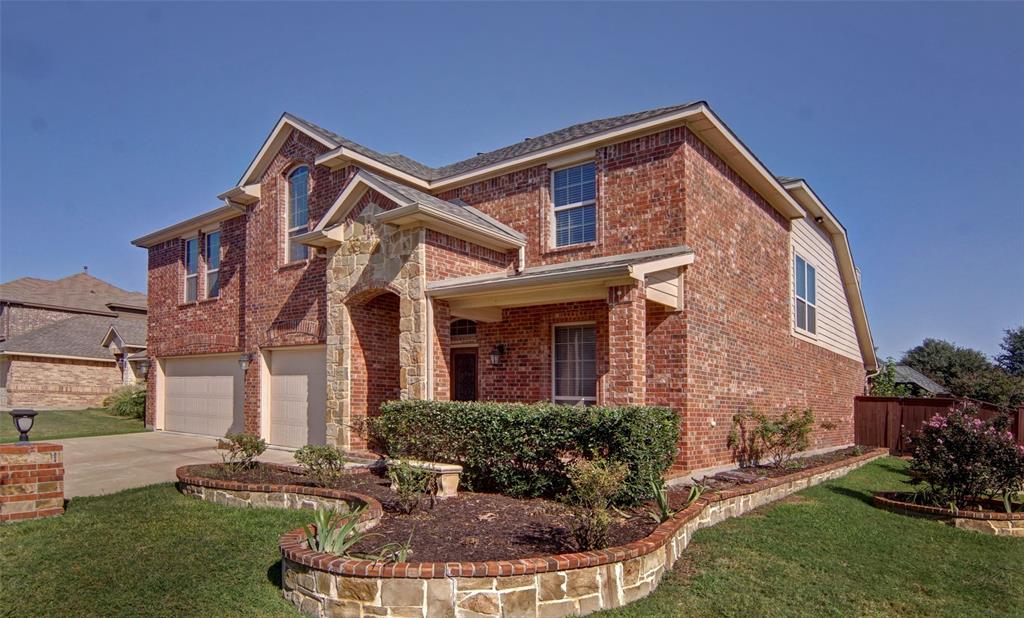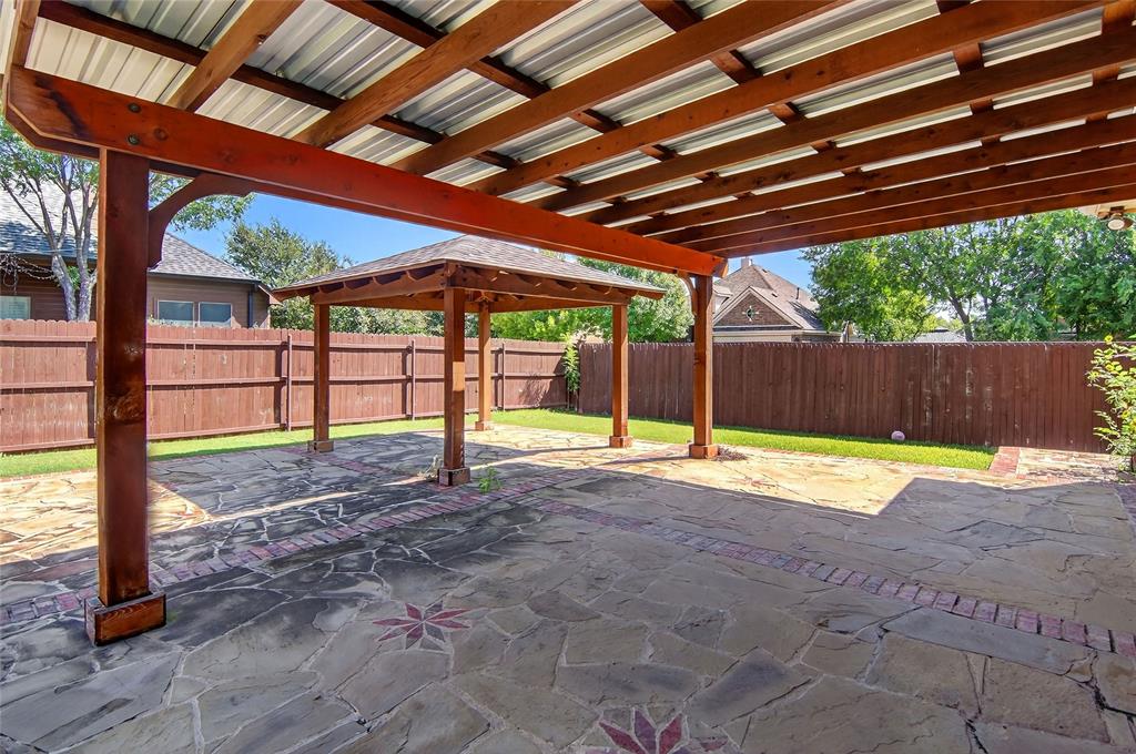 Adding to the home's allure, the exterior features a stunning mix of brick and stone on a corner lot with sprinkler system and gutters. Enjoy the outdoor living with the custom extended patio, complete with a charming pergola perfect for al fresco dining or relaxing evenings under the the Texas sky!