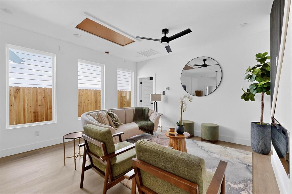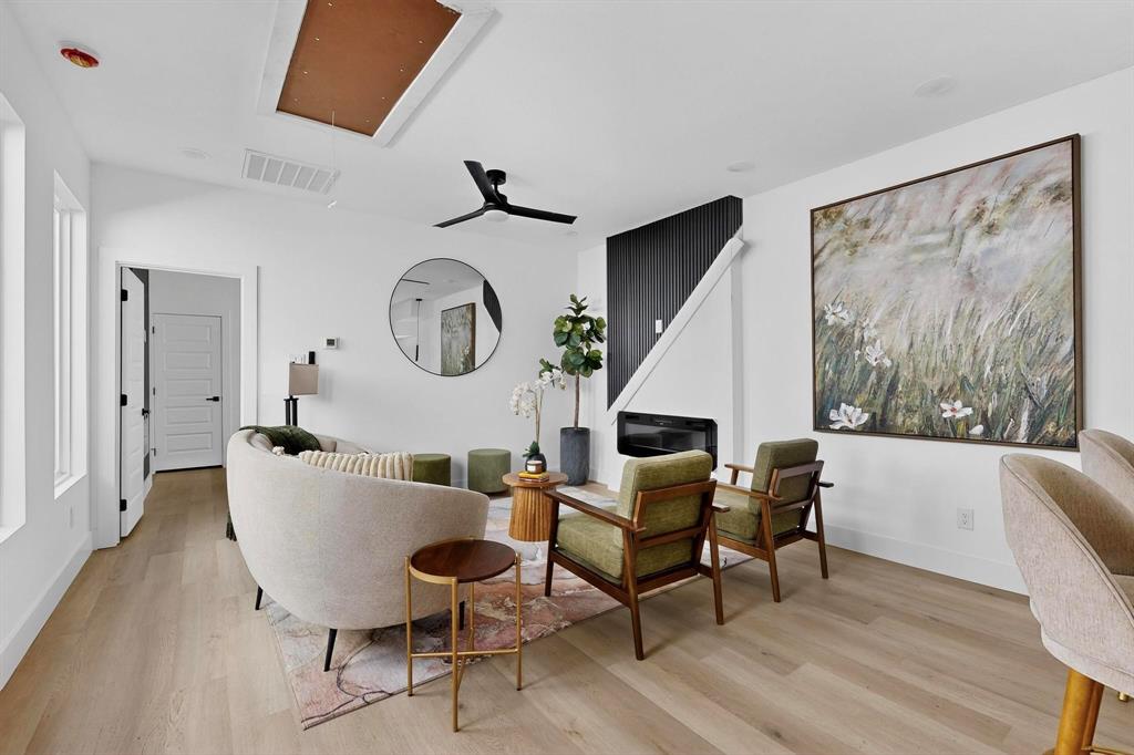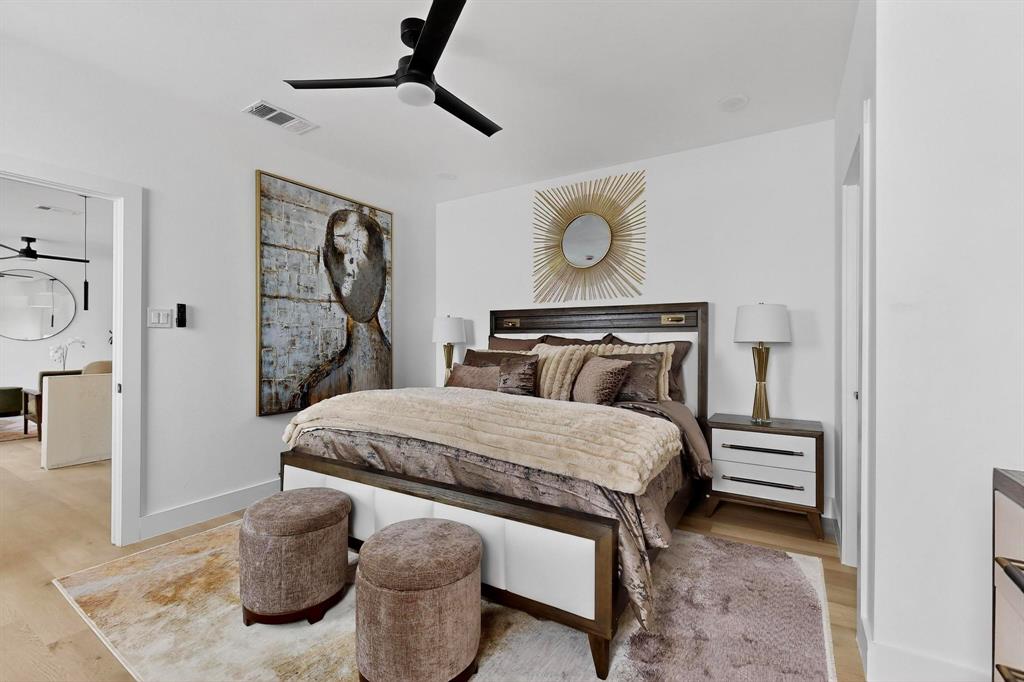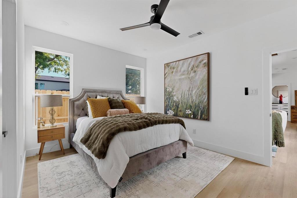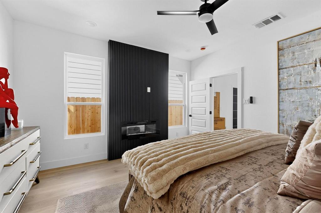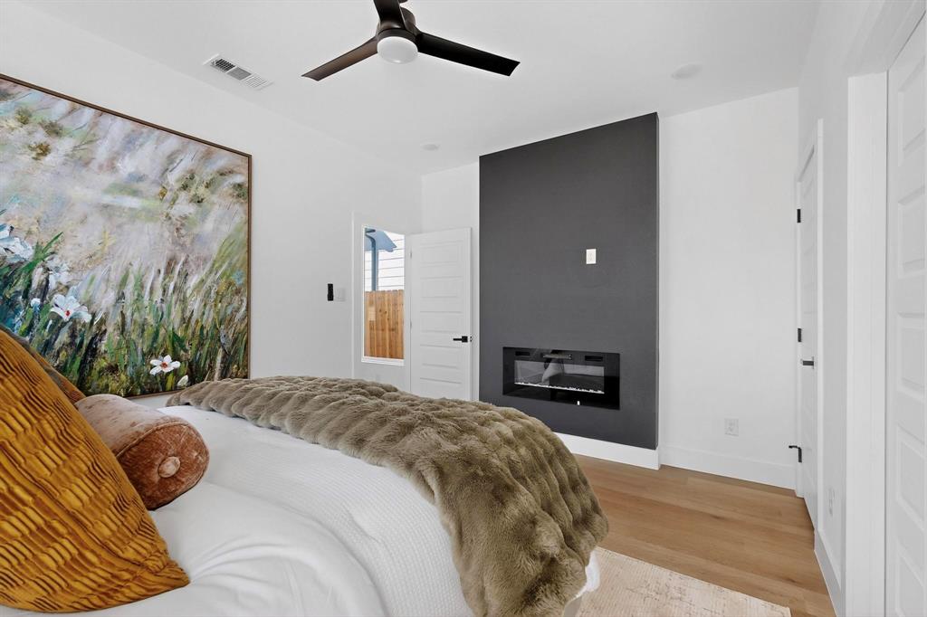 The primary suite is a true retreat, large enough for a king size bed, tons of natural lighting paired with a tv-fireplace adds an extra flare. The lavish spa bathroom includes modern light fixtures, wet area with soaking freestanding tub and shower.