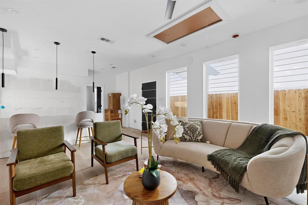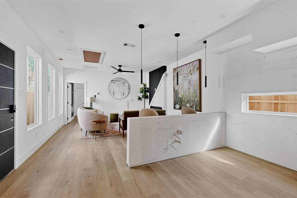 Each home includes a spacious living and kitchen area perfect for everyday living and entertaining. The state-of-the art kitchen includes slick art decor cabinetry, island with waterfall that seats three people comfortably, 30 inch slide-in convection range, stainless over-the-range microwave and dishwasher. Clean architectural lines, LED lighting throughout, and LVP flooring adds sophistication to every room.