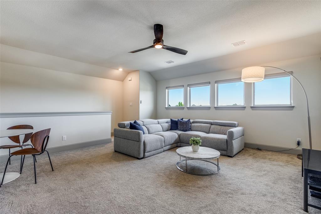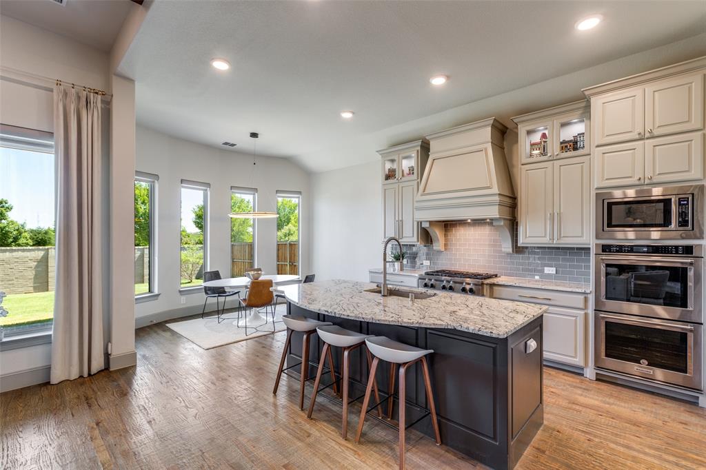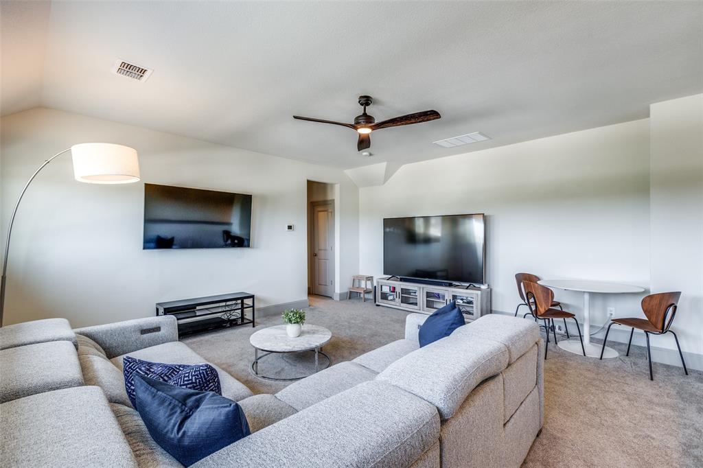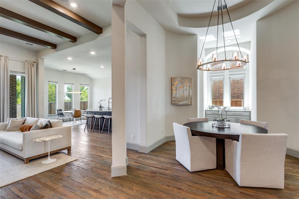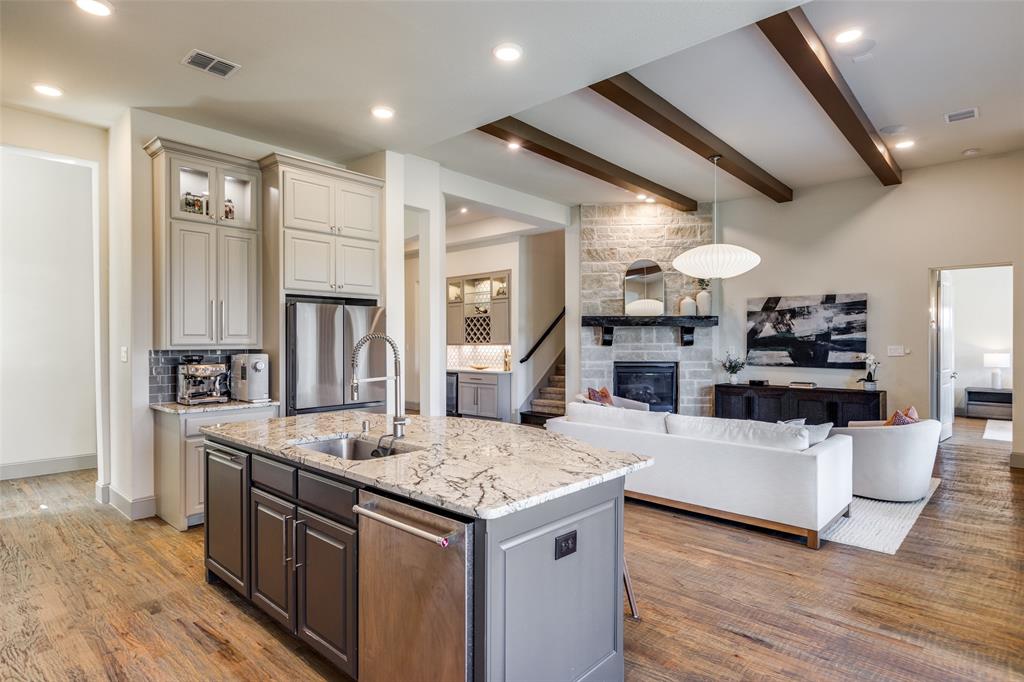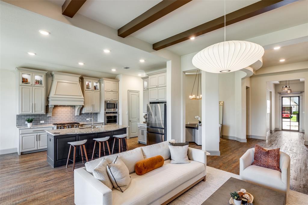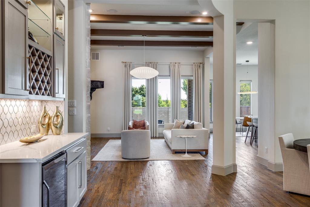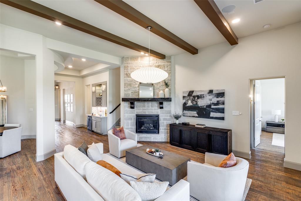 This 1.5-story, three car garage, highly upgraded, Coventry home, located in the prestigious Edgestone at Legacy truly shows like a new home. Perfectly positioned on a premium lot and just a short walk to the pool, gym, and clubhouse, this residence offers both luxury and convenience. Inside, you’ll find gorgeous hand-scraped hardwood floors, soaring ceilings with wood beam accents, and designer touches throughout—including modern lighting, motorized shades, and custom curtains. The chef’s kitchen features high-end finishes, while a custom wine bar with marble counters, storage, and wine fridge makes entertaining effortless. The primary suite boasts an oversized sitting area, spa-like bath, and a fully customized closet system. Two additional bedrooms and a flexible room—ideal as a study, office, or exercise space—are also on the main floor. Upstairs, you’ll find a spacious game room, fourth bedroom, and full bath, perfect for guests or family living. With its blend of refined upgrades, thoughtful design, and unbeatable location just minutes from the Tollway, The Star, and Legacy West, this home truly has it all.