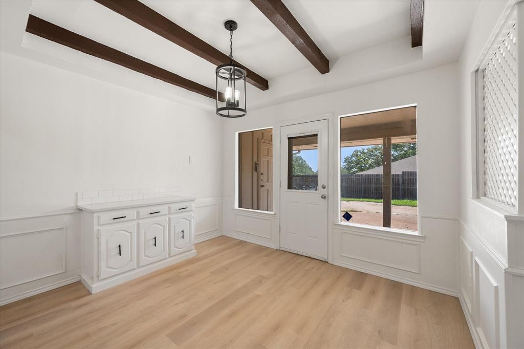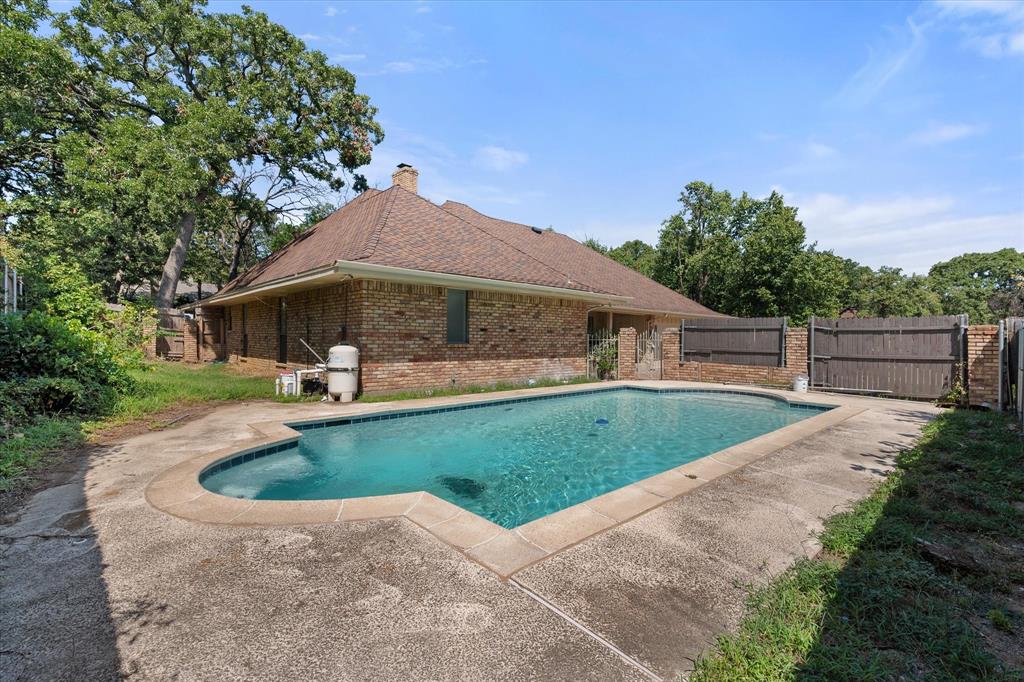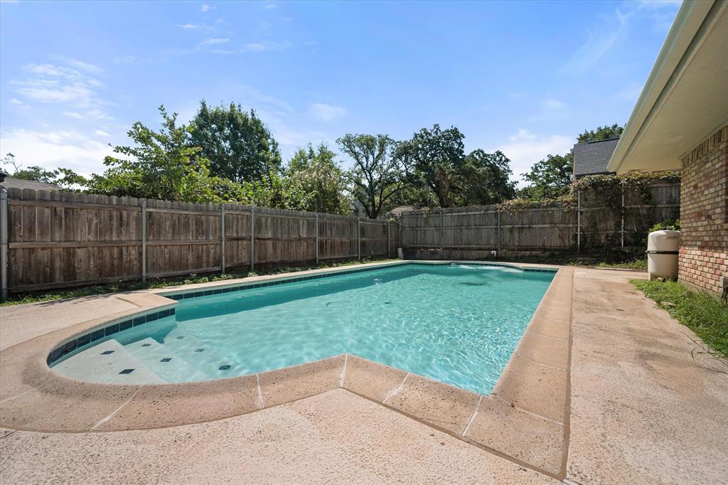 Welcome Home! This beautiful one-of-a-kind home with a pool is situated on an oversized corner lot in the well-established and maintained Cooke's Meadow neighborhood. The home is situated in a cul-de-sac with impressive curb appeal. Pride of ownership shows throughout the neighborhood. It has a ton of natural light that shines through the large windows. Fall in love with the cathedral-height ceilings featuring wood beams in the living area and the kitchen nook. A stunning fireplace is the focal point of the living room with backyard views of a covered porch and pool. There is a large flex space that can be used as a 4th bedroom. game room, homeschool room, or even a library with built-in bookshelves. This home is perfect for entertaining with recently painted cabinets, new appliances, and tile flooring. The primary suite is tucked away for maximum privacy. You'll appreciate the spa-like primary ensuite and walk-in closet. It provides the perfect getaway! New flooring throughout and updated secondary bathrooms as well. Come see what this home has to offer.