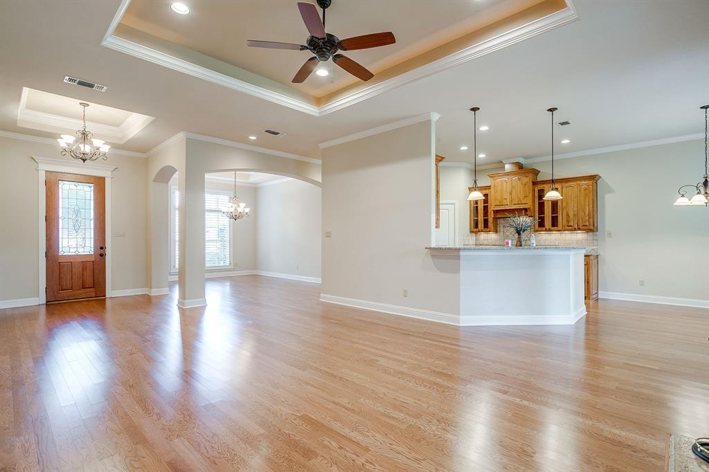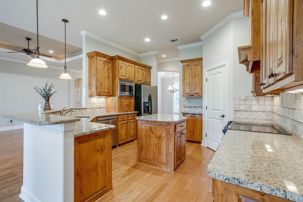Pecan Plantation One owner custom built home. Beautifully maintained home offers an open, inviting floor plan with gorgeous hardwood floors throughout. The formal dining room features a coffered ceiling & upgraded fixtures, while the spacious living area boasts a tray ceiling, recessed lighting, & stone fireplace as the focal point. Plantation shutters add timeless elegance throughout the home. The kitchen is a chef’s dream with granite countertops, a large island, custom upgraded cabinetry, a tumbled marble backsplash, bar seating, a breakfast nook, pantry, & abundant counter space. Oversized primary suite includes a sitting area, coffered ceiling, & a luxurious ensuite bath with dual vanities, jetted tub, separate tiled shower, & a skylight that fills the space with natural light. The expansive walk-in closet offers exceptional storage. Secondary bedrooms are generously sized & share a full bath with an upgraded tub and custom tile work. The upstairs bonus room includes a walk in closet, full bath & could serve as a 4th bedroom, guest suite, or game room. Addtl highlights, split bedroom layout, Utility room with sink, hidden ironing board & space for an additional refrigerator, Extended patio with views of mature pecan trees, St. Augustine grass & frequent deer sightings, Oversized garage plus golf cart garage. Resent updates, NEW main AC, NEW dishwasher, NEW roof & gutters. Search YouTube 'Everything about Pecan Plantation Rebecca Van Buren' to learn about our amazing community.