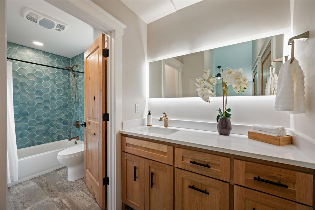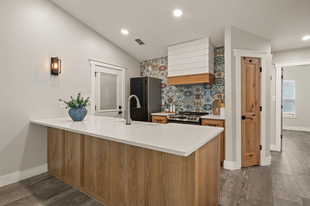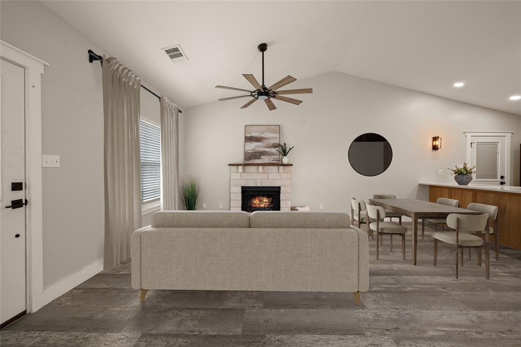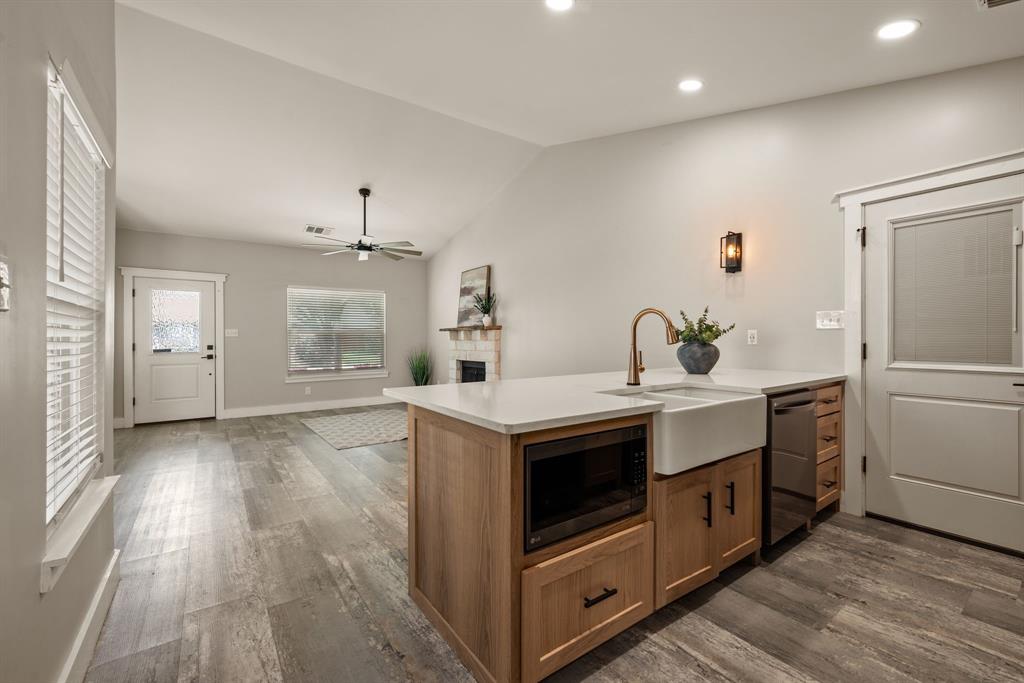Prepare to fall in love! This is not your average renovation; it's a thoughtfully designed masterpiece. Every detail in this 3-bed, 2-bath home was curated in 2022 to create a space that is both stunningly modern and incredibly warm. As you enter, you are greeted by durable and beautiful Luxury Vinyl Plank (LVP) flooring that flows seamlessly throughout the entire home. The open-concept living space features sleek, flat-textured walls and is anchored by a stone fireplace, creating a warm and inviting focal point. The heart of this home is the magazine-worthy kitchen. A vibrant, Mediterranean-inspired tile backsplash provides a stunning backdrop for the warm white oak cabinets, quartz countertops, and custom-built, shiplap range hood. A private primary suite offers a tranquil retreat with an updated en-suite bathroom. Two additional bedrooms provide flexibility for family or a home office. Complete with an attached one-car garage, this home's location within the acclaimed Keller ISD makes it a truly exceptional find. Convenient access to highways, shopping and dining!