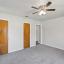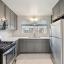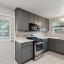 The kitchen features shaker-style cabinetry, new countertops, flooring, and equipped with a gas range, microwave, refrigerator. The bathroom was remodeled just two years ago, boasting a sleek and modern walk-in shower. The primary bedroom is split from the other bedrooms, allowing for privacy.