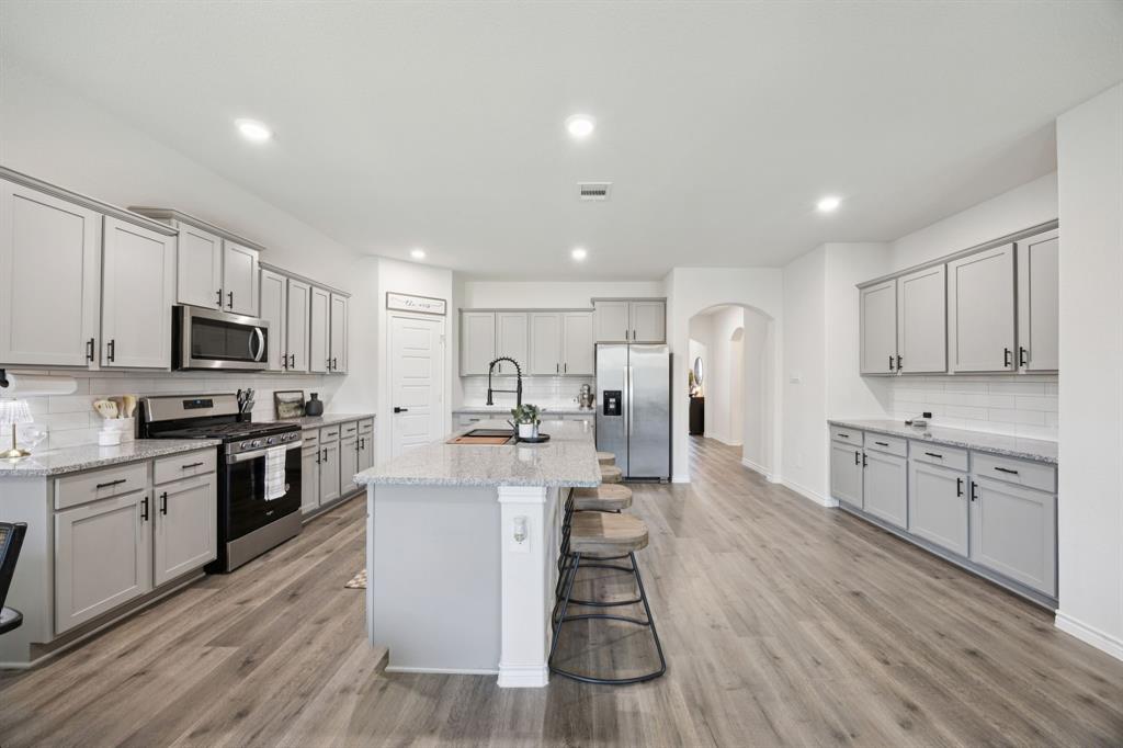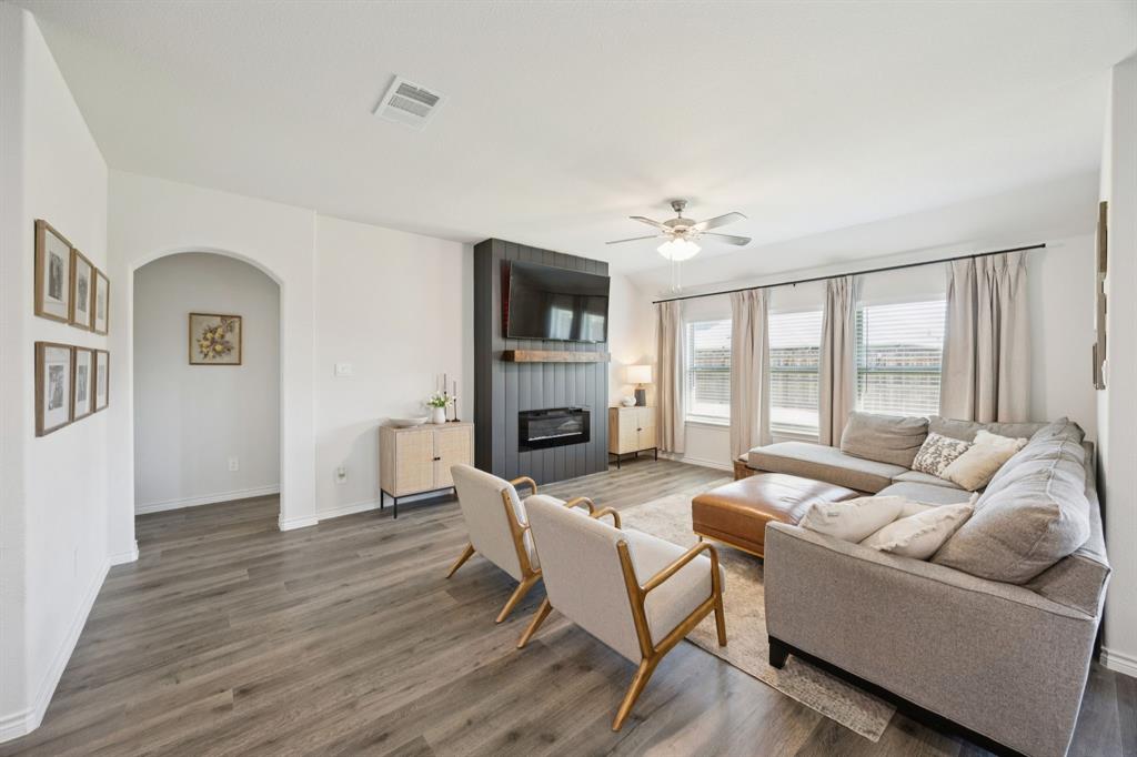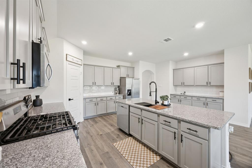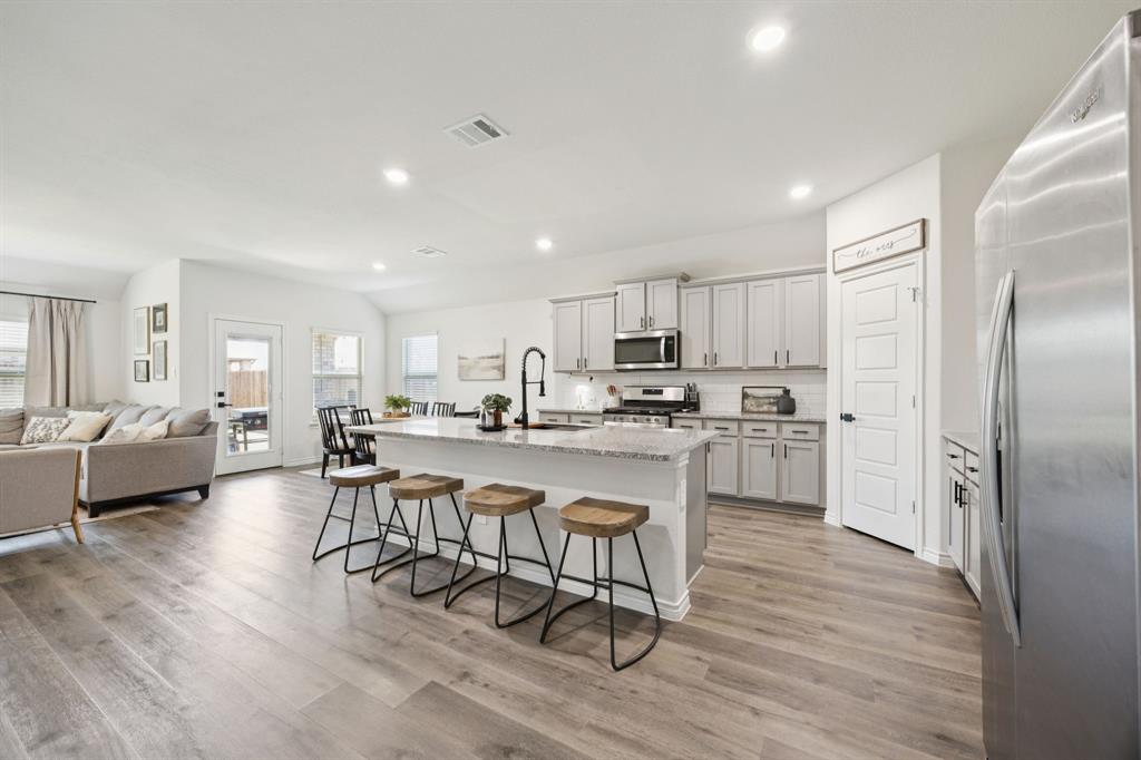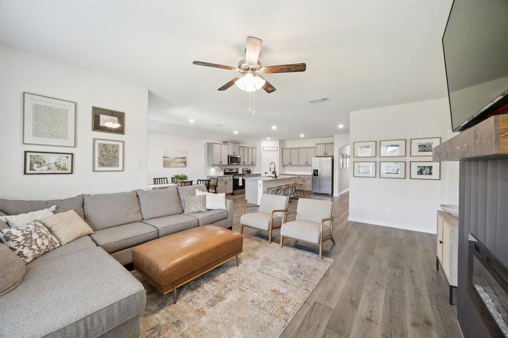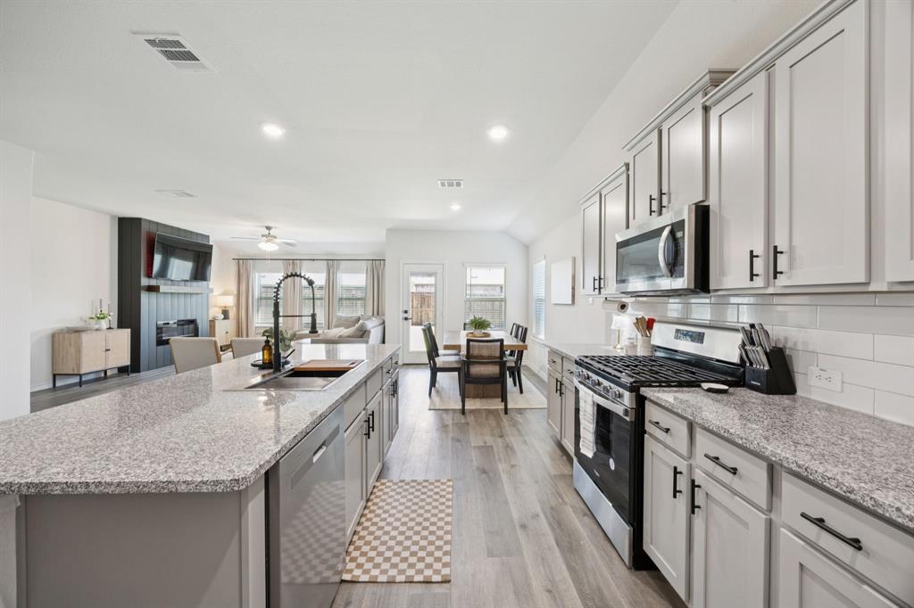 Here is your chance to own one of the neighborhood’s most highly sought-after floorplans ... no longer being built here, making this home a true gem. Perfectly situated just half a block from a brand new huge park, splash pad, playground, and community pool, you’ll enjoy resort-style amenities just outside your front door. Inside, the open-concept design is both stunning and practical, offering endless counter space and abundant kitchen cabinetry—a dream for anyone who loves to cook, host, or simply stay organized. Stylish cabinet hardware and upgraded door handles have been added throughout for a touch of elegance and function. The spacious family room provides plenty of room to grow or gather, anchored by a custom fireplace and mantle that create a warm, inviting focal point. The great use of space doesn't end there. You need to see the primary bedroom and oversized closet to believe it! Best of all? Say goodbye to carpool line stress ... this home is directly across the street from a brand-new, state of the art elementary school. Convenience doesn’t get better than this! Don’t miss your chance to own a floorplan that’s no longer available in new construction, paired with unbeatable proximity to recreation, community, and education.