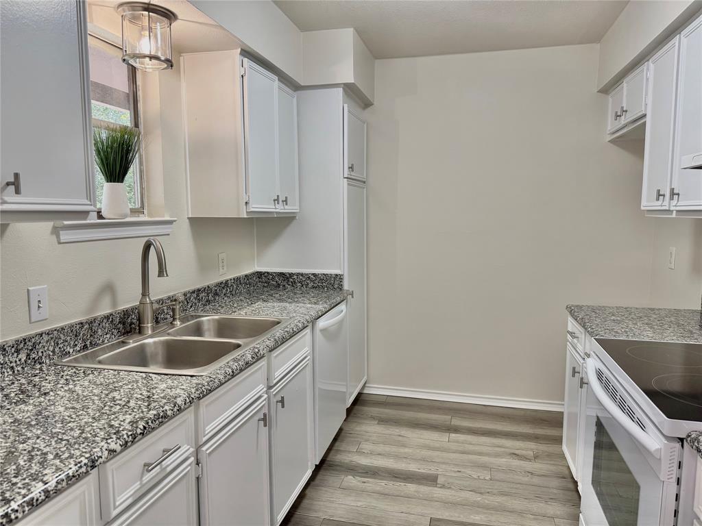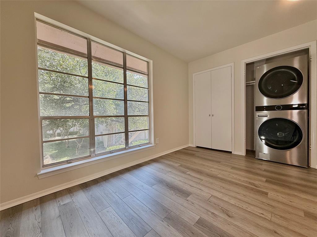 Come see this recently updated and affordably priced second-story condo. This centrally located home offers two bedrooms, one bathroom, and large windows that fill the space with natural light. The open living and dining areas provide a welcoming place to unwind, and a stackable washer and dryer are included for added convenience. Off the dining room, the east-facing balcony is shaded by a large tree in the communal area, creating a peaceful spot for fresh air. This gated community offers easy access to shopping, dining, public transportation, and major highways. HOA fees cover water, electricity, and exterior maintenance for a low-maintenance lifestyle, and the unit includes assigned covered parking space 186.