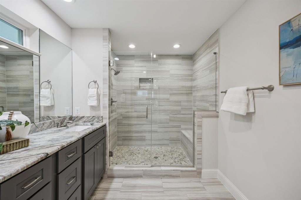 With 3 generously sized bedrooms & 2.5 baths, there's room for everyone. The primary suite is a peaceful retreat, complete with a large walk-in closet, dual vanities, & an oversized shower with frameless glass. The spacious laundry room offers additional storage & leads directly to the attached two-car garage. The lush backyard, cultivated & cared for by avid gardeners, offers a serene outdoor escape with extensive landscaping, flagstone pathways, and thoughtful lighting that enhances the entire yard.