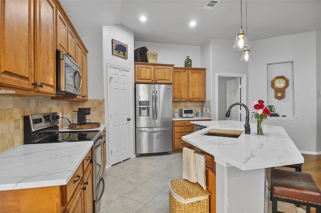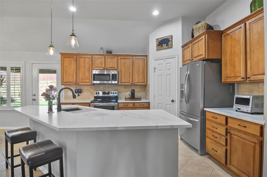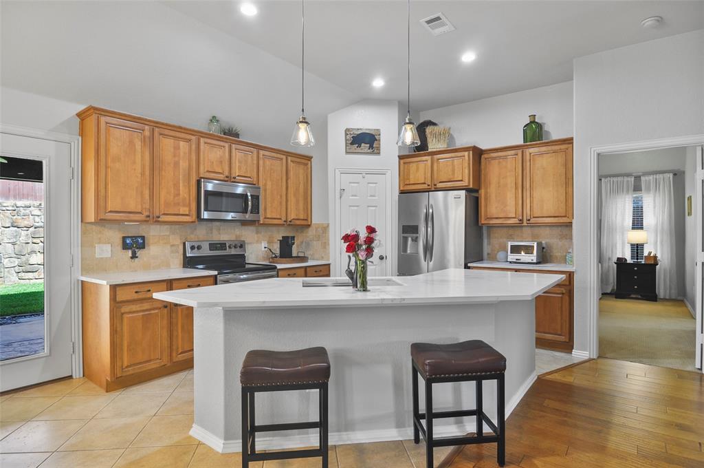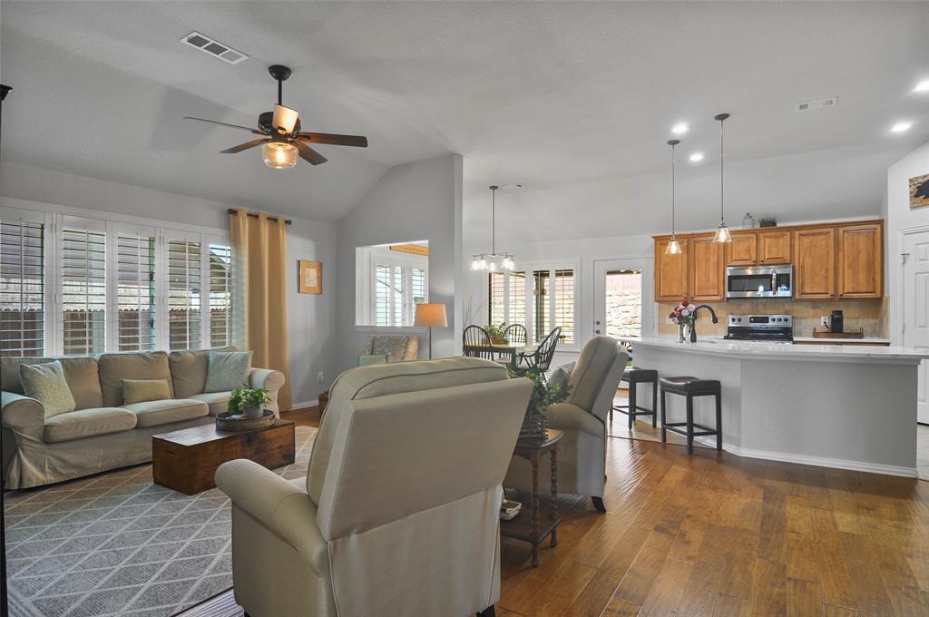 Built in 2004 but looks and shows like a brand new model home. fantastic open floorplan with split bedrooms and great layout. the updates this seller has done are incredible and include both baths, kitchen, back porch, updated heat and air, roof, windows, hardwoods in all public areas, plantation shutters in public rooms. ceiling fans and much more.parklike yard with covered front porch and professionally done covered back patio. in beautiful Mountain valley and a block from the lake and amenities. Burleson Address with Joshua ISD. this is truly a must see in this price range..