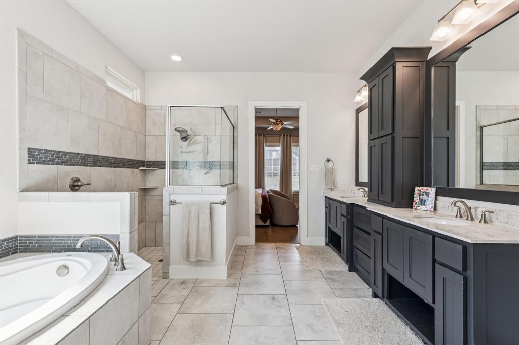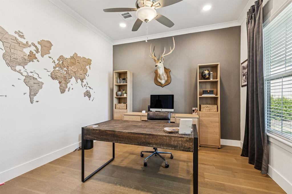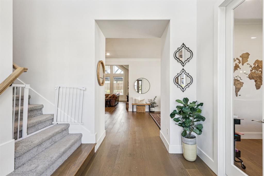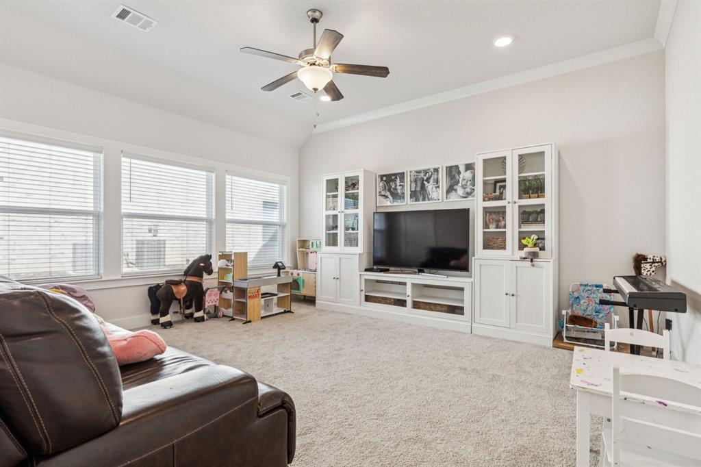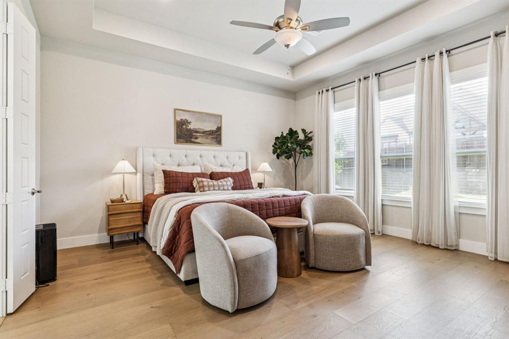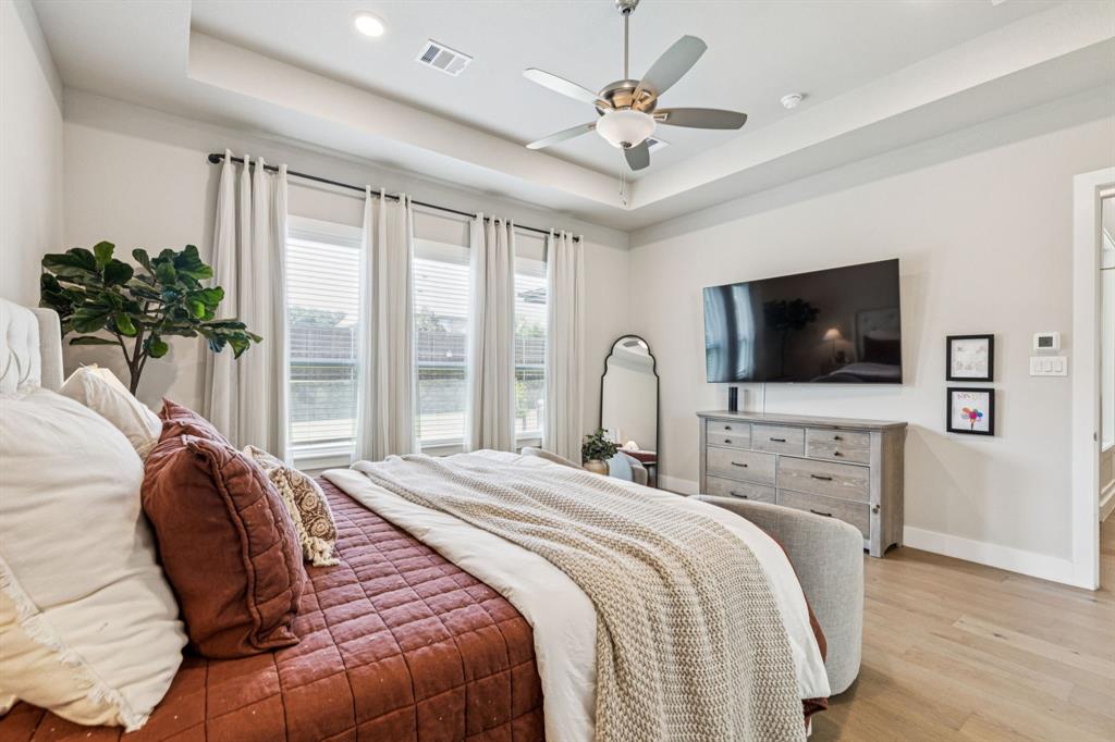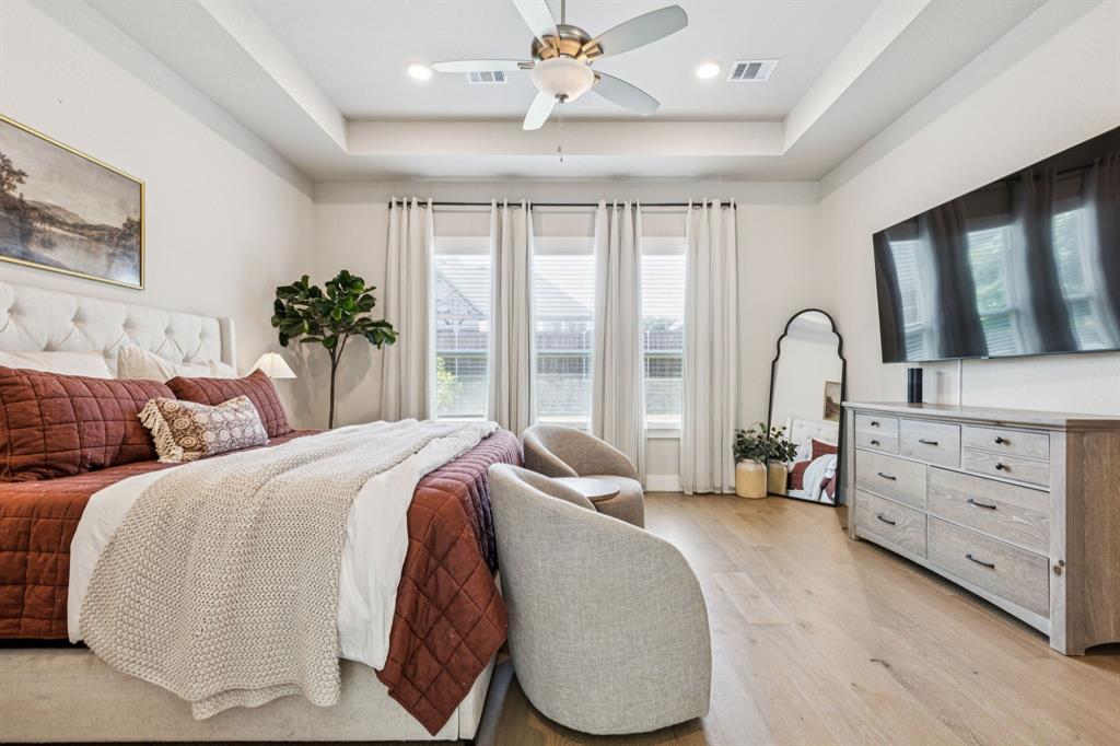 Stunning 4 bed, 3 bath two story in coveted 5T Ranch just a short walk from Hilltop Elementary! Large great room with open floor plan and oversized kitchen island. An entertainer's dream home with abundant space for socializing and phenomenal back patio living space and fire pit. Wide plant light oak floors throughout with abundant natural light cascading from huge living room windows. The primary suite is a relaxing retreat with soaking tub and frameless shower. Large walk in closet with convenient direct access to the laundry room. Spacious downstairs game room provides great flexibility for any family. Office with double french doors is perfect for WFH. Upstairs features two bedrooms, a shared bathroom, and a loft space for additional flexibility. Oversized back yard has plenty of space for a pool if buyer desires. All of this in the heart of Argyle, zoned to highly rated schools. 5T Ranch features a community playground and miles of walking trails that lead directly to Hilltop Elementary so families with young children can walk to class.