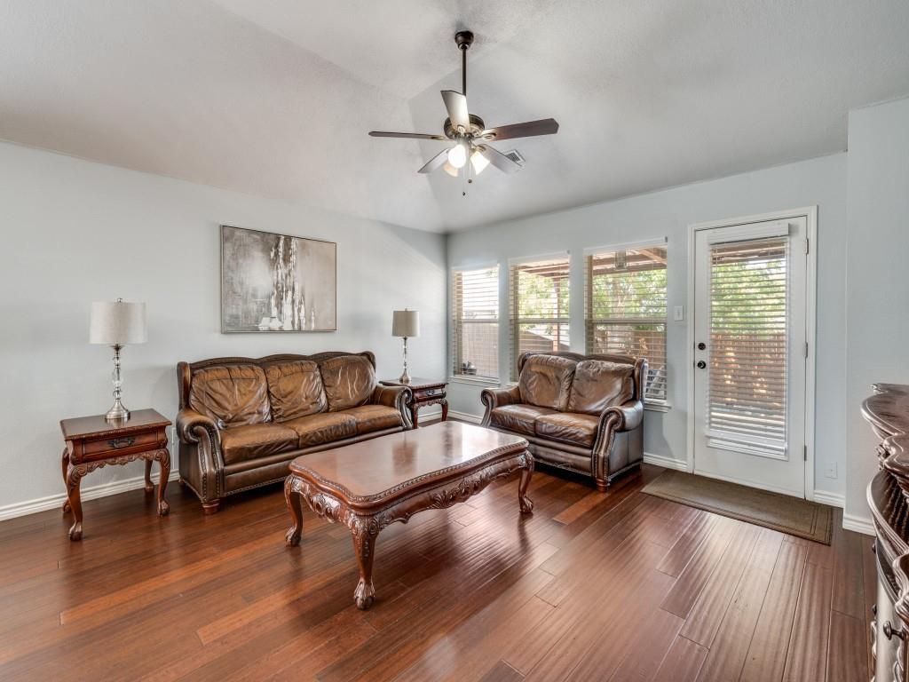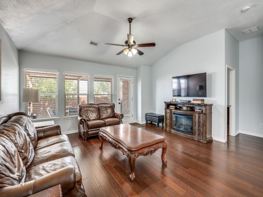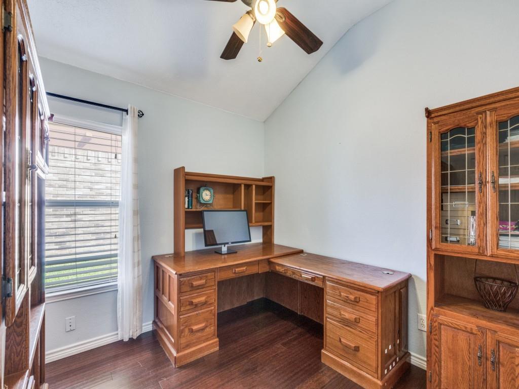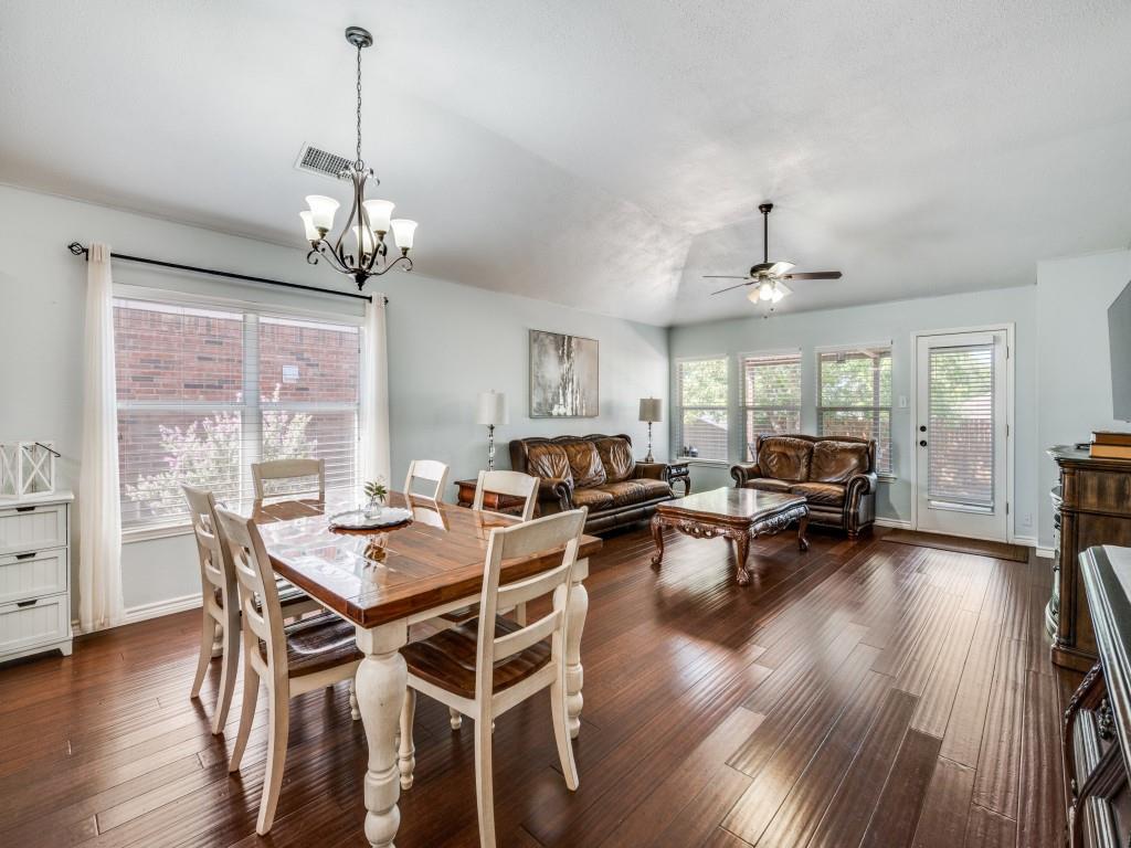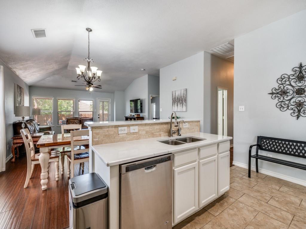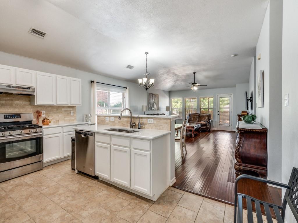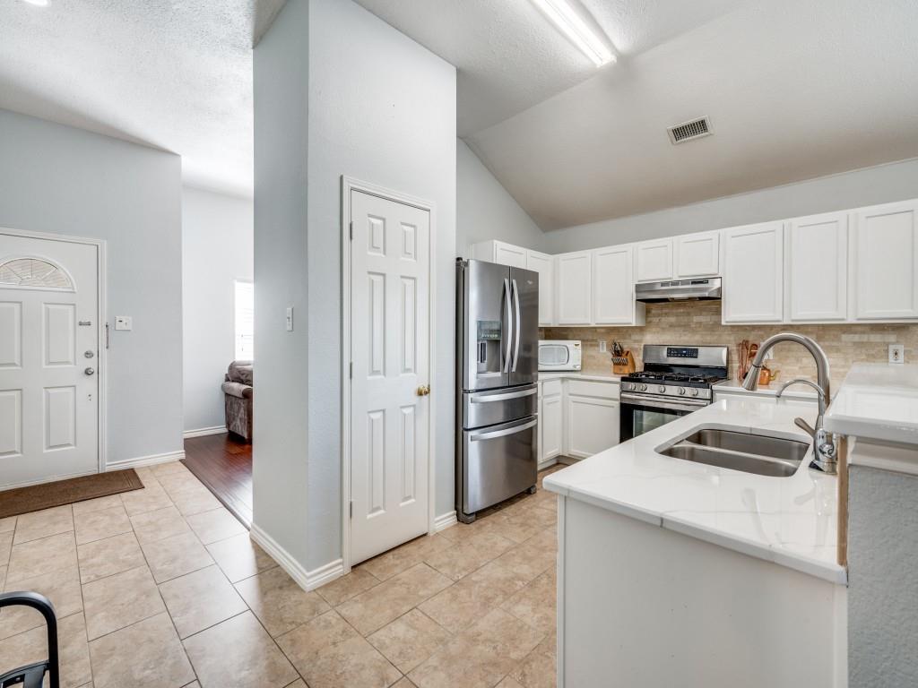 Immaculately kept home in the highly sought community of Parkside, feeding the Birdville ISD school system and available for immediate occupancy! Your arrival is greeted by a tree canopied front lawn and beautifully landscaped front flowerbed, then through the front door to the foyer featuring gorgeous wood look, easy care laminate flooring throughout, leading past the formal dining room (which would make a great office-study for the work from home professional, to the gourmet kitchen at the heart of the home. Kitchen features gleaming quartz c'tops, SS appliances, an abundance of cabinet space and a full pantry to delight the family chef! Beyond the kitchen is a spacious breakfast nook and the inviting family room featuring a wall of windows overlooking the covered patio and privacy backyard perfect for the kids to run and play or for hosting those Sunday afternoon BBQs at your house! The split primary suite features a custom built frameless glass enclosed stand up shower and an oversized walk in closet. Two additional oversized bedrooms share an adjoining hall closet to meet your growing family needs. This lovely home stands apart from the crowd in this price range, so be sure to come see it soon!!