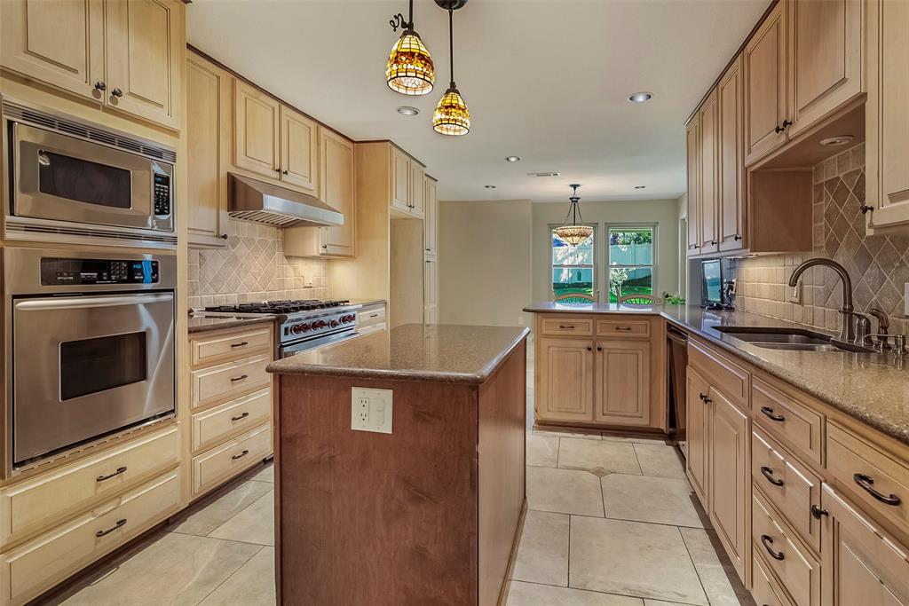 Traditional, well-cared for home that blends high-end finishes, functional spaces, and comfortable living on a sprawling, secure lot with a side entry garage and swing drive. Wood-look tile graces the major traffic areas and bedrooms and provides durable flooring with a stylish appearance. Step into the updated kitchen, where cooking and gathering are a joy with a six burner gas Wolf range, tons of storage (including two pantries), granite countertops, island, breakfast bar and breakfast room with charming exposed brick stoop. The layout is ideal for both everyday living and entertaining. The primary suite is a true retreat, featuring a cathedral ceiling, a spacious ensuite bath, and two walk-in closets—all designed with full wheelchair accessibility. The second bedroom offers a built-in desk and walk-in closet, while the third bedroom also features a walk-in closet. Both rooms share spacious hall bath. Split fourth bedroom and full bath off kitchen are perfect for in-laws, guests, or home office. An oversized utility room with a storage closet and a lovely stained glass window adds both charm and practicality. Outside, enjoy a huge lot with sprinkler system, storage shed and room to roam or relax. New windows, many with plantation shutters, throughout. Garage offers electric car charging and extra storage space, as well as powered door access with remotes to allow additional wheelchair accessibility. Just minutes from The Bedford Center YMCA, Generations Park and tons of retail and dining options, this lot and this home are special!