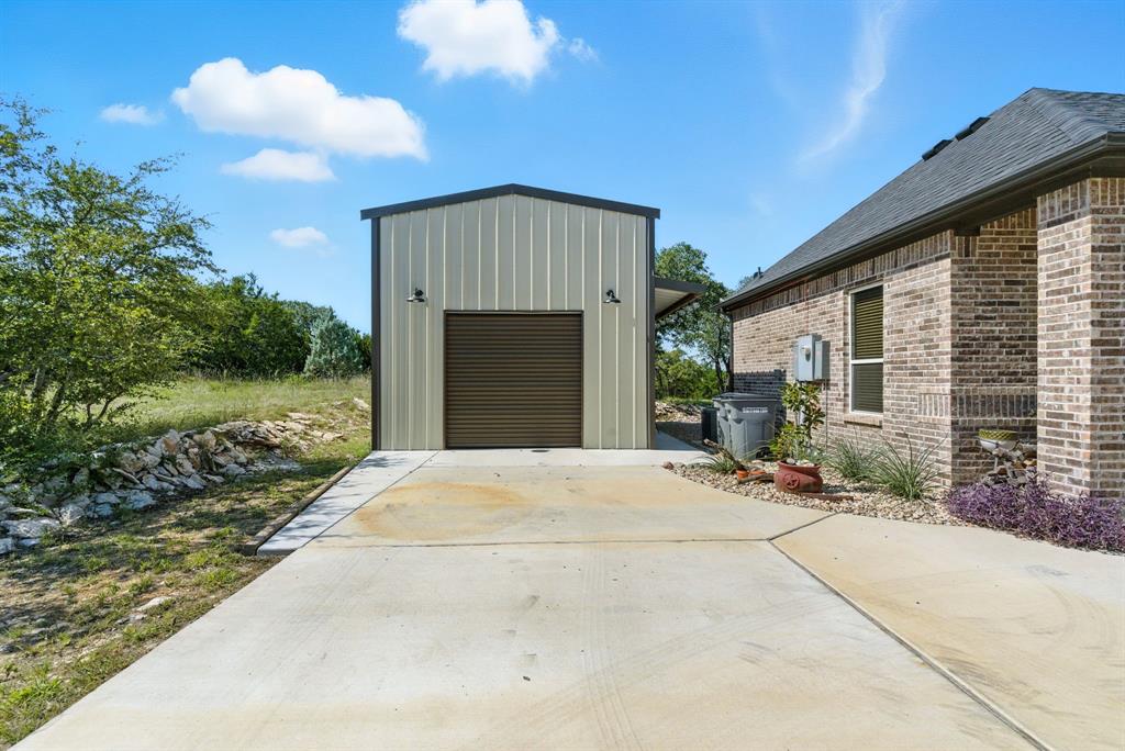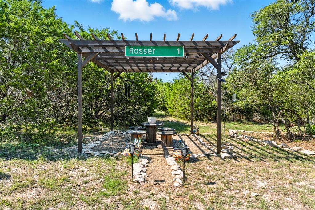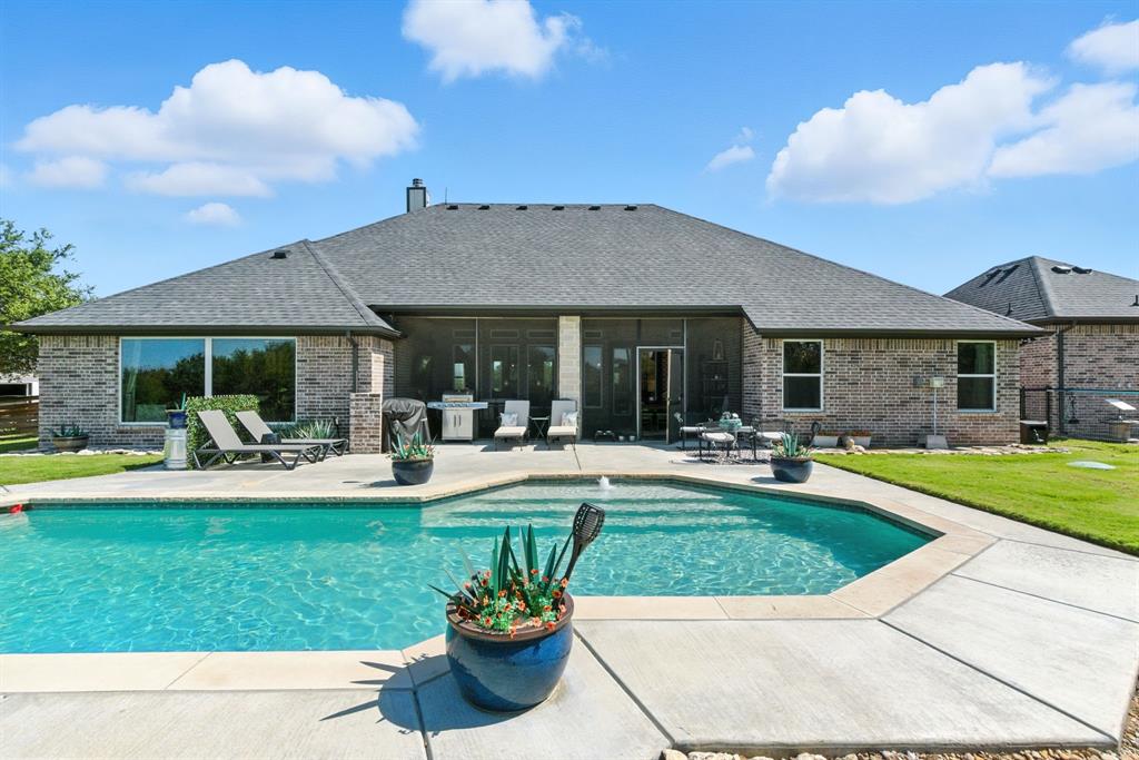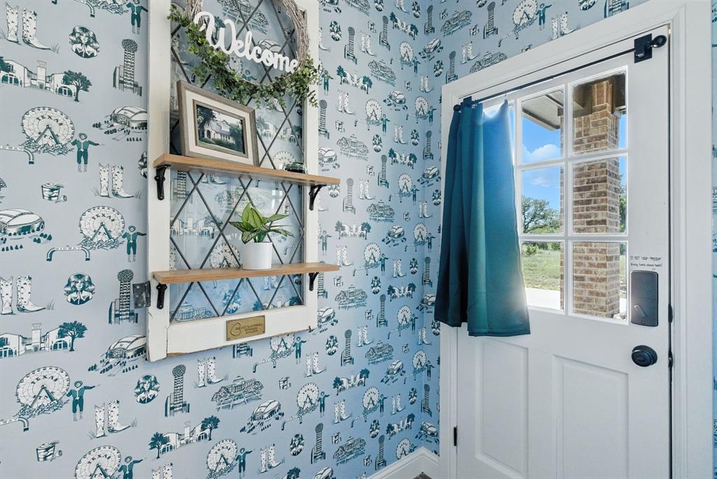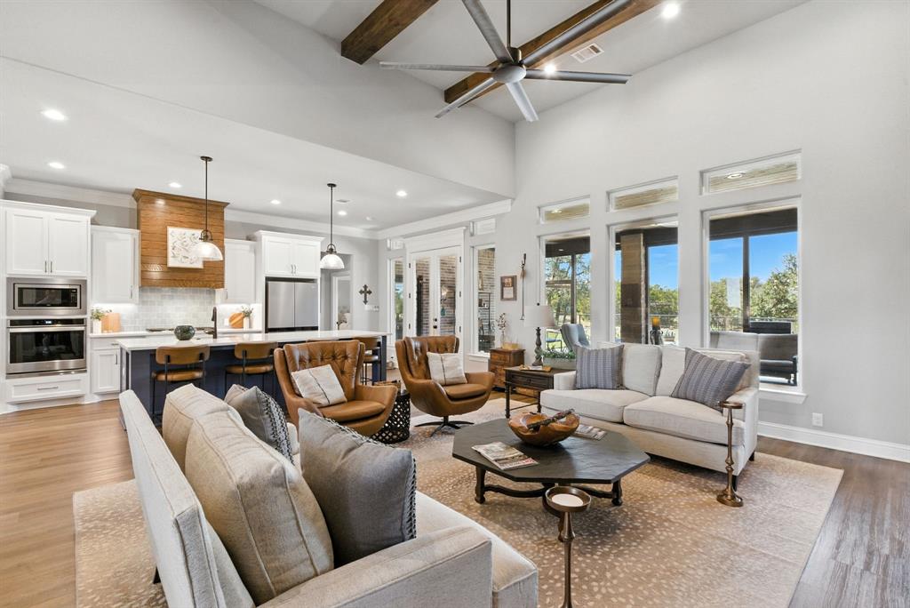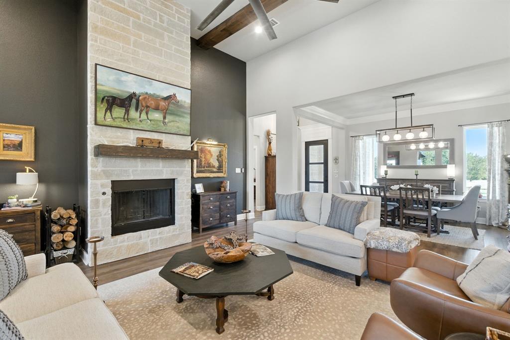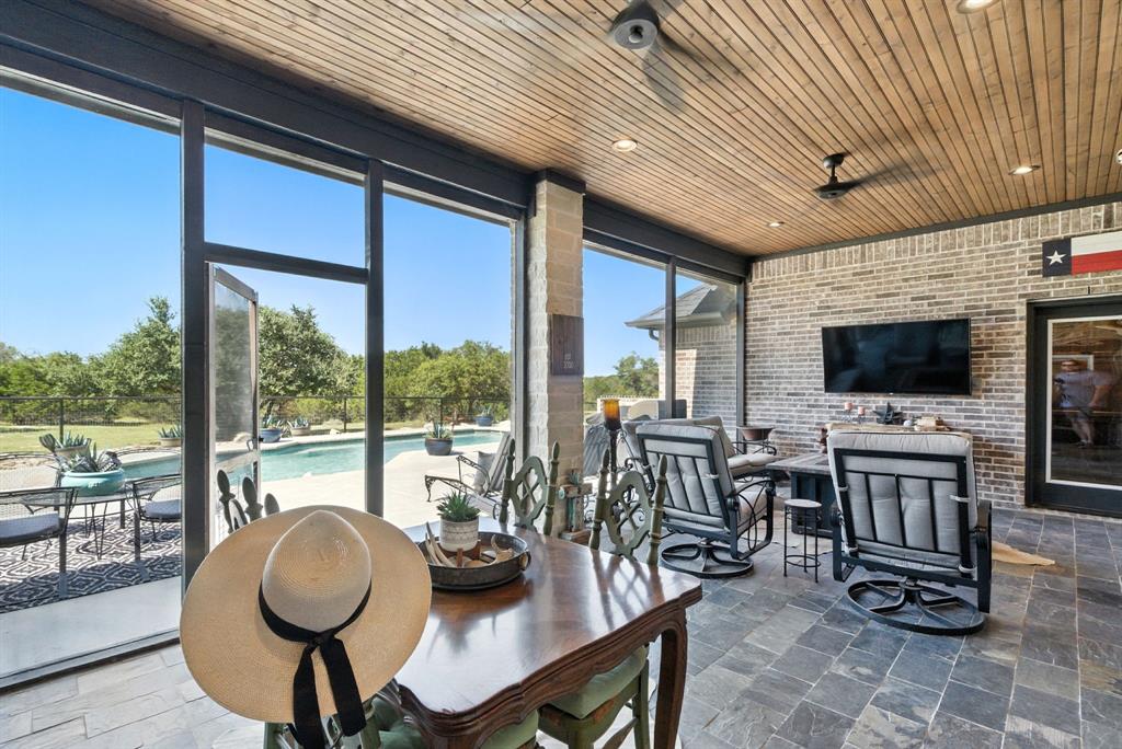 Gorgeous custom home tucked away on 2 private acres in the gated Timber View Ranch. Dramatic vaulted beamed ceilings and walls of windows set the tone for open living spaces that bring the outdoors in. The kitchen is as beautiful as it is functional, designed to inspire both everyday living and effortless entertaining. Gorgeous tile work, gas cooktop with custom wood range hood, a luxurious island and tons of cabinet space add to this wonderful kitchen. A true formal dining room to gather around the table. A striking den with a wet bar and expansive picture windows creates a perfect cozy escape. Spacious primary suite with lots of seating area and spa-like bath along with a large walk in closet and enjoy your private entry onto the back porch. Split secondary bedrooms. The beautiful screened-in porch is an inviting space for morning coffee or the perfect spot for game night. Sit out under the stars or beat the heat in the sparkling pool! Guests will love the charming 1-bedroom, 1-bath guest quarters with full kitchen, living, and laundry room with private entry. 16x20 workshop with extra storage in the loft. Hit the home gym or embrace your adventurous side with serene walking trails winding through the trees creating the the perfect place to unwind in nature. Impeccably maintained inside and out. Just minutes from both Weatherford and Granbury.