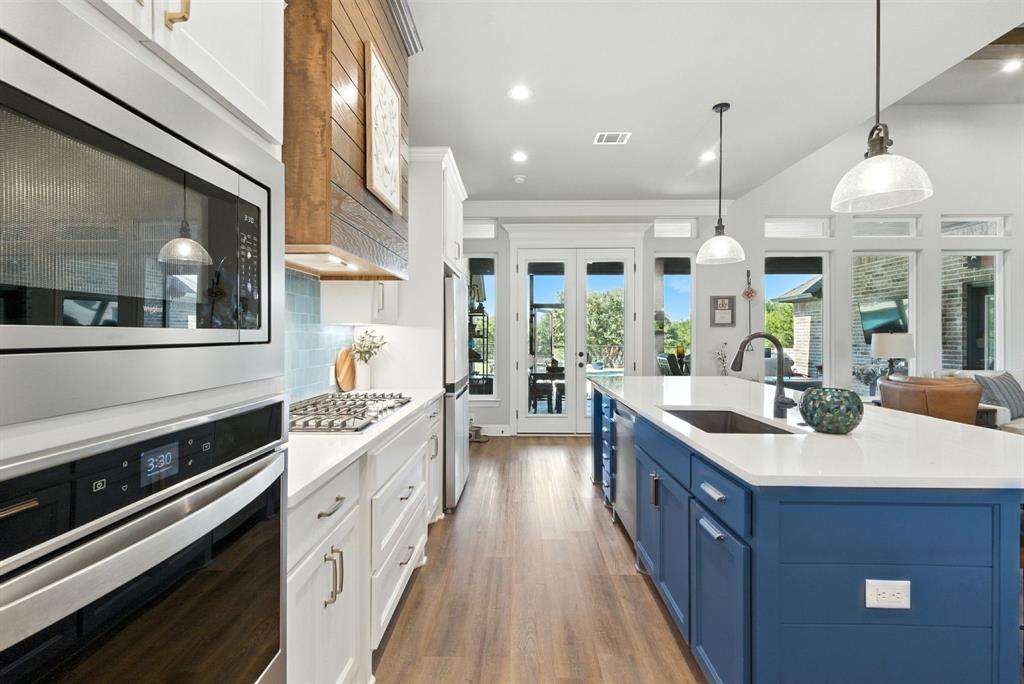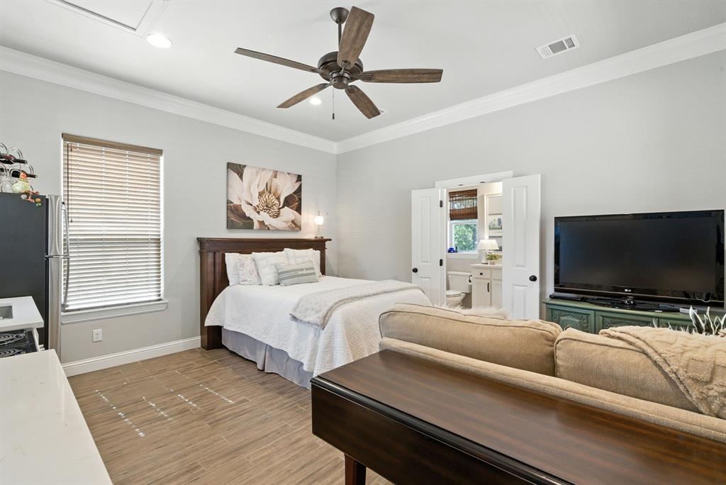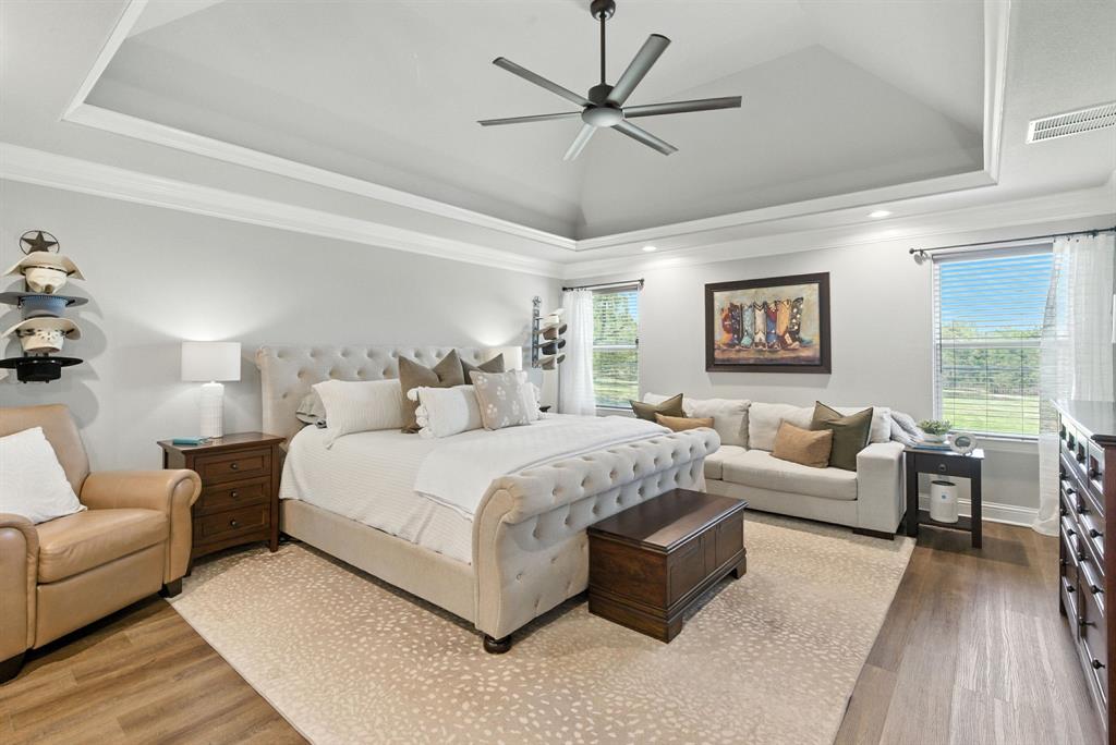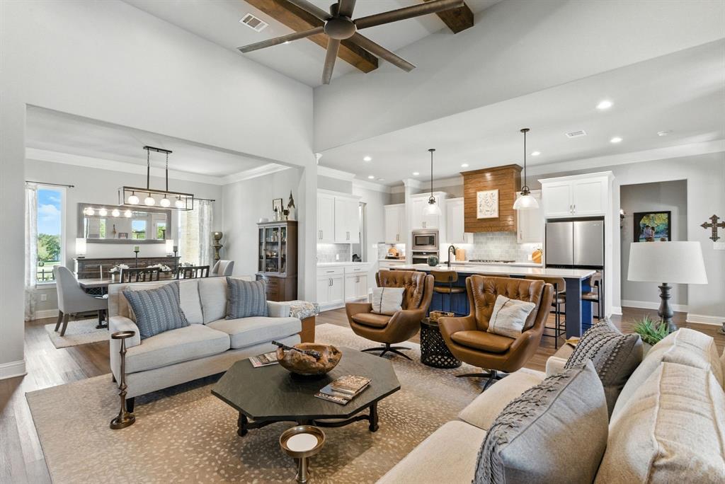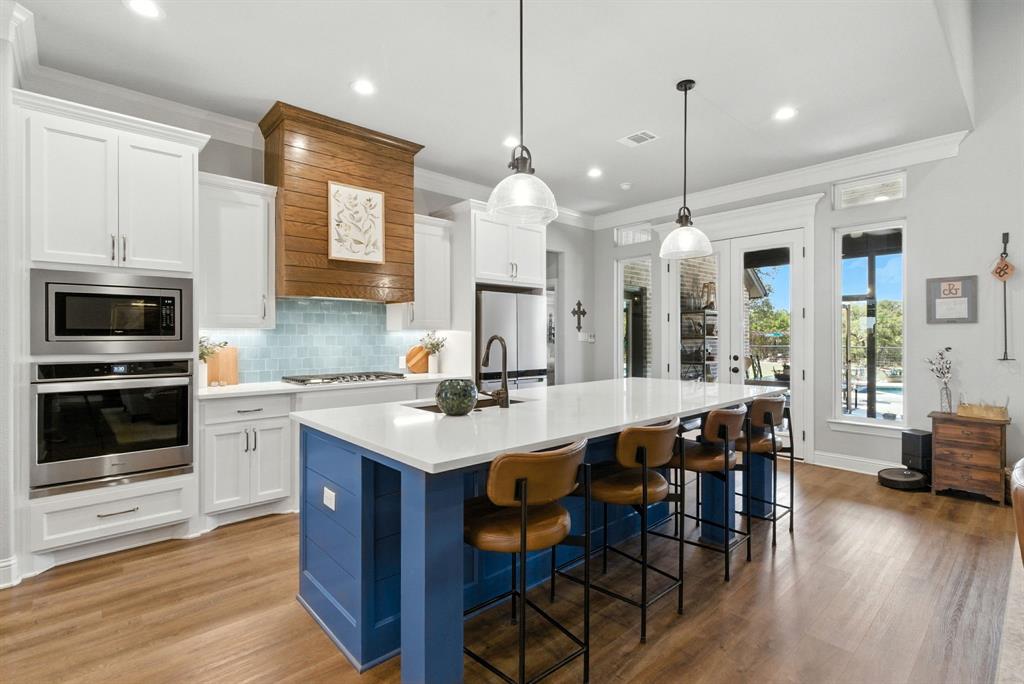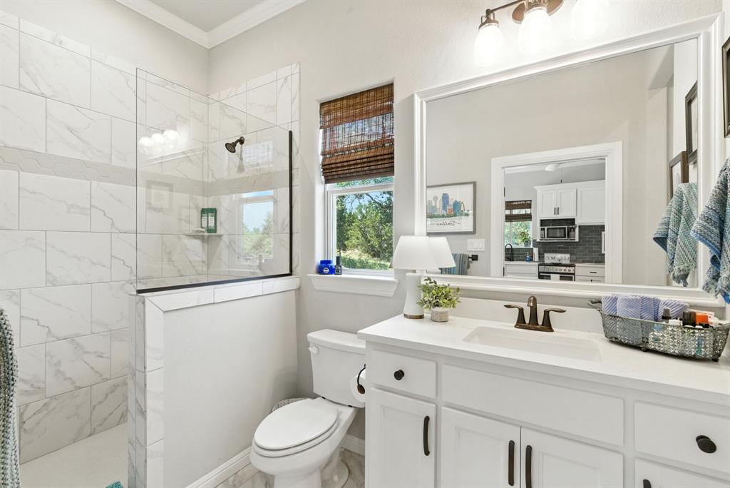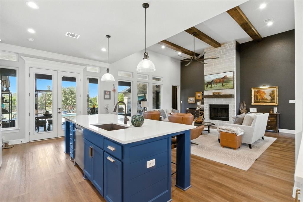 Gorgeous custom home tucked away on 2 private acres in the gated Timber View Ranch. Dramatic vaulted beamed ceilings and walls of windows set the tone for open living spaces that bring the outdoors in. The kitchen is as beautiful as it is functional, designed to inspire both everyday living and effortless entertaining. Gorgeous tile work, gas cooktop with custom wood range hood, a luxurious island and tons of cabinet space add to this wonderful kitchen. A true formal dining room to gather around the table. A striking den with a wet bar and expansive picture windows creates a perfect cozy escape. Spacious primary suite with lots of seating area and spa-like bath along with a large walk in closet and enjoy your private entry onto the back porch. Split secondary bedrooms. The beautiful screened-in porch is an inviting space for morning coffee or the perfect spot for game night. Sit out under the stars or beat the heat in the sparkling pool! Guests will love the charming 1-bedroom, 1-bath guest quarters with full kitchen, living, and laundry room with private entry. 16x20 workshop with extra storage in the loft. Hit the home gym or embrace your adventurous side with serene walking trails winding through the trees creating the the perfect place to unwind in nature. Impeccably maintained inside and out. Just minutes from both Weatherford and Granbury.