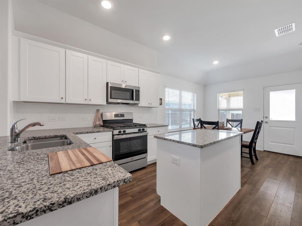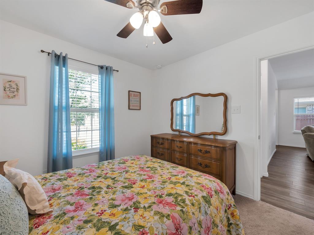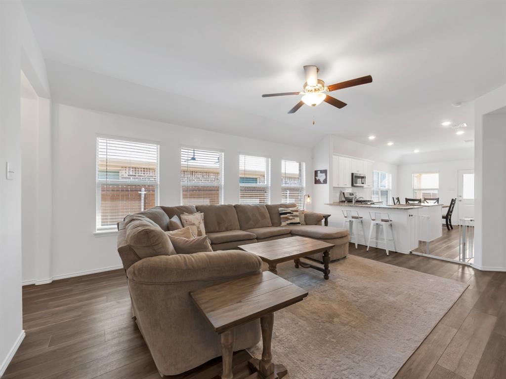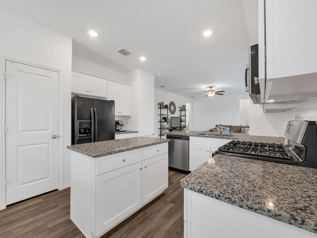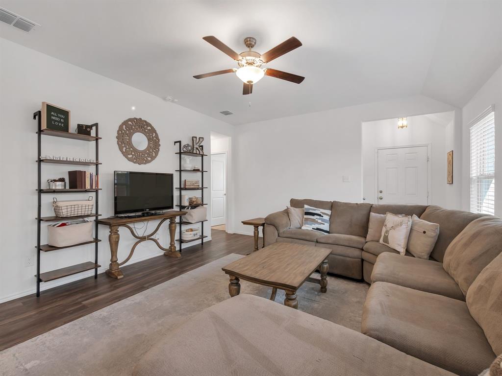 Welcome to this charming one-owner home that's ready for new memories to be made! A beautifully landscaped front yard invites you inside, where you’ll find an open, light-filled layout with a neutral color palette and durable laminate vinyl flooring throughout the main living areas. The spacious family room features a ceiling fan and an abundance of windows, creating a bright and welcoming atmosphere. The kitchen is perfect for everyday living and entertaining, with a breakfast bar, center island with storage, a place for a coffee bar, white cabinetry, black appliances, granite countertops with a built-in cutting board, and a pantry. Enjoy meals in the kitchen nook overlooking the backyard. The split-bedroom floor plan provides privacy, with the main bedroom offering an ensuite retreat that includes double sinks, a garden tub, large separate shower with ceramic tile surround, linen closet, and walk-in closet. Two generously sized guest bedrooms are located near the guest bath, perfect for family or visitors. Additional features include a separate utility room, covered patio ideal for morning coffee, fully fenced backyard, and rear-entry 2-car garage with plenty of parking. Located in a vibrant community, the HOA offers an impressive amenity center with multiple pools, a fitness facility, meeting space, walking trails, a large pond, and more. Don’t miss your chance to call this beautiful home yours—come see it today and start making new memories! You will receive 1% below the market interest rate for the first year if you use my lender.
