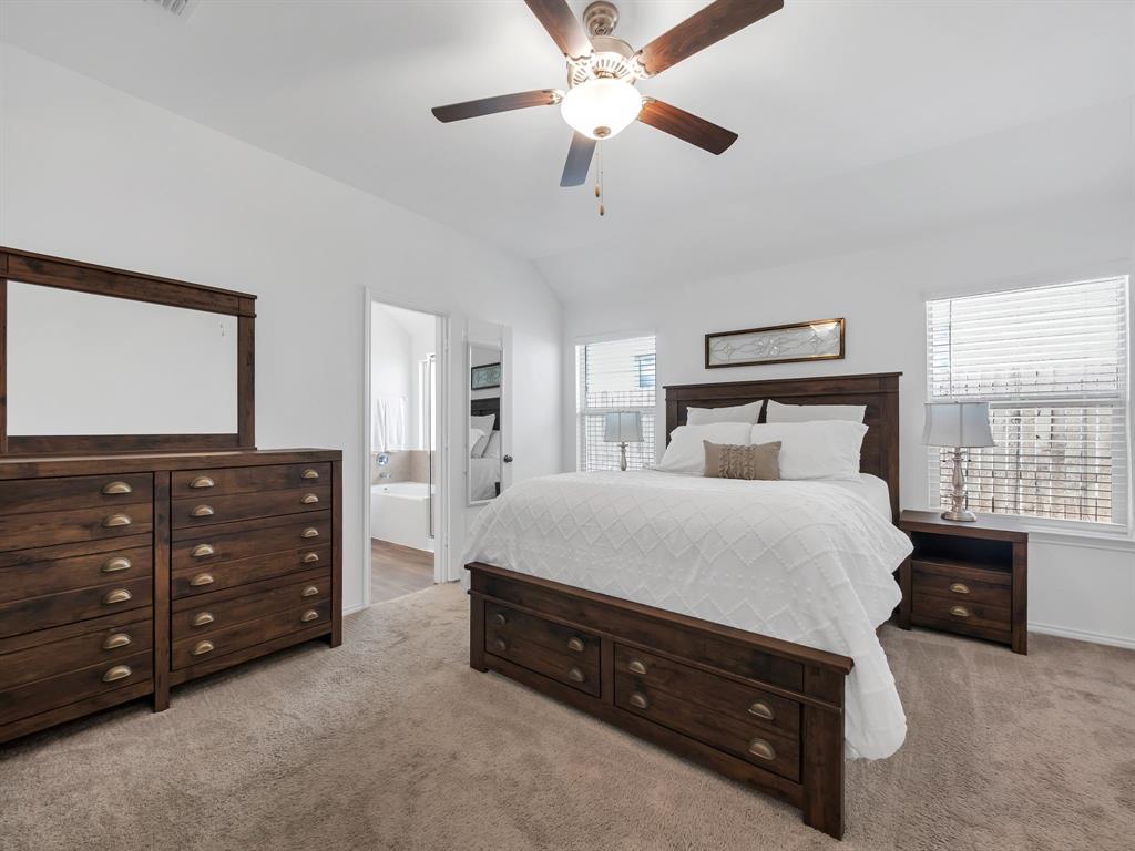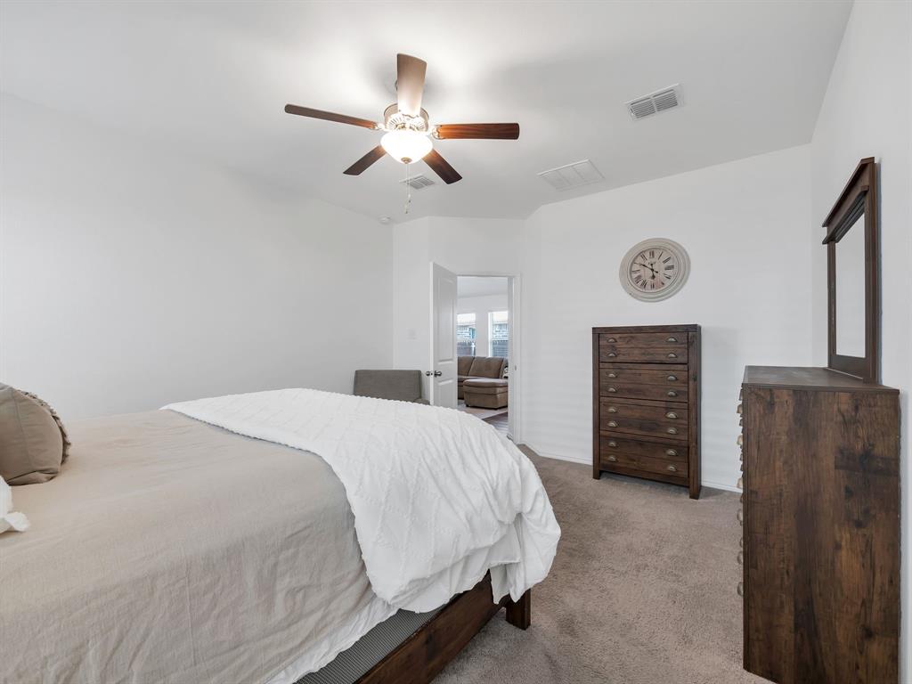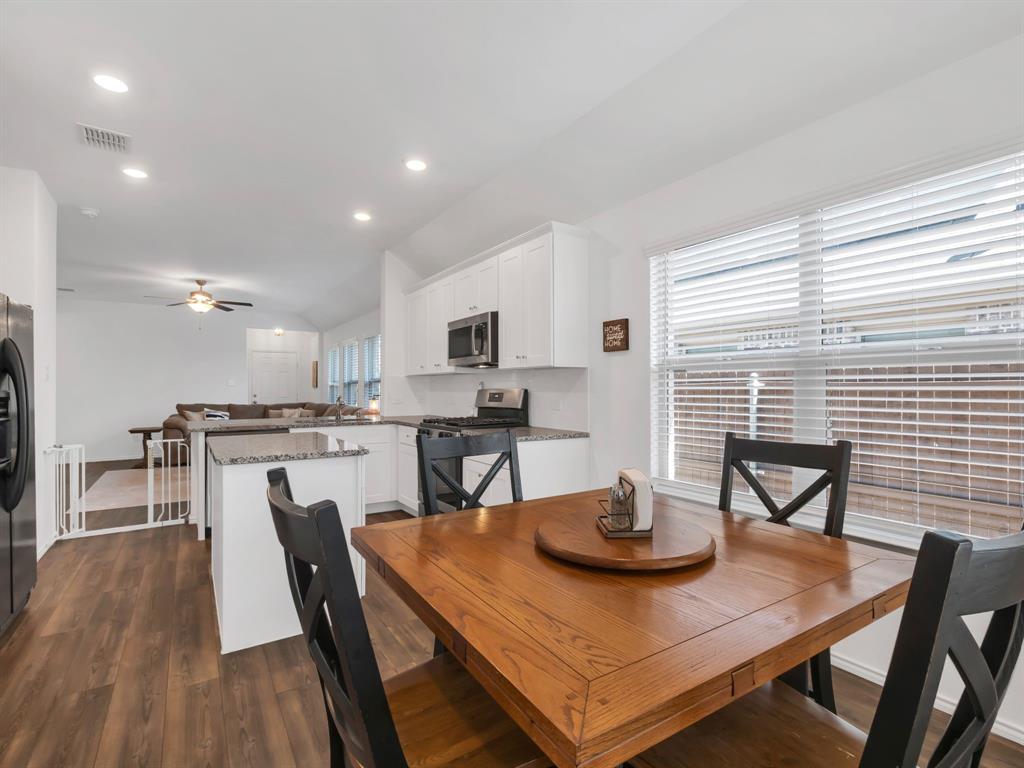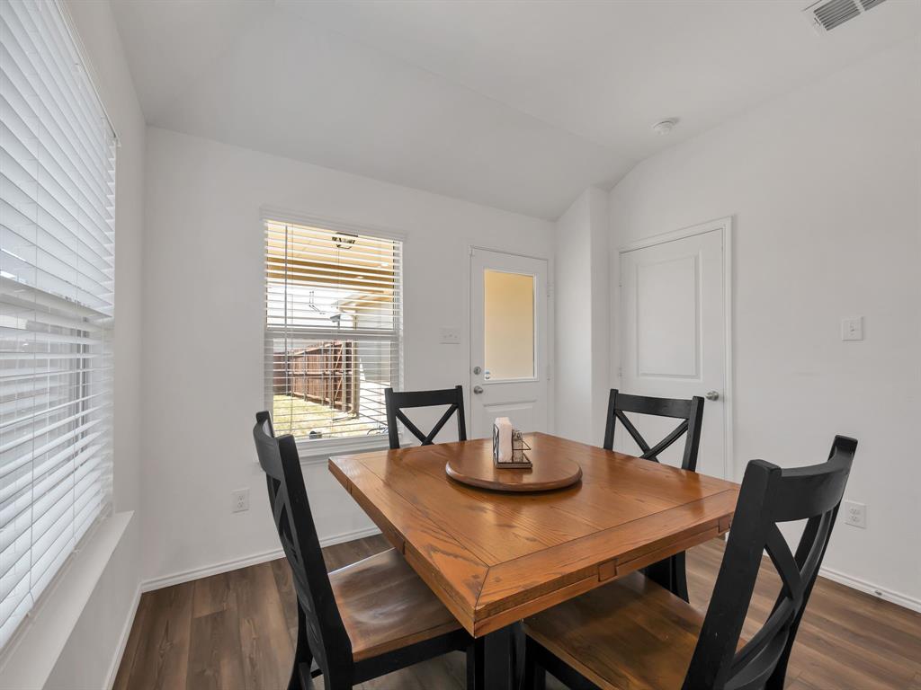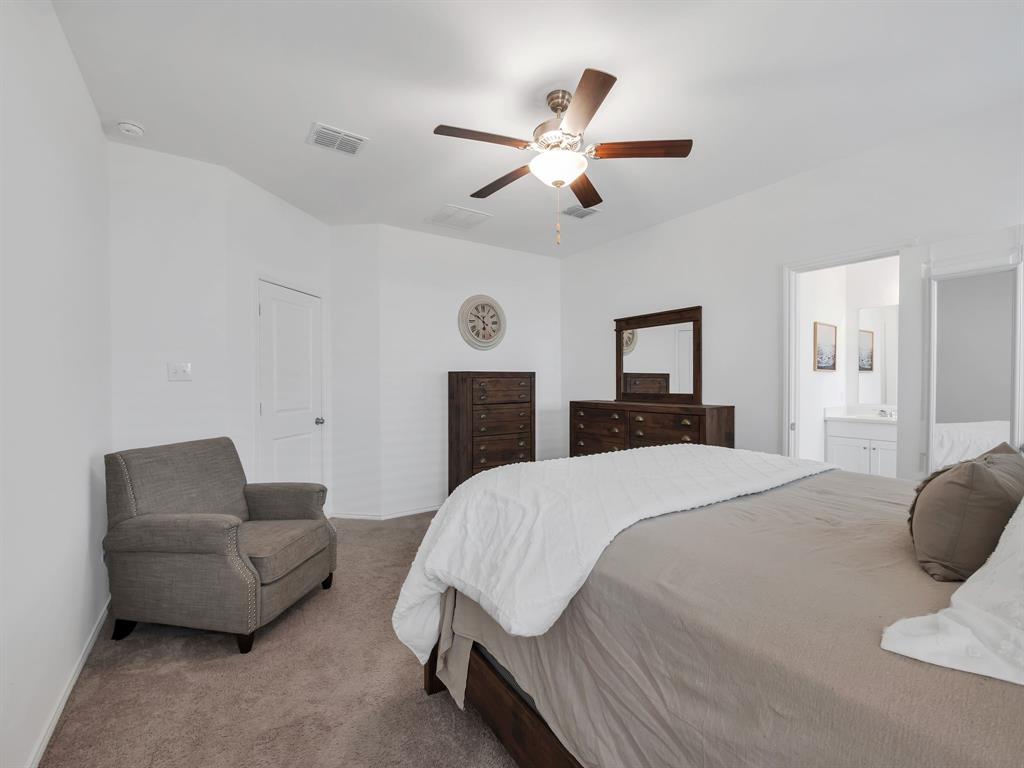 Welcome to this charming one-owner home that's ready for new memories to be made! A beautifully landscaped front yard invites you inside, where you’ll find an open, light-filled layout with a neutral color palette and durable laminate vinyl flooring throughout the main living areas. The spacious family room features a ceiling fan and an abundance of windows, creating a bright and welcoming atmosphere. The kitchen is perfect for everyday living and entertaining, with a breakfast bar, center island with storage, a place for a coffee bar, white cabinetry, black appliances, granite countertops with a built-in cutting board, and a pantry. Enjoy meals in the kitchen nook overlooking the backyard. The split-bedroom floor plan provides privacy, with the main bedroom offering an ensuite retreat that includes double sinks, a garden tub, large separate shower with ceramic tile surround, linen closet, and walk-in closet. Two generously sized guest bedrooms are located near the guest bath, perfect for family or visitors. Additional features include a separate utility room, covered patio ideal for morning coffee, fully fenced backyard, and rear-entry 2-car garage with plenty of parking. Located in a vibrant community, the HOA offers an impressive amenity center with multiple pools, a fitness facility, meeting space, walking trails, a large pond, and more. Don’t miss your chance to call this beautiful home yours—come see it today and start making new memories! You will receive 1% below the market interest rate for the first year if you use my lender.