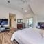 The secluded, light-filled owner's retreat, with a vaulted ceiling and room enough for an office and sitting area, overlooks the outdoor oasis and includes a large walk-in closet and stylish bath with dual vanities and an oversized shower.
