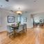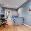 The first level has a laundry room, two additional bathrooms, a sunroom, and three more bedrooms. Notable features include designer hardware, extensive recessed and art lighting, wood and slate flooring, nine-foot ceilings, and built-in bookcases.