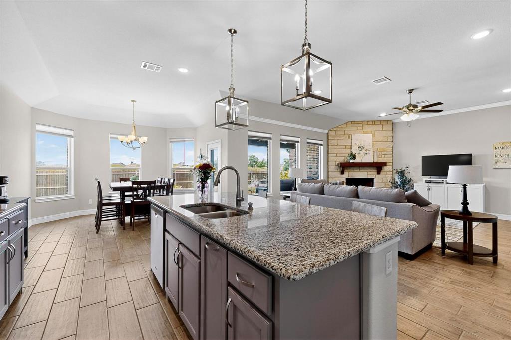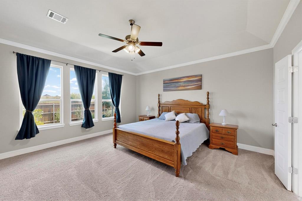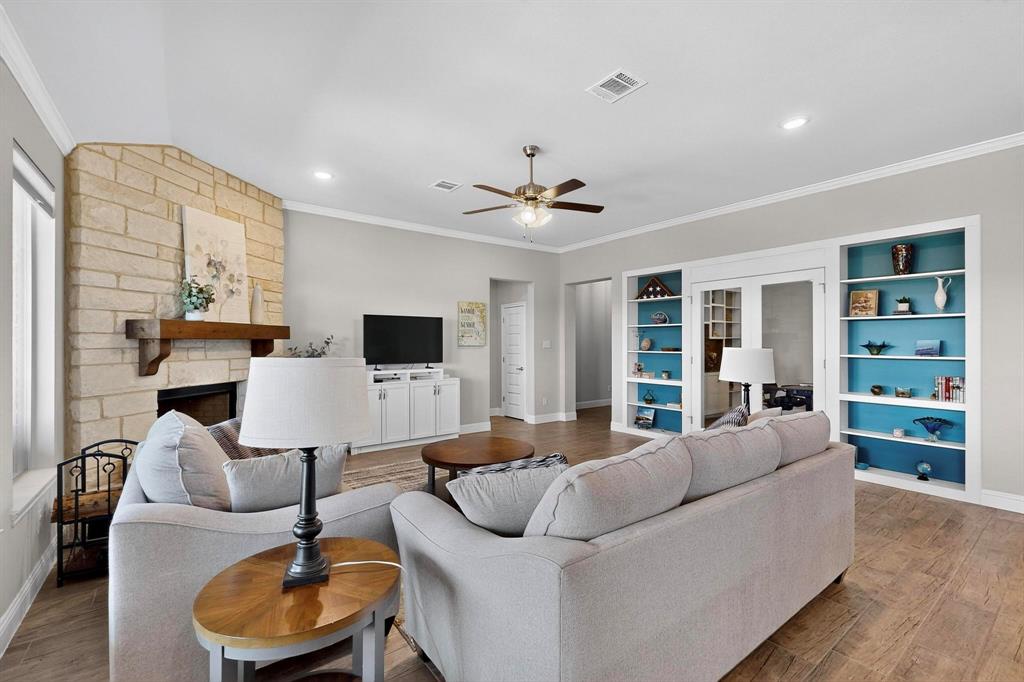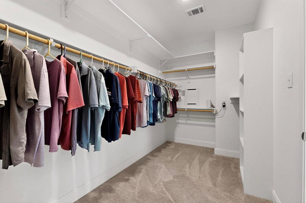 This meticulously maintained home combines several upgrades, exceptional cleanliness, and ample storage solutions for a move-in ready experience. The custom-built home office provides a perfect workspace with built-in features designed for functionality and style. The pristine landscaping surrounds the property beautifully, creating a serene outdoor environment that backs up to a private greenbelt, offering privacy and a natural backdrop.