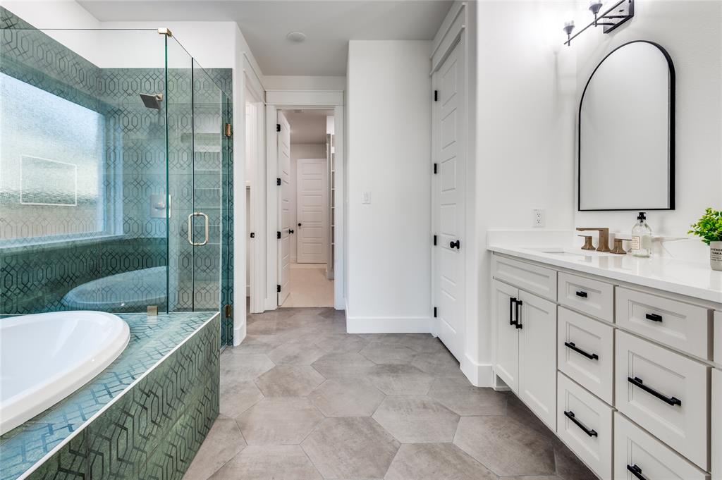 Experience luxury with this brand-new 5-bedroom, 4-bathroom residence in the highly coveted community of Westworth Falls. Thoughtfully designed and meticulously finished, this home blends upscale comfort with modern elegance across a spacious, open-concept floor plan. Beautiful hardwood floors flow throughout the main living areas, anchored by a cozy gas fireplace surrounded by marble that adds warmth and sophistication to the central living space. The showstopping kitchen features high-end quartz countertops, custom cabinetry, and premium stainless steel appliances—a perfect setting for entertaining or everyday living. The luxurious primary suite includes a spa-inspired soaking tub with dual vanities and a generous walk-in closet. A versatile flex space with built-in dry bar offers the ideal setup for a home office, media room, or lounge. Additional highlights include a oversized 2-car garage featuring 2 EV outlets, and energy-efficient systems. Outside, the private backyard offers the perfect canvas for your dream outdoor living area to create your own private oasis. This home offers private access to the Westworth Common space featuring a park, green space, The Waterfalls and Trinity Trails. Located just minutes from downtown Fort Worth, top-tier dining and shopping, this home in Westworth Falls delivers both exclusivity and convenience. Crafted for those who value quality, comfort, and design—this is where luxury lives and won't last long! Don't forget to check out the 3D Walkthrough.