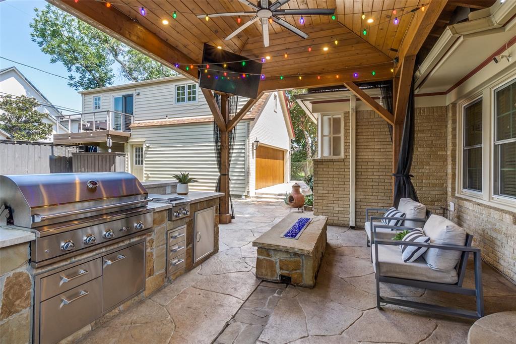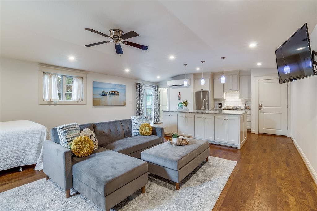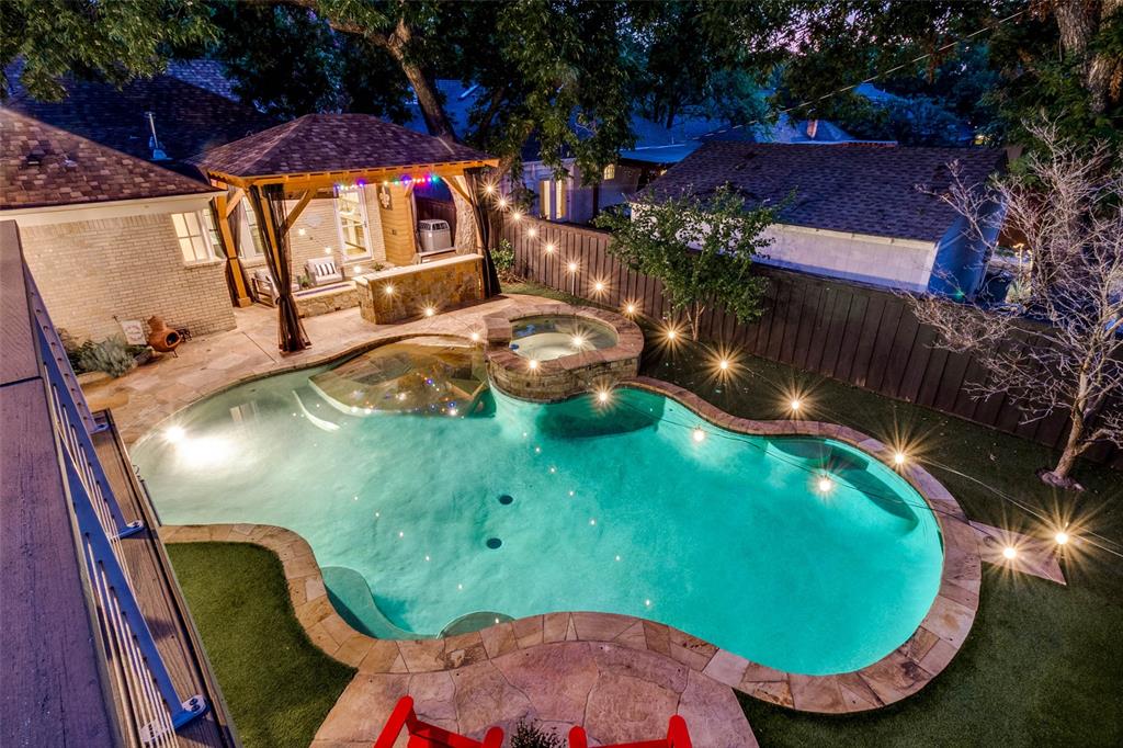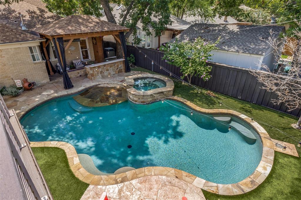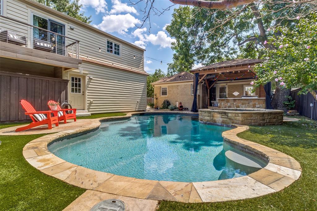 Behind its classic Tudor facade, this beautifully updated gem in desirable Greenland Heights is full of surprises, blending timeless charm with modern comforts in the coveted M-Streets. Step into the sun-filled living and dining areas, illuminated by abundant natural light through updated windows. The redesigned open-concept chef’s kitchen truly serves as the heart of the home, featuring custom cabinetry, a breakfast bar, stainless steel appliances, a gas cooktop and ample storage. The spacious laundry room includes built-in counter space-great for a coffee bar or extra prep area. Enclosed sunroom makes a great office, exercise room or nursery. The generous primary suite boasts large double closets and ensuite bathroom with dual sinks and a well-appointed shower with double showerheads. The expansive floored attic offers potential for an additional bedroom, bonus room and storage. A showstopper backyard oasis awaits outside, complete with a sparkling pool, turfed lawn, outdoor kitchen, custom firepit and mosquito misting system – ideal for entertaining or relaxing year-round. Tucked above the newer oversized two- car garage with a workshop, the 688 sq ft guest quarters offers a fully equipped kitchen and full bath, perfect for hosting visitors or creating a private retreat. A dream set up! Located in the sought-after Mockingbird Elementary zone and just minutes from Lower Greenville, Knox-Henderson and Mockingbird Station. With too many upgrades to list, ask agent for the full features sheet! More than you expect and everything you need!