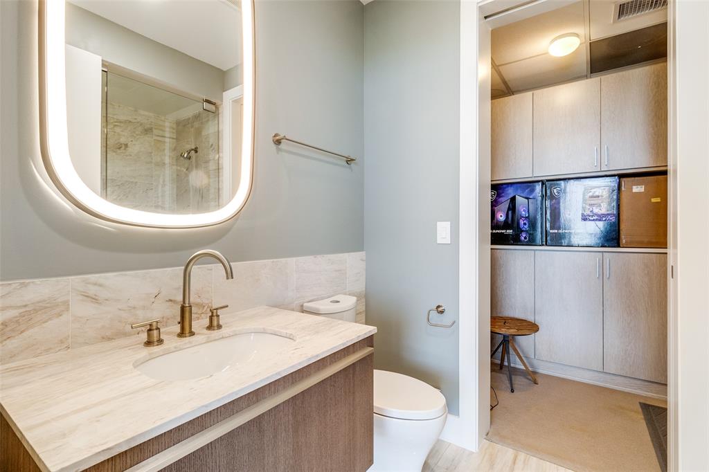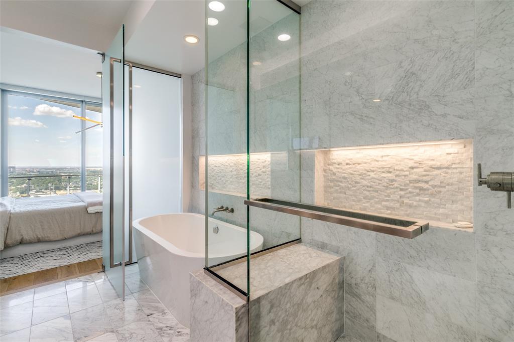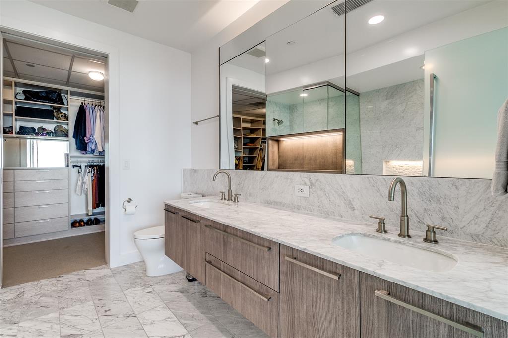 Incredible updated three bed three bath condo with unobstructed Dallas views located at the highly coveted Bleu Ciel Hi-rise. This unit features an open floor plan with floor to ceiling windows and a large wrap around balcony providing a unique condo living experience. The 825 square foot balcony, with a private fireplace, is the perfect place to relax and enjoy amazing sunsets. The kitchen features Miele appliances and Porcelanosa cabinets providing a top of the line kitchen for any level of chef. Each bedroom has a ensuite bath and walk in custom closets. The building features unparalleled amenities such as two junior olympic size pools, spa, wine room & storage, two executive board rooms, social room with library, private garages, fitness room with state of the art equipment, pet area, 24-7 concierge, valet, and direct access to the Katy Trail. The unit also comes with a private two car garage located on garage level one.