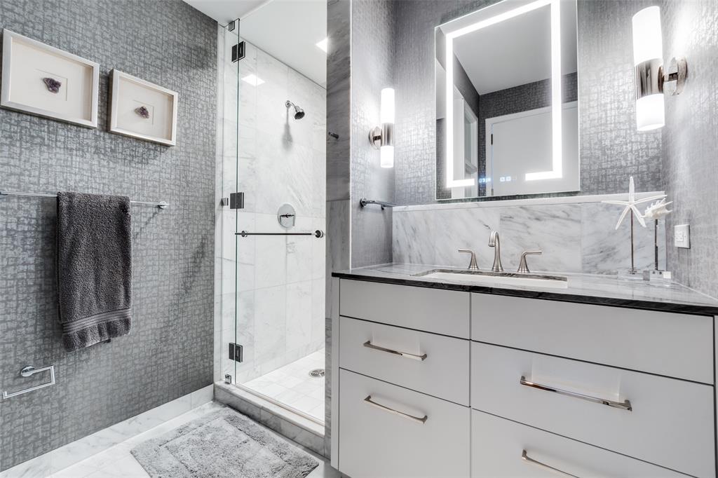 Freshly completed designer high end finishes throughout this jewel box home. A private elevator ride delivers you into a warm and inviting landing wrapped in custom wallpaper. This two bedroom home boasts upgraded lacquer cabinetry with rich basalt countertops, custom wall coverings, a fresh contemporary built in mirrored bar with floating shelves, abundant and substantial storage and closets. Gorgeous contemporary lighting. Upgraded carpets, fresh hardwoods and paint. The integrated utility room is not to be missed. Miele appliances, marble baths, private terrace, pool, spa, fitness center, guest suites and private dog park. Beautifully appointed details. Exceptional service is what our residents experience every day.