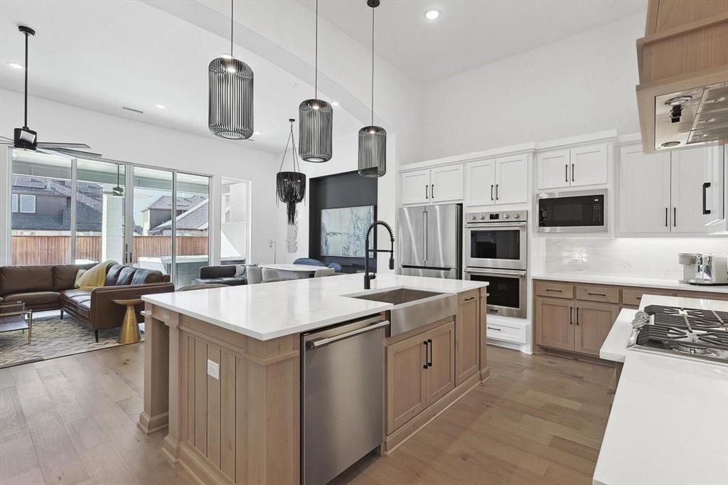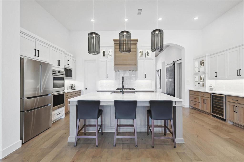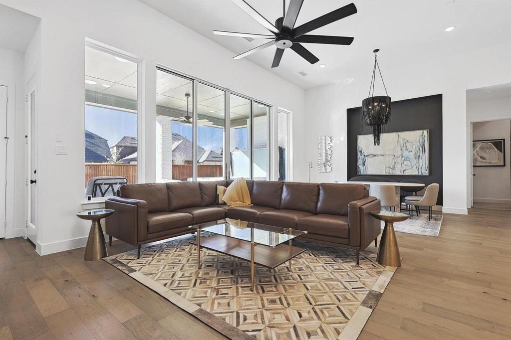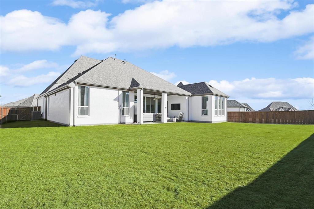 EMACULANT HIGHLAND HOME WITH UPGRADES GALORE! Beautiful single story home on a huge 74' lot located in the remarkably sought after Cambridge Crossing Subdivision. An impressive home that fits all the wants & needs anyone could ask for. The entrance boasts high ceilings and an open concept. The bright and open kitchen overlooks the family room including a large island with seating, dry bar, built-in wine fridge, custom cabinets, large walk-in pantry, & tons of storage. This first class home offers 4 bedrooms, 3.5 bathrooms, office, media room and 3 car tandem garage. Ideal floor plan with split bedrooms. Escape in the master bedroom that offers plenty of room for a seating area or reading nook, oversized walk-in closet, walk-in shower & freestanding tub. HUGE backyard with oversized covered patio perfect for family gatherings. The neighborhood amenities include a resort style pool, tennis courts, walking trails & so much more! Easy access to DNT and Preston Rd. This home is a must see!