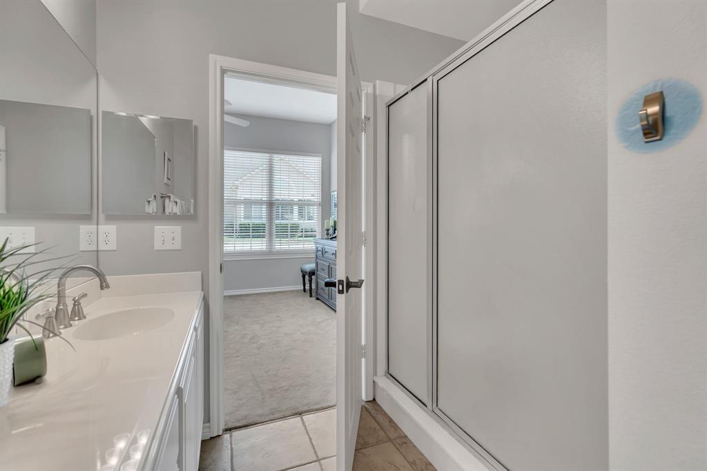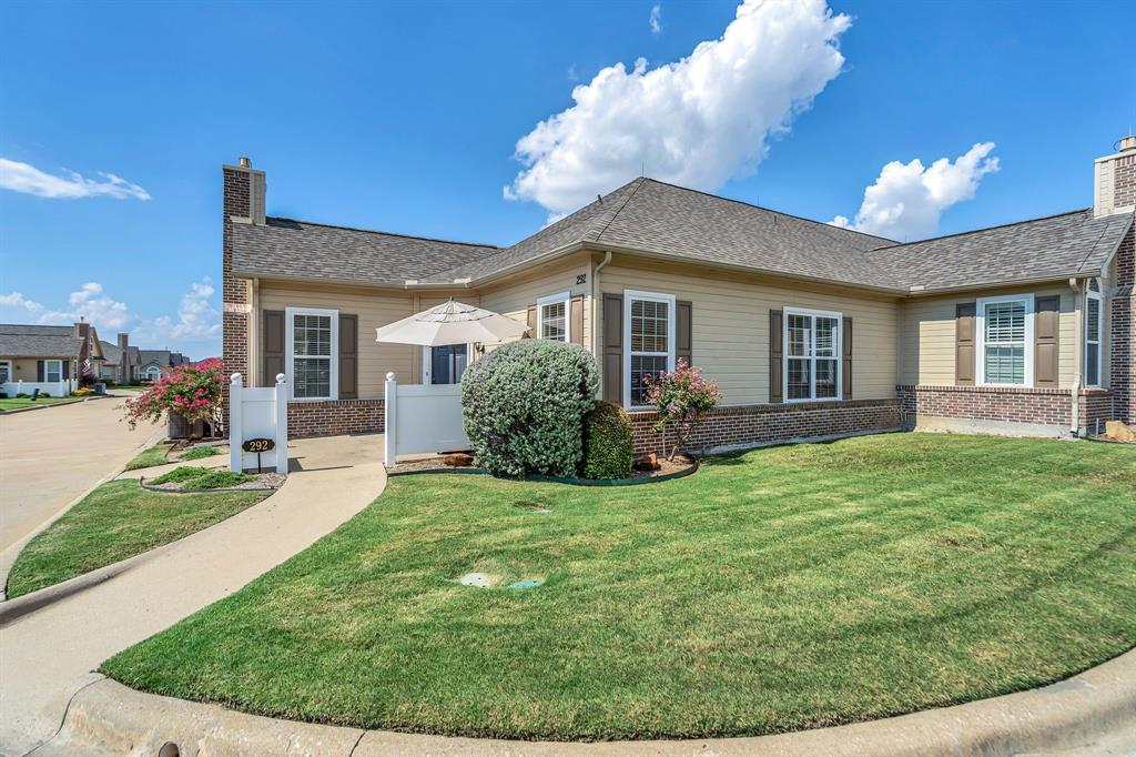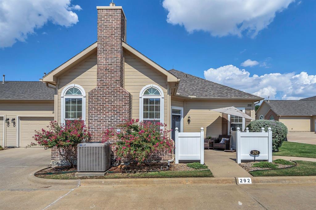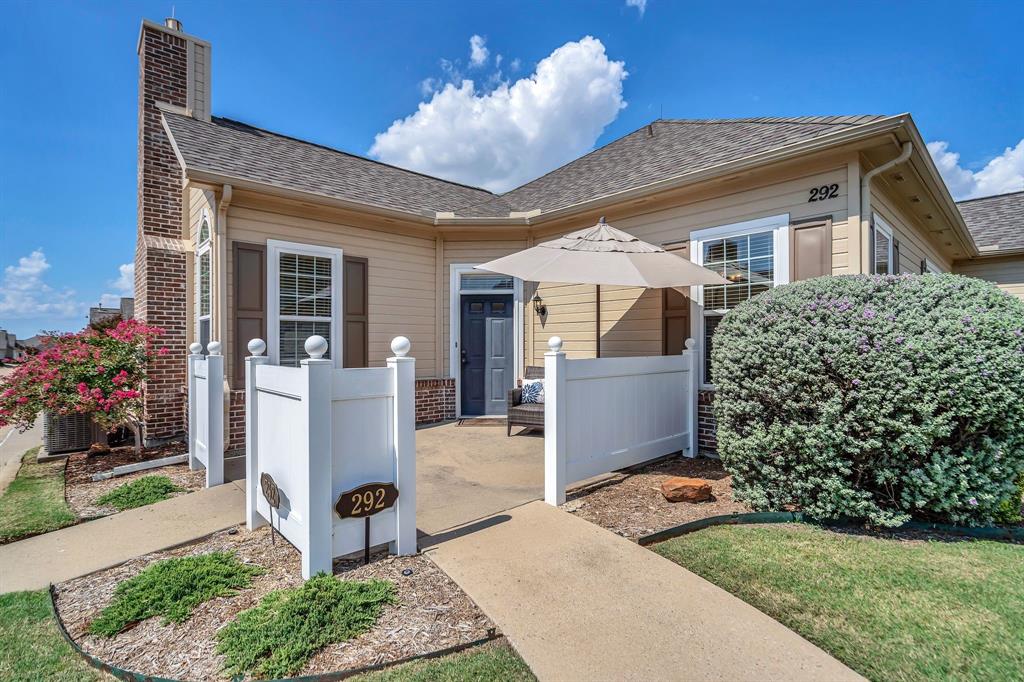 Welcome to Unit 292, an immaculate, sought-after Villa Floor Plan in the heart of Plano's Premier 55+ Community, The Village at Prestonwood with common amenities including swimming pool and clubhouse with fitness center, library, conference room, full kitchen, gaming, and sitting areas. This light-filled corner unit features 2 bedrooms, 2 full baths, Open Concept living and dining thoughtfully designed for comfort, convenience, and style. The home boasts soaring cathedral ceilings and a kitchen with a plethora of cabinet space, preparation and serving counters plus a breakfast bar. Primary En Suite has large walk-in closet. Guest Bedroom has convenient adjacent Hall bath. Unique in this plan is a separate large laundry utility area plus storage closets in addition to the kitchen pantry AND HVAC in the garage too! This home feels larger than reported square feet with not an inch of wasted space. Exterior Maintenance covered by Condo Association. Plan to enjoy the private courtyard and the well-maintained grounds and easy walking distance to the Club House. Conveniently located for shopping in Willow Bend Mall, restaurants, grocery stores, parks, golf clubs, hospitals, doctors, and emergency services. The Village has monthly Coffee and Chat gatherings, exercise sessions, brunches and lunches, and quarterly dinners and events. Active Adult Community with Low-Maintenance, Ease in Living. Owner Must Occupy.