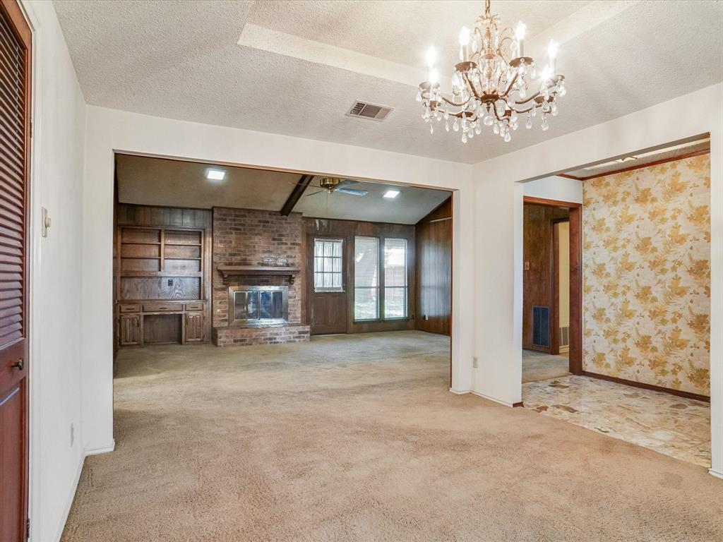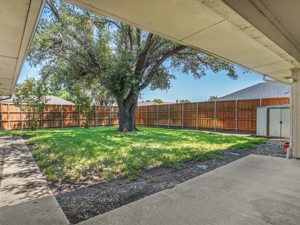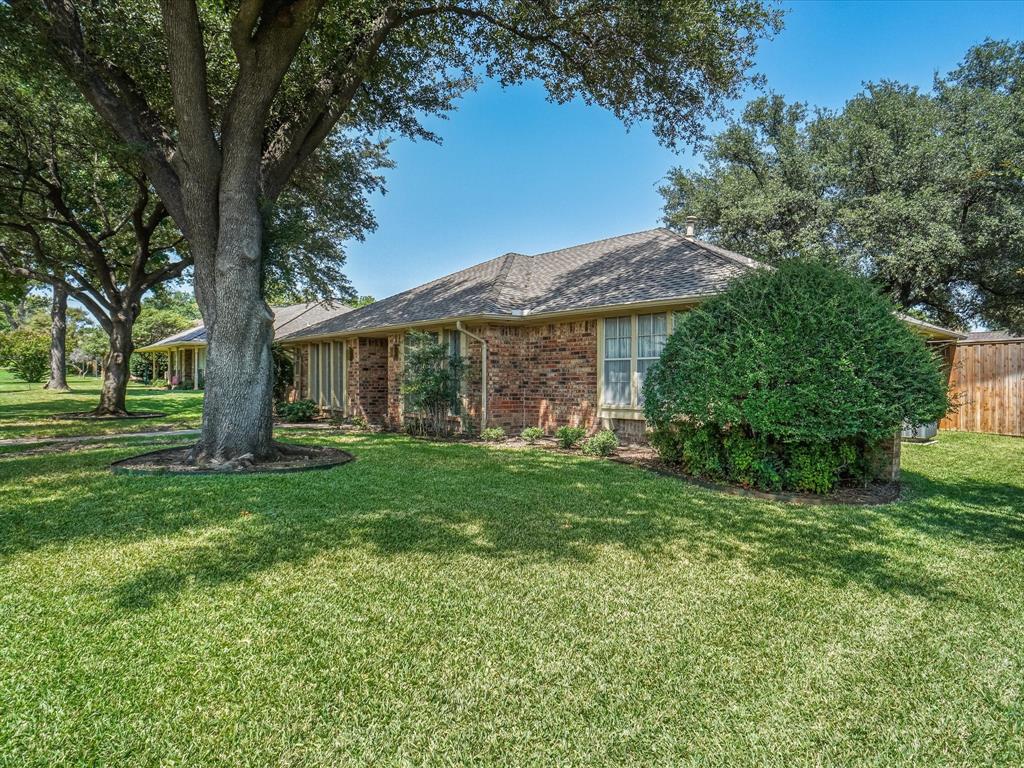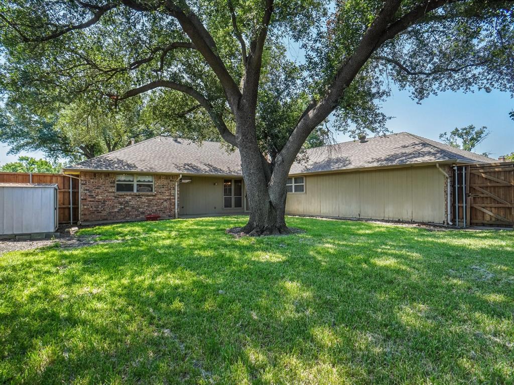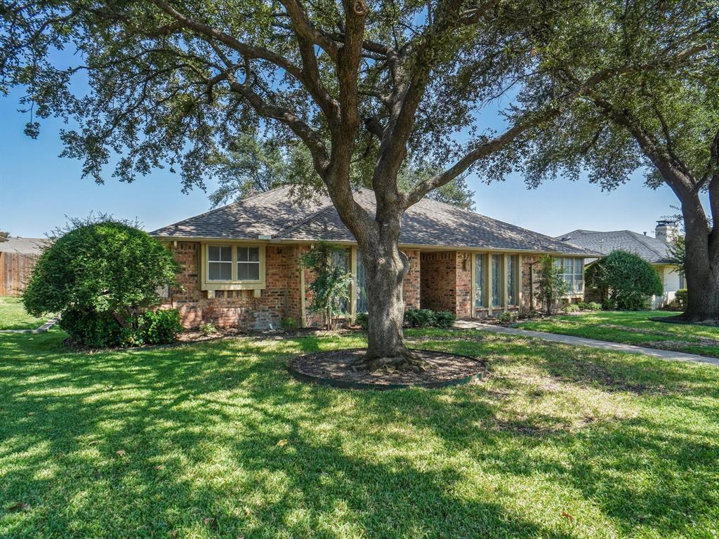 Welcome to this single story home located in the sought after High Country subdivision in NW Carrollton. For those seeking the highly rated Lewisville ISD this property has great potential. Beautiful marble flooring upon entry greets you with a generous sized formal dining room with a lovely large picture window. The home features a 20 x 15 main living area with a cathedral ceiling, built ins, and a gas log fireplace. There is a wonderful 16 x 15 second living that can easily transition from a den to a game room with built ins, or a 4th bedroom (with closet), great bonus room with tons of flexibility! The Primary suite has dual sinks, dual closets, with one walk in located in the bathroom and a very unique dressing area with an additional lighted vanity. Two secondary bedrooms one with a bay window, and a Jack n Jill bath. The front and back yard have beautiful towering trees with a covered porch and a large covered patio, with a shed. All rooms are generous in size! Awesome location near shopping, dining, and entertainment. Easy Hwy access to 121, Dallas North Tollway and the George Bush Turnpike.