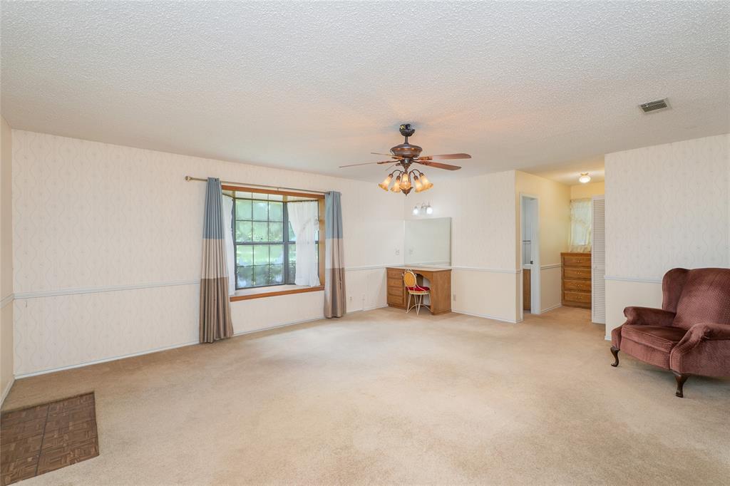 This spacious two-story vacant home offers 5 bedrooms, 3 baths, and 2,716 sq. ft. of living space, all set on a 1.84-acre lot with mature trees and open space. The main level welcomes you with a large living room featuring a cozy fireplace, seamlessly connected to the dining area with a breakfast bar, and a kitchen with ample cabinetry. A private primary suite with an ensuite bath featuring a shower and tub combo and a walk-in closet is thoughtfully separated from the additional bedrooms. The second bedroom also includes an ensuite bath with a single vanity and shower, providing added privacy and convenience. A dedicated study and a generously sized utility room complete the main level, adding both convenience and flexibility.