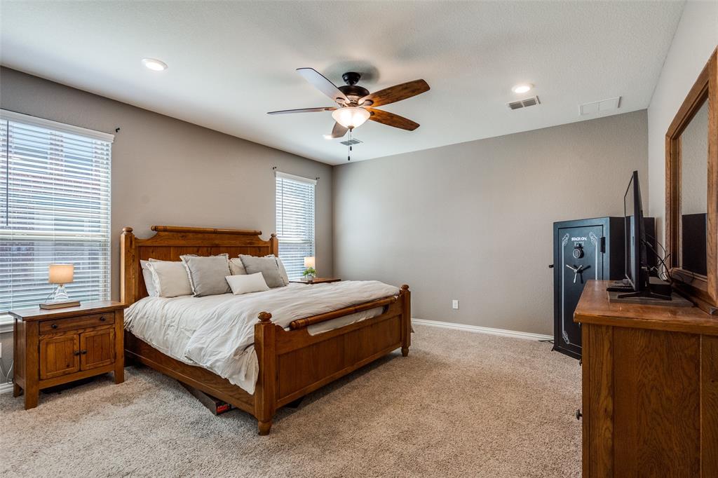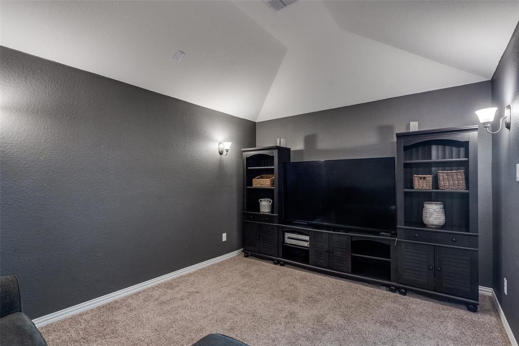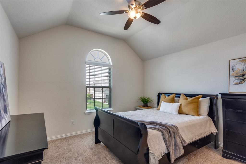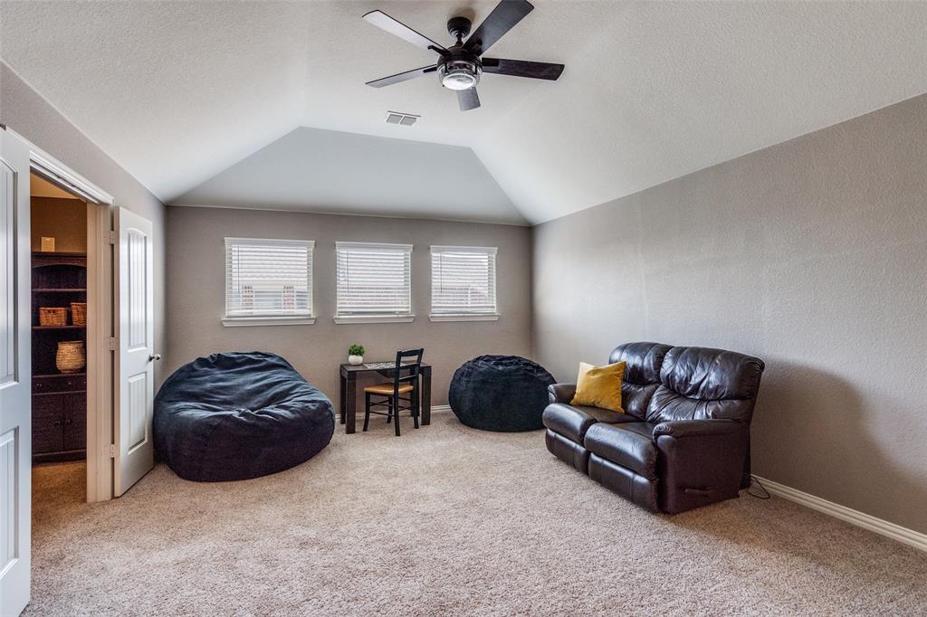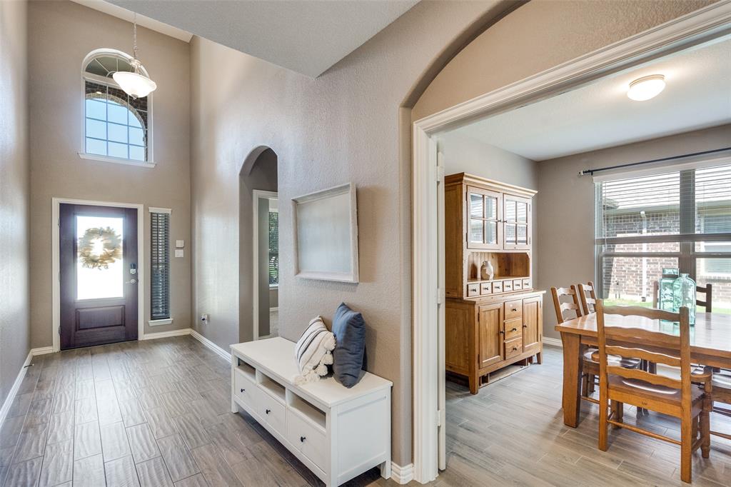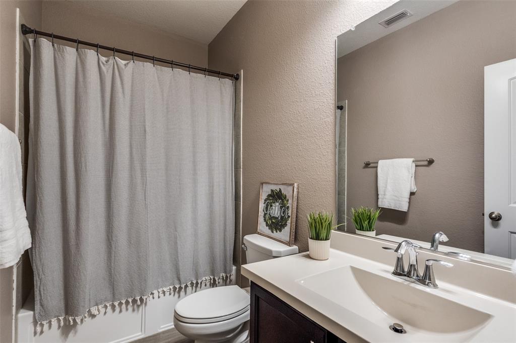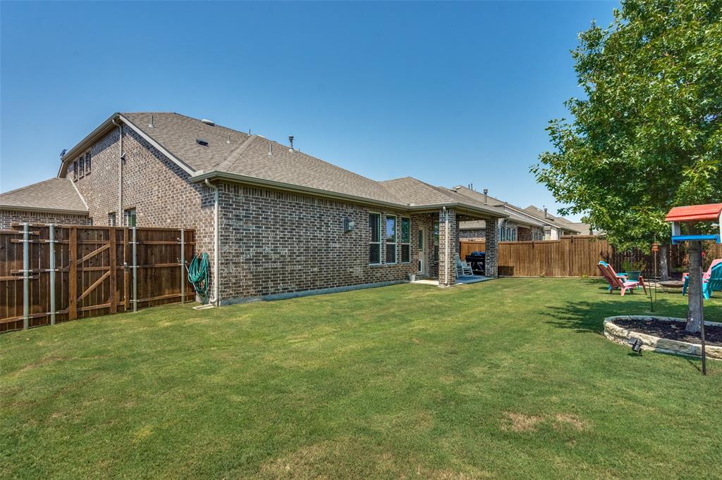 Welcome to this stunning two-story home that blends comfort, functionality, and style in this vibrant and growing community. From the moment you step inside, you are greeted by an impressive two-story foyer that creates a sense of openness and warmth. The thoughtful floor plan offers four bedrooms and three and a half bathrooms, with two bedrooms conveniently located on the first level and two additional bedrooms upstairs connected by a Jack-and-Jill bath. The heart of the home is the open concept living, kitchen, and dining area. The kitchen is designed for both everyday living and entertaining, featuring a large island with breakfast bar seating, stainless steel appliances, ample cabinet space, and a dining area that overlooks the backyard. The living room is anchored by a cozy fireplace and filled with natural light, creating a welcoming space to gather with family and friends. Just off the foyer, a flex room with French doors is currently used as a formal dining room, though it could easily serve as a private office, or playroom depending on your needs. The spacious primary suite is located on the first floor for privacy and convenience. It includes a beautifully designed ensuite bath with dual sinks, a relaxing soaking tub, separate walk-in shower, and a generous walk-in closet. Upstairs, a game room and media room offer additional spaces for entertainment and relaxation. Step outside to the pool-size backyard and enjoy a covered patio that provides the perfect setting for outdoor dining, weekend barbecues, or simply unwinding while overlooking the spacious yard. A three-car garage completes this home, offering ample parking and storage. The community offers resort-style amenities, including a sparkling pool, a separate lap pool, tennis courts, a basketball court, and a playground. Plus highly rated Prosper ISD schools! Adding to the convenience, the brand-new H-E-B is just minutes away, making shopping and dining a breeze.