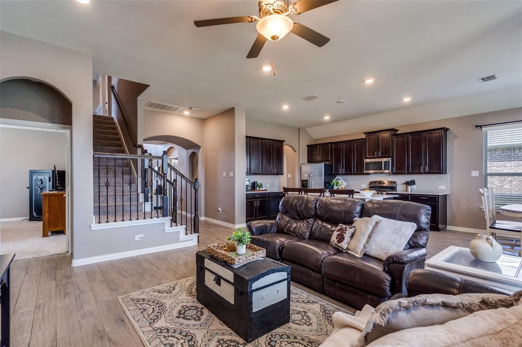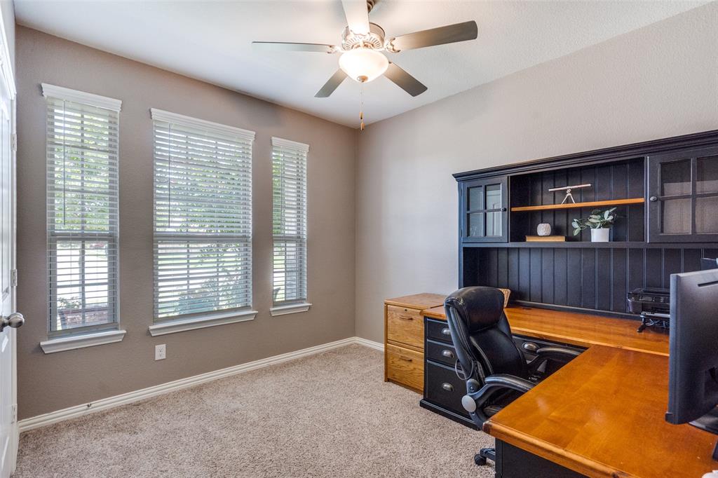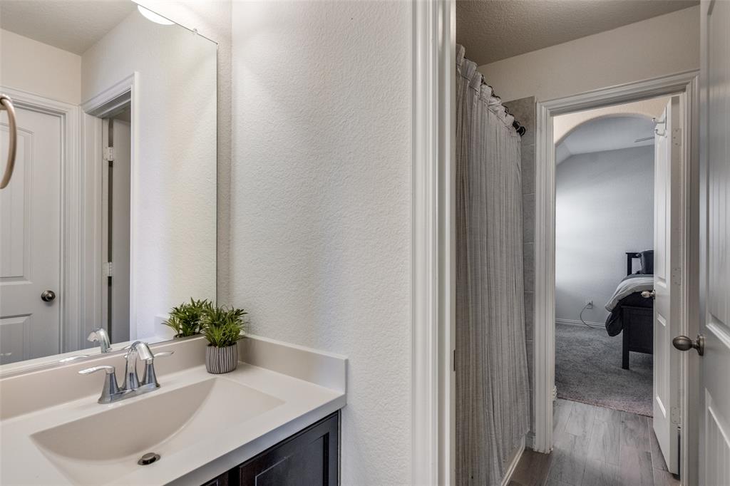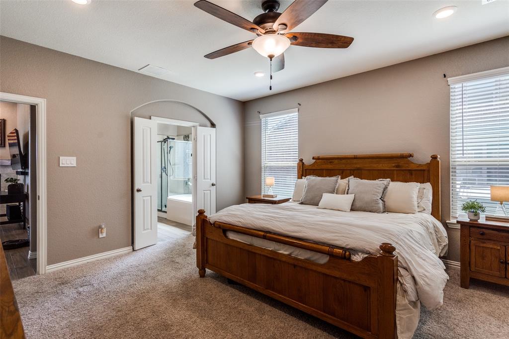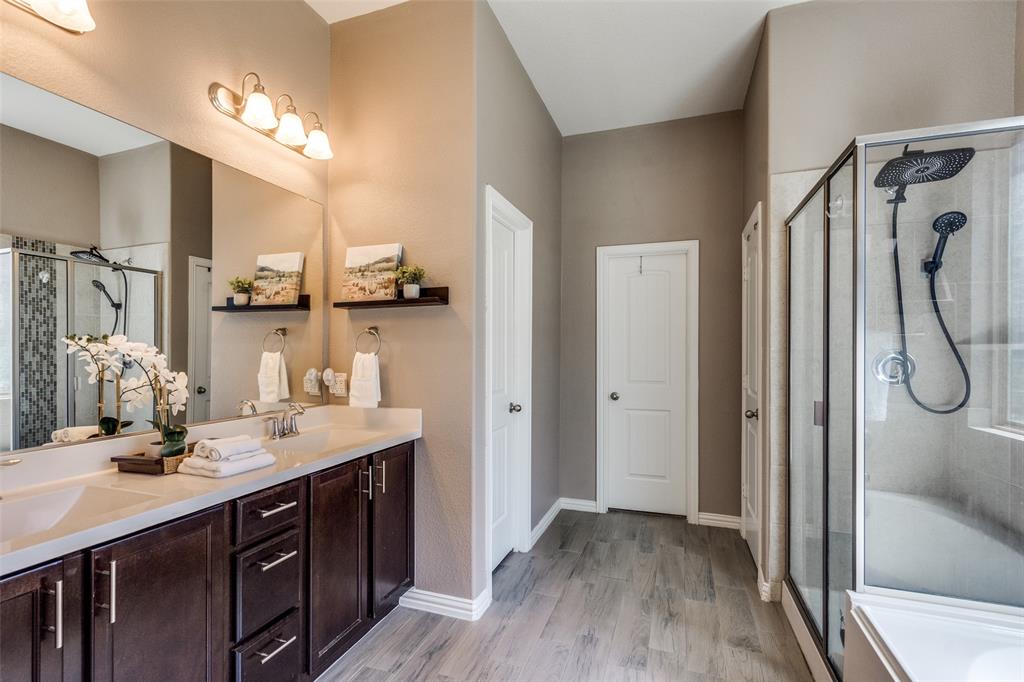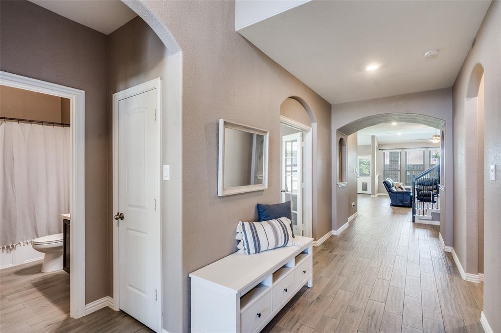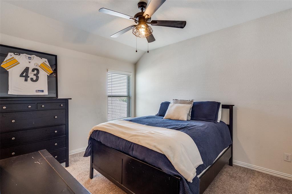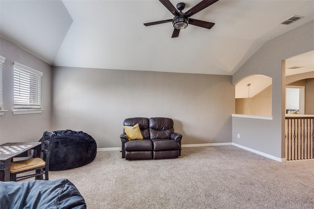 Welcome to this stunning two-story home that blends comfort, functionality, and style in this vibrant and growing community. From the moment you step inside, you are greeted by an impressive two-story foyer that creates a sense of openness and warmth. The thoughtful floor plan offers four bedrooms and three and a half bathrooms, with two bedrooms conveniently located on the first level and two additional bedrooms upstairs connected by a Jack-and-Jill bath. The heart of the home is the open concept living, kitchen, and dining area. The kitchen is designed for both everyday living and entertaining, featuring a large island with breakfast bar seating, stainless steel appliances, ample cabinet space, and a dining area that overlooks the backyard. The living room is anchored by a cozy fireplace and filled with natural light, creating a welcoming space to gather with family and friends. Just off the foyer, a flex room with French doors is currently used as a formal dining room, though it could easily serve as a private office, or playroom depending on your needs. The spacious primary suite is located on the first floor for privacy and convenience. It includes a beautifully designed ensuite bath with dual sinks, a relaxing soaking tub, separate walk-in shower, and a generous walk-in closet. Upstairs, a game room and media room offer additional spaces for entertainment and relaxation. Step outside to the pool-size backyard and enjoy a covered patio that provides the perfect setting for outdoor dining, weekend barbecues, or simply unwinding while overlooking the spacious yard. A three-car garage completes this home, offering ample parking and storage. The community offers resort-style amenities, including a sparkling pool, a separate lap pool, tennis courts, a basketball court, and a playground. Plus highly rated Prosper ISD schools! Adding to the convenience, the brand-new H-E-B is just minutes away, making shopping and dining a breeze.