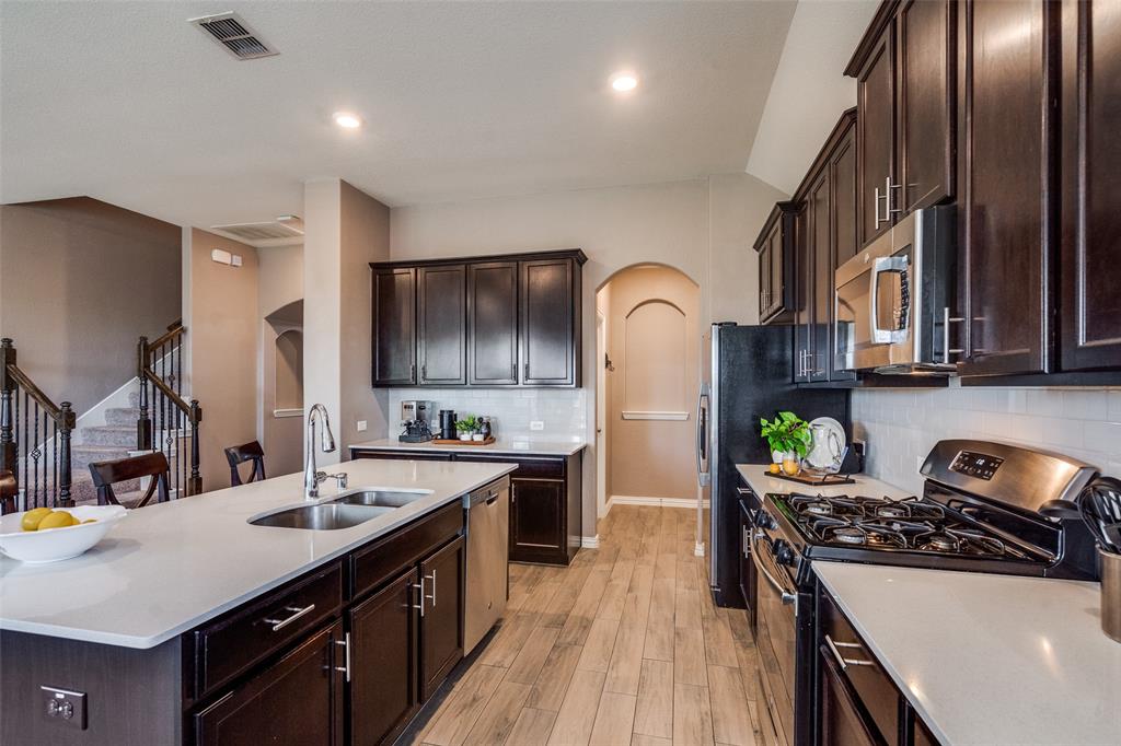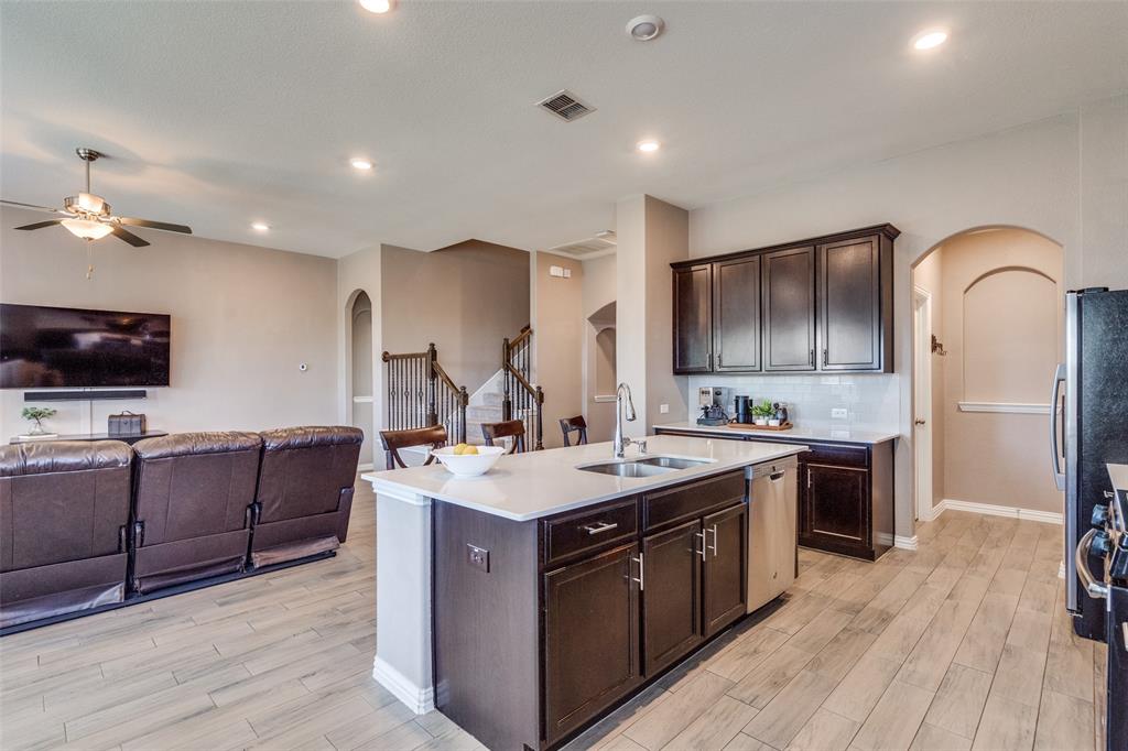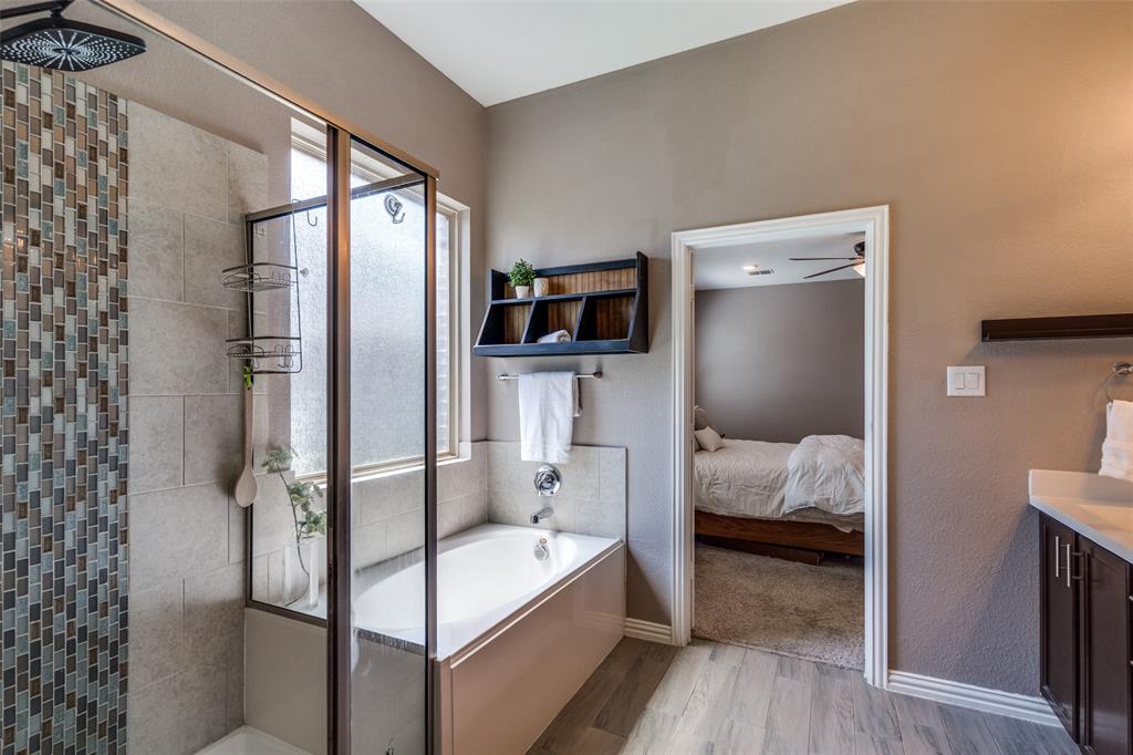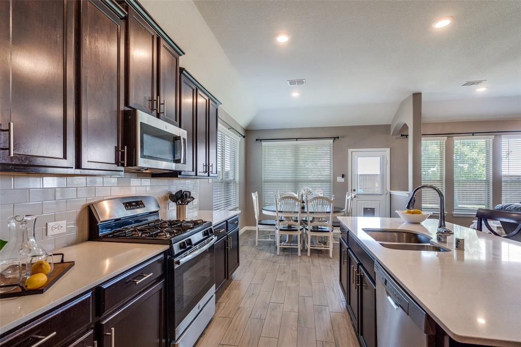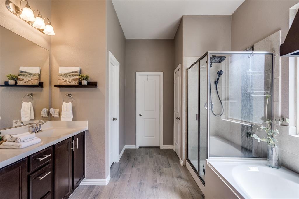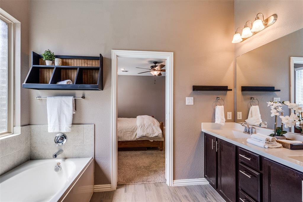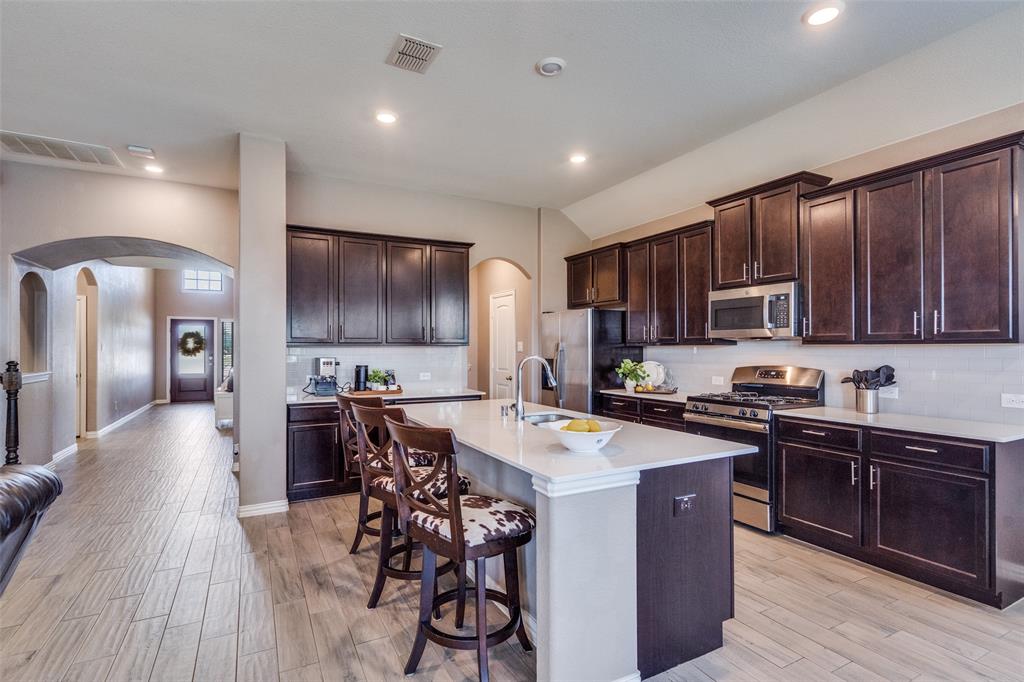 Welcome to this stunning two-story home that blends comfort, functionality, and style in this vibrant and growing community. From the moment you step inside, you are greeted by an impressive two-story foyer that creates a sense of openness and warmth. The thoughtful floor plan offers four bedrooms and three and a half bathrooms, with two bedrooms conveniently located on the first level and two additional bedrooms upstairs connected by a Jack-and-Jill bath. The heart of the home is the open concept living, kitchen, and dining area. The kitchen is designed for both everyday living and entertaining, featuring a large island with breakfast bar seating, stainless steel appliances, ample cabinet space, and a dining area that overlooks the backyard. The living room is anchored by a cozy fireplace and filled with natural light, creating a welcoming space to gather with family and friends. Just off the foyer, a flex room with French doors is currently used as a formal dining room, though it could easily serve as a private office, or playroom depending on your needs. The spacious primary suite is located on the first floor for privacy and convenience. It includes a beautifully designed ensuite bath with dual sinks, a relaxing soaking tub, separate walk-in shower, and a generous walk-in closet. Upstairs, a game room and media room offer additional spaces for entertainment and relaxation. Step outside to the pool-size backyard and enjoy a covered patio that provides the perfect setting for outdoor dining, weekend barbecues, or simply unwinding while overlooking the spacious yard. A three-car garage completes this home, offering ample parking and storage. The community offers resort-style amenities, including a sparkling pool, a separate lap pool, tennis courts, a basketball court, and a playground. Plus highly rated Prosper ISD schools! Adding to the convenience, the brand-new H-E-B is just minutes away, making shopping and dining a breeze.