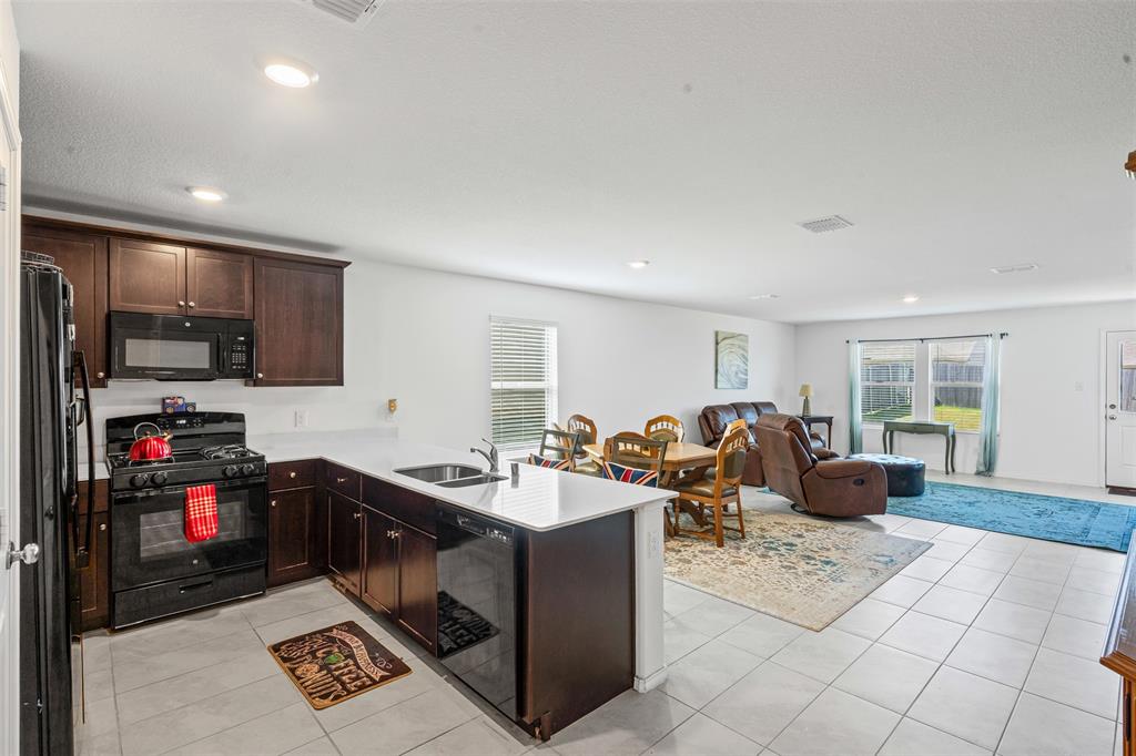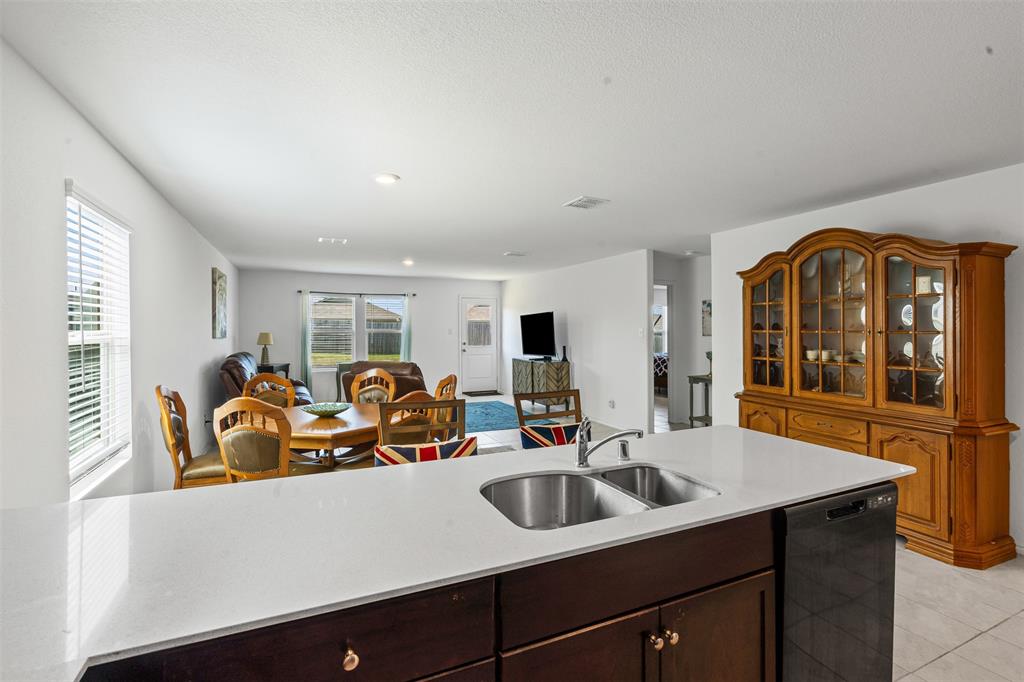The spacious living area flows seamlessly into the kitchen and dining spaces, perfect for hosting family gatherings or casual weeknight dinners. The kitchen is a true centerpiece, boasting sleek countertops, contemporary cabinetry, and plenty of room to whip up everything from Texas-style BBQ sides to Sunday morning pancakes.