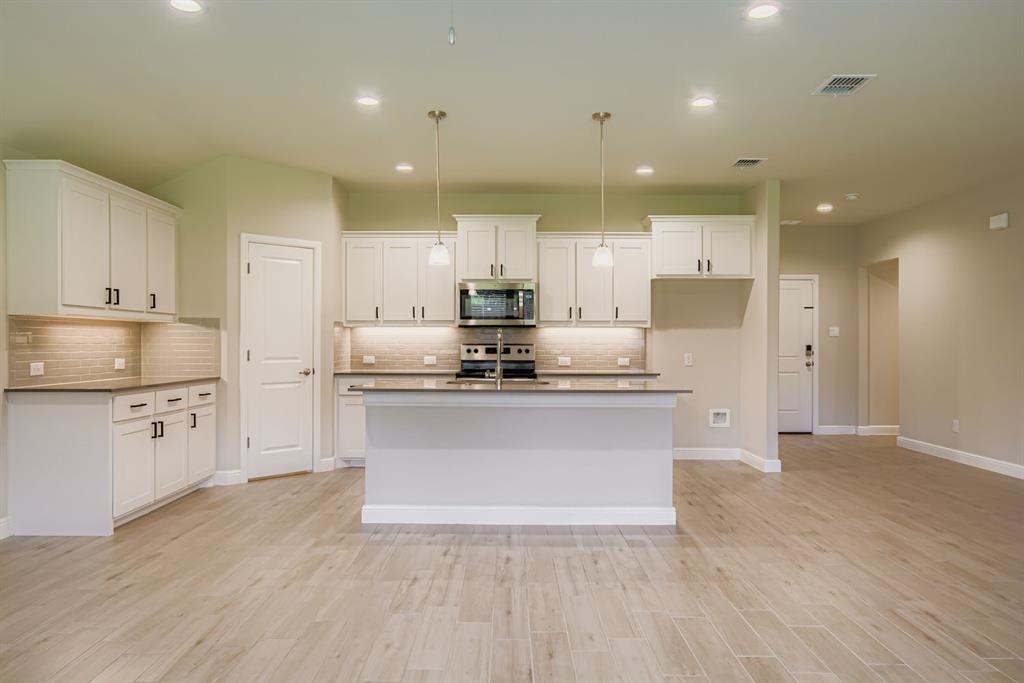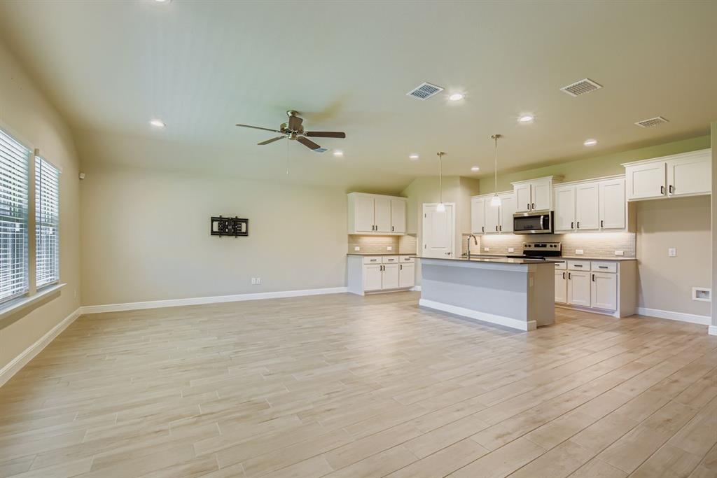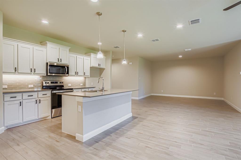 This single-story home features an open-concept layout, with a foyer that leads into the spacious living room, dining area, and kitchen—all seamlessly connected for effortless entertaining. The kitchen includes a center island, pantry, and breakfast bar, offering both functionality and style.
