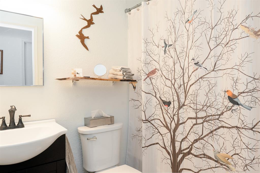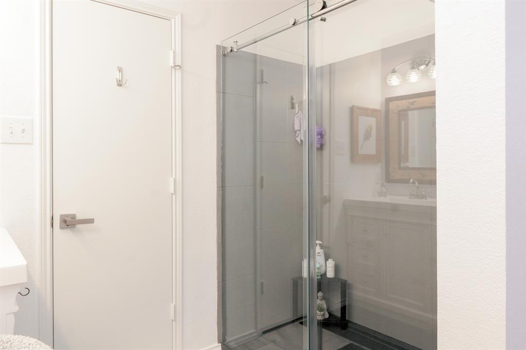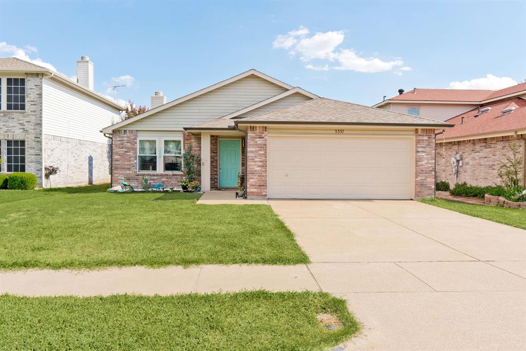 PAID OFF SOLAR PANELS - Keep your house cool all summer with minimal utility bills! This beautifully remodeled home is move-in ready and nestled within walking distance to Marine Creek Lake! Backs up to greenbelt with walking path that leads to the lake. Perfect for walking, running, and enjoying nature! Open floor plan with lots of natural light, bamboo wood flooring, and wood burning brick fireplace with electrical fireplace. Oversized kitchen with ample cabinet space, SS appliances, dishwasher (2023), fridge to stay, eat in space with designer light fixtures, and LARGE walk in pantry! All bedrooms with new carpet (2024). Secondary bathroom with new vanity (2024), tiled shower & tub. Primary bedroom oversized with wrap around walk in closet. Primary bathroom remodeled in Dec. 2024. Updates as of the end of 2024 include: Freshly painted exterior, new Anderson windows, landscaping, light fixtures, primary bathroom, duct cleaning throughout entire home, and shade sail connected to back patio. Refrigerator, electric fireplace, and overhead storage in garage all convey! Don't miss this gem!