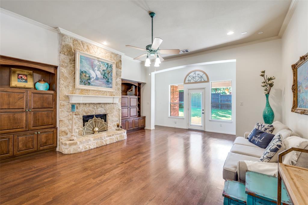 Welcome to this beautifully upgraded 1-story home tucked away on a quiet cul-de-sac in the sought-after Lakeview At Point Vista neighborhood. With fresh paint, brand new carpet, and timeless details throughout, this home blends comfort and style. Step inside to find rich wood floors, granite countertops, and a stunning stone fireplace as the centerpiece to the living room. The open-concept four bedroom three and a half bath layout creates a seamless flow between the large kitchen and living area. This home is truly perfect for entertaining. The kitchen is equipped with stainless steel appliances, an island, a large pantry and a bright breakfast nook with views into the family room.