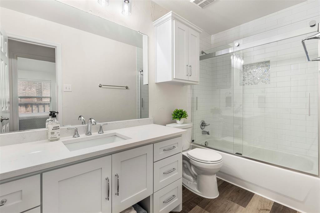 Light, Bright & Open beautifully maintained 4-bedroom, 2-bath home located in the highly sought after Castlewood neighborhood of Highland Village. Featuring a light-filled, open floor plan, offering a perfect blend of comfort, style, and functionality. The spacious living area centers around a decorative stone fireplace with gas logs, creating a warm and inviting focal point. The eat-in kitchen is a chef’s dream with a gas stove and vent a hood venting to the exterior, built in microwave and spacious breakfast bar. The oversized master suite offers a tranquil retreat, complete with a sitting area and a master bath featuring dual sinks, separate vanities, garden tub, a separate shower plus a large walk in closet.
