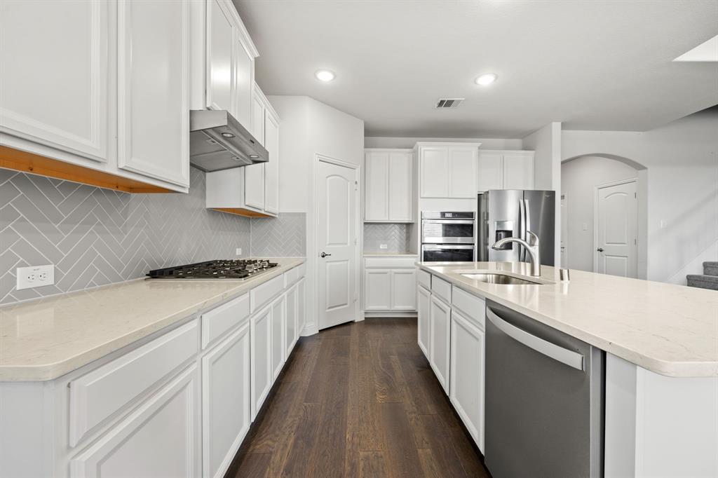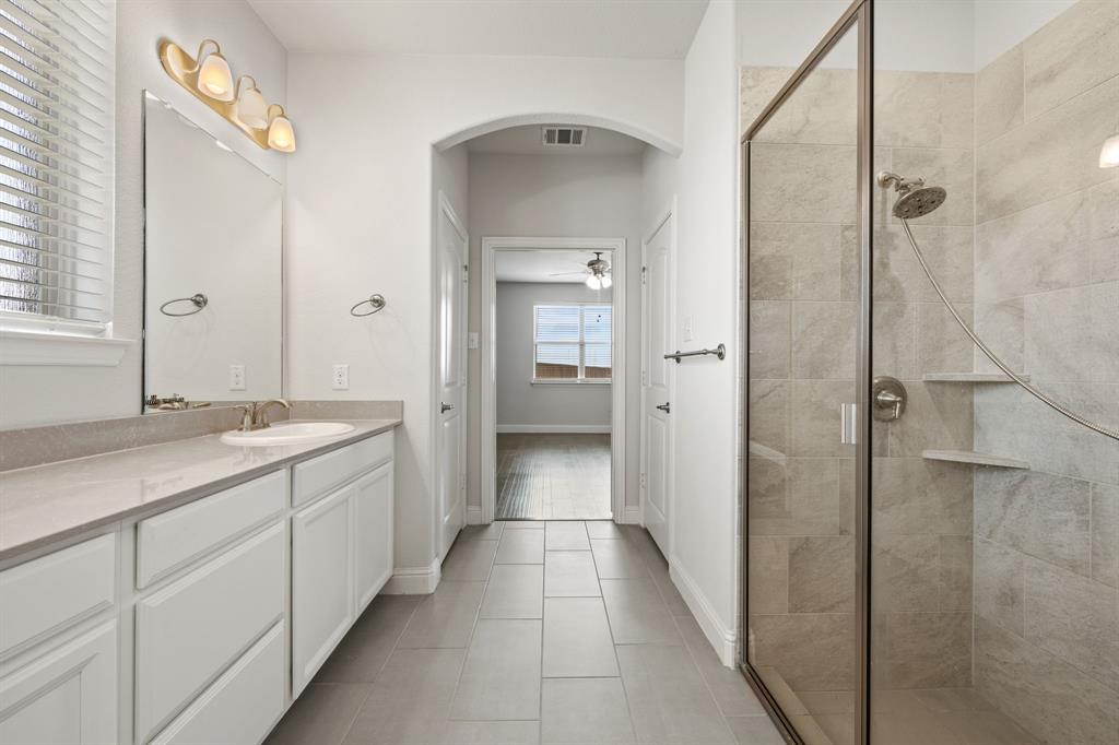 Welcome Home to Spectacular Devonshire, one of Kaufman counties finest master planned communities. Complete with a lavishly designed clubhouse, swimming pool, parks and playgrounds throughout, fabulous views of Dallas off in the distance. Situated on nearly a quarter acre lot that offers complete privacy, no neighbors on one side, only in the distance in the rear, and no backyard views of homes to the right, complete privacy combined with a massive back yard and a nice sized covered patio and full gutters surround the home. Best floor plan in the subdivision hands down for the price and loaded in upgrades. The primary and secondary bedrooms downstairs are en-suite and have full baths, perfect for generational living. The formal dining room can also be a study and features French doors. Gorgeous hard wood floors downstairs, no carpet. Open floor plan concept, island kitchen, custom cabinetry features a pull out trash can drawer, Quartz counter tops, gas cook top, and upgraded stainless steel appliances. Two nice sized bedrooms, game room, and full bath upstairs. This home is fully insulated, interior walls included and foam blown insulation in the attic makes the attic space bearable in the hottest temps, and it's loaded in closet and attic storage space. Walking distance to elementary school and clubhouse that has tons of community activities every month!
