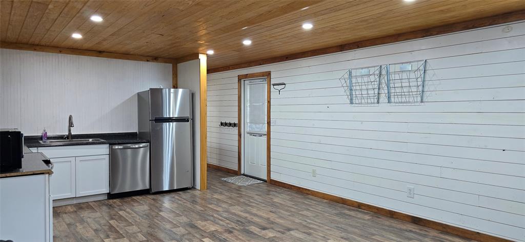 Welcome to your country escape just 1.4 miles from world-famous Lake Fork! This charming cottage sits on nearly an acre and offers endless possibilities whether you’re looking for a starter home, weekend getaway, or a great VRBO investment. Inside you’ll find an open floor plan with an eat-in kitchen, stainless appliances, durable metal roof, and updated bath with modern fixtures. A convenient laundry nook with stacked washer-dryer connections makes daily living easy, while the cozy covered porch and cross-fenced yard provide the perfect outdoor retreat. Major improvements were completed in 2023, including a aerobic septic system, water meter, and electric service. With relaxed deed restrictions, you can build your dream country home, expand, move in a manufactured or modular home, or simply enjoy it as a turnkey cottage. The subdivision is RV-friendly, making it a versatile option for those who want to pull in and start enjoying the Lake Fork community right away. Whether you’re searching for peace and quiet, a flexible investment, or your own slice of country charm near the lake, this property offers it all.