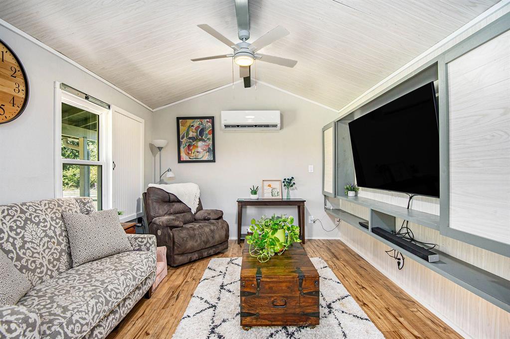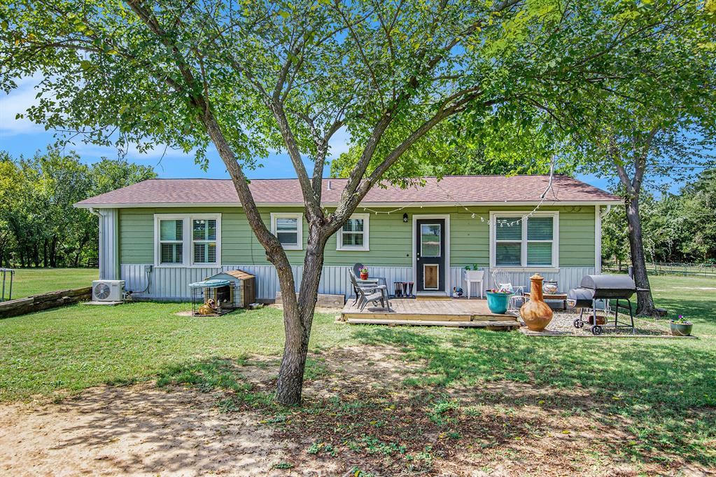 Welcome to this big beautiful space in Azle TX. The property has plenty of room for outdoor living, homesteading and hobbies. This quaint farm house design offers a kitchen with an island that flows into the living and dining areas, creating an open and functional layout. With two bedrooms, this home provides flexibility to suit your needs, whether for guests, an office, or additional living space.