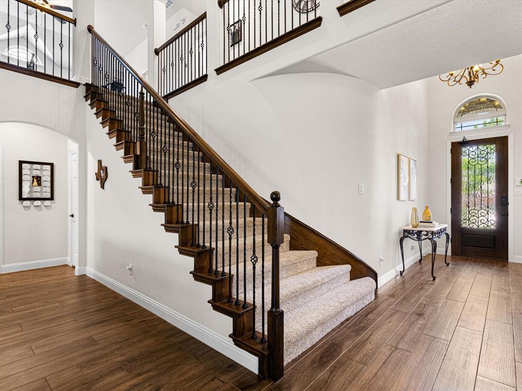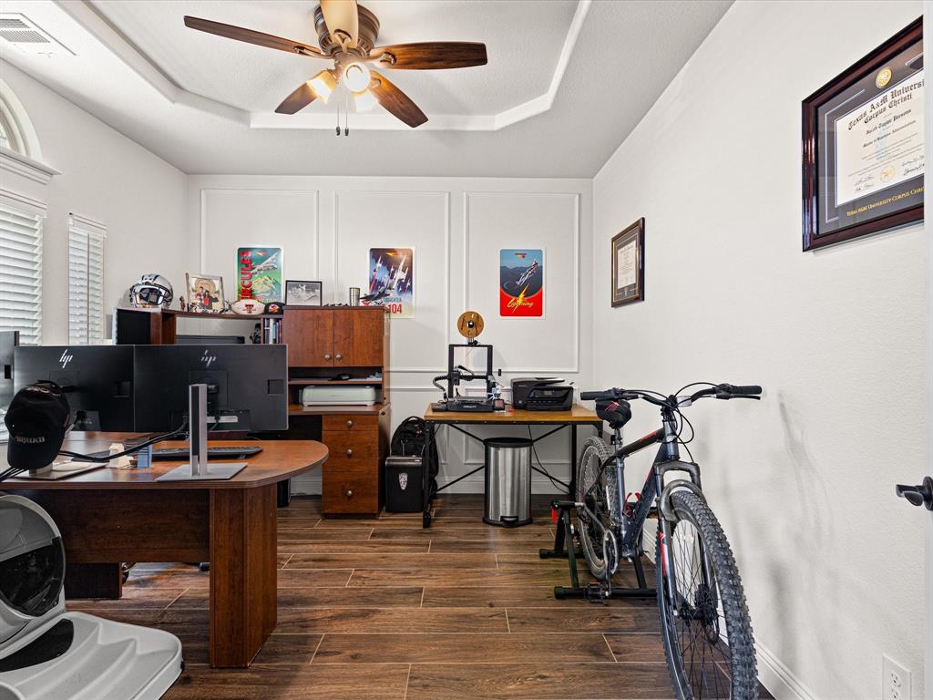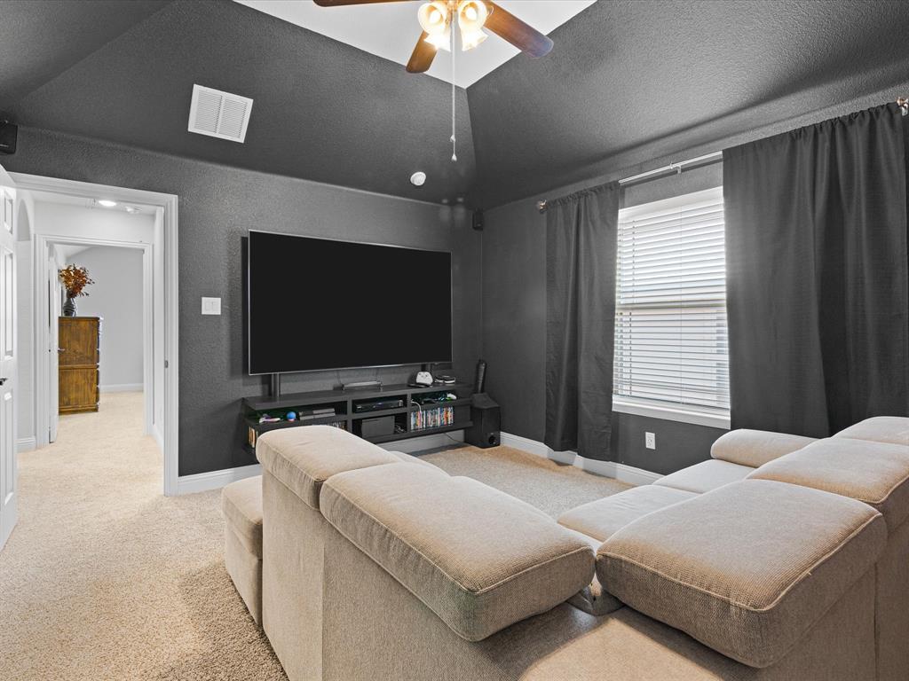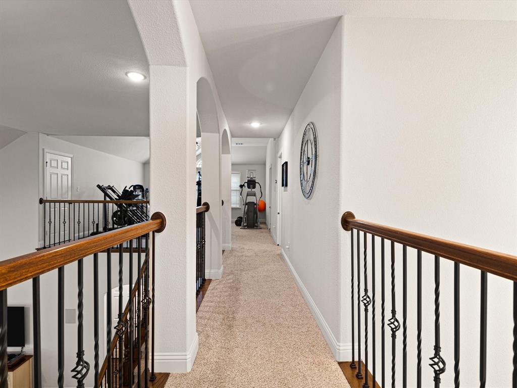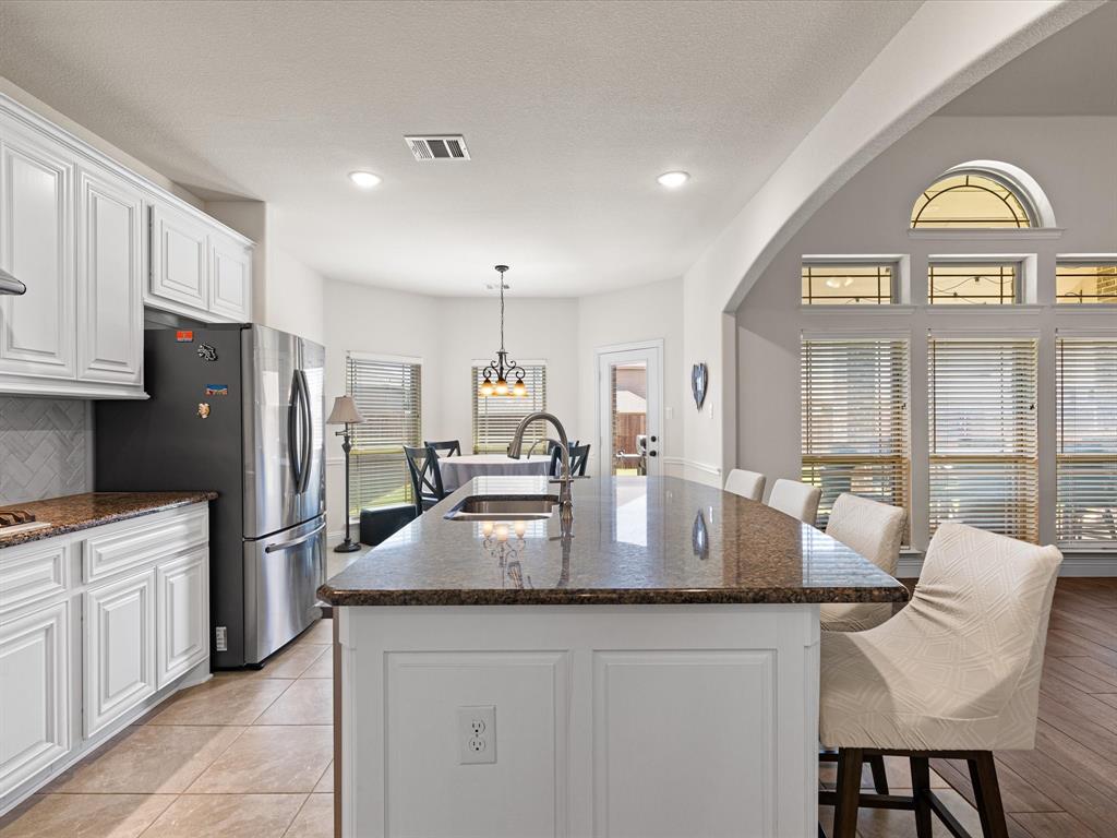 Welcome to this well maintained charming home located in the highly sought-after Marine Creek Ranch community. This spacious 5-bedroom, 3.5-bathroom home offers 3399 sq ft of thoughtfully designed living space. The open-concept floor plan effortlessly blends the kitchen, dining, and living areas, making it ideal for both everyday living and entertaining guests. With ample room for all your storage and organization needs, this home features a custom, extended-length garage, three attic accesses, an extra-large covered porch, and generous walk-in closets throughout. Inside, the living area is highlighted by a cozy gas fireplace and ceiling fans in every room to provide year-round comfort. High ceilings and expansive windows allow natural light to flood the space, creating a bright and welcoming atmosphere. The kitchen is a chef’s dream, complete with granite countertops, an oversized island, double ovens, and a walk-in pantry. The private primary bedroom, located on the first floor, offers a peaceful retreat. Upstairs, you’ll find a versatile flex space, perfect for a playroom, second living area, or home gym. This home also includes a dedicated office, which can be used for work or converted into additional flex space, depending on your needs. Whether you require a quiet space for productivity or a multi-purpose room, this area offers endless possibilities for customization. Situated within walking distance of the lake, community pool, and a brand-new park, this home enjoys a prime location with easy highway access. Just 10 minutes from downtown Fort Worth, you’ll have quick access to shopping, dining, and entertainment. Extended garage offers project workspace in addition to parking! Don’t miss your chance to own this stunning home in an unbeatable location.