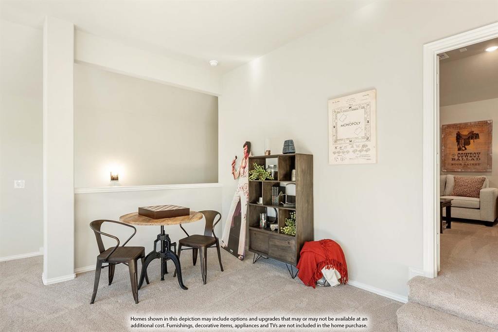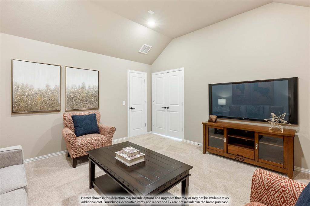 *Seller pays $15K towards closing costs or rate buy down.* BRAND NEW & NEVER LIVED IN! READY October 2025! The Carolina IV by Bloomfield Homes is a thoughtfully designed 2-story plan offering 4 bedrooms, 3 full baths, and a 2.5-car garage, set on an interior lot with a beautiful brick-and-stone exterior that delivers timeless curb appeal. Step inside through the covered porch into a wide foyer that opens to a bright Study with dual doors and a Formal Dining Room, perfect for entertaining or working from home. Durable wood flooring flows throughout the main living areas, leading you into an open Family Room anchored by a dramatic stone-to-ceiling fireplace with cedar mantel. The Deluxe Kitchen is equipped with built-in stainless steel appliances, a double oven, custom cabinetry, upgraded Quartz countertops, a large walk-in pantry, and a charming buffet in the Breakfast Nook, making it as functional as it is stylish. The private first-floor Primary Suite is a true retreat with a spacious sitting area, oversized walk-in closet, dual vanities, soaking tub, and a separate shower. Upstairs you’ll find a large Game Room plus a dedicated Media Room for movie nights and entertaining. Outside, the covered patio provides a shaded space to enjoy your backyard, while the extended 2.5-car garage adds extra storage and parking flexibility. With its balance of open living areas, private retreats, and elevated finishes, the Carolina IV delivers both comfort and sophistication for modern living at Liberty in Melissa. Call or visit today to learn more!