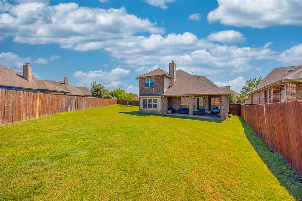 *****Ask about the 100% financing and closing cost assistance of $7500 *****Beautifully designed 4-bed, 3½-bath home in Devonshire, Forney! This 3,240-sq-ft residence sits majestically on a .32-acre corner lot boasting hand-scraped wood floors upon entry, an open-concept living space centered by a cozy gas-lit fireplace, and a chef-inspired kitchen with a grand granite island and bar seating. Upstairs overlooks the heart of the home with seamless flow between floors. The outdoor oasis is an entertainer’s delight complete with a built-in stone grill and covered patio, perfect for al fresco dining year-round. Community perks include a clubhouse, pool, jogging paths, greenbelt, and scenic lake access. Additional features include a 3-car garage and well-maintained landscaping with a sprinkler system. Located in Forney ISD, this home offers the perfect blend of luxury, comfort, and lifestyle!