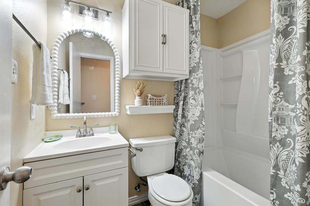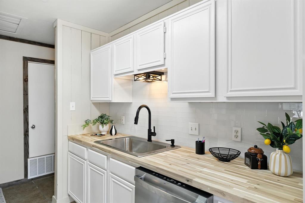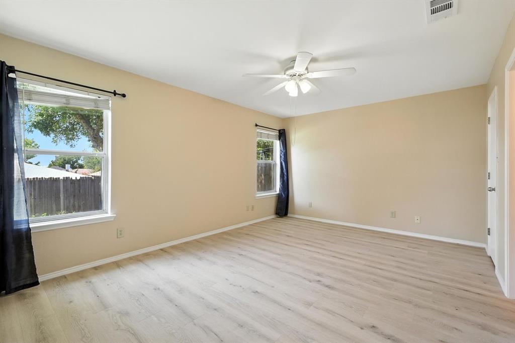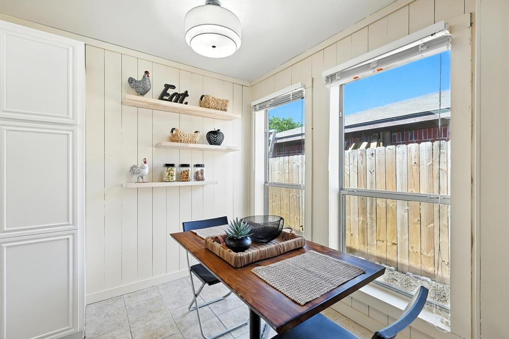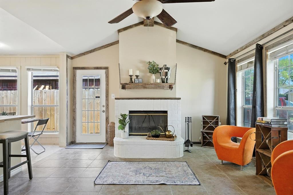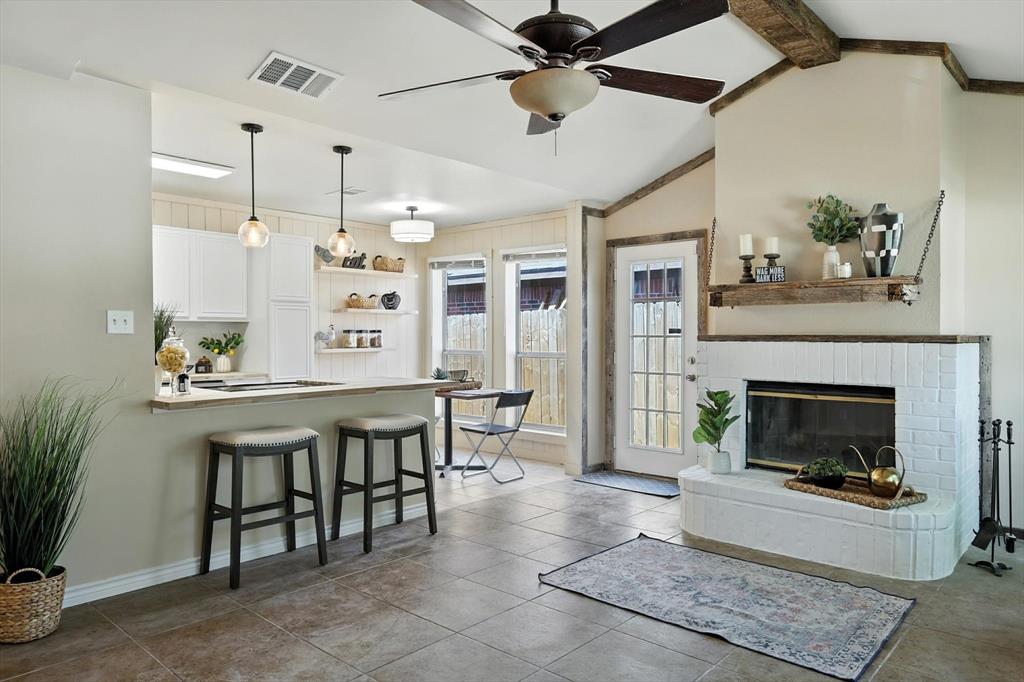 Fully updated, vaulted ceilings in tiled living area open to kitchen with new stove, dishwasher and butcher block island and counters. New deep black sink, white cupboards, open shelves with painted wood paneling. New light fixtures in kitchen and bathrooms and back bedroom. Fresh paint through out, new manufactured light colored wood flooring in bedrooms. Both bathrooms updated, new shower door and brand new bathtub and vanities. Side yard has rock and stepping stones leading to a large tree in the backyard. Close to shopping and walking distance highly desirable Keller schools. HVAC new in 2023. Roof 2017.