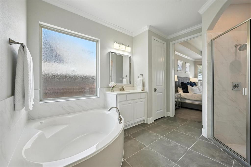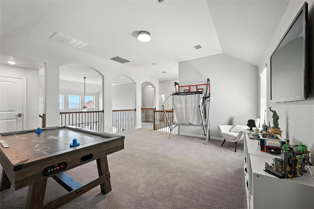 Upstairs, enjoy a game room and media room for endless family fun. The primary suite offers a spa-like retreat with a garden tub, separate shower, and a generous walk-in closet.