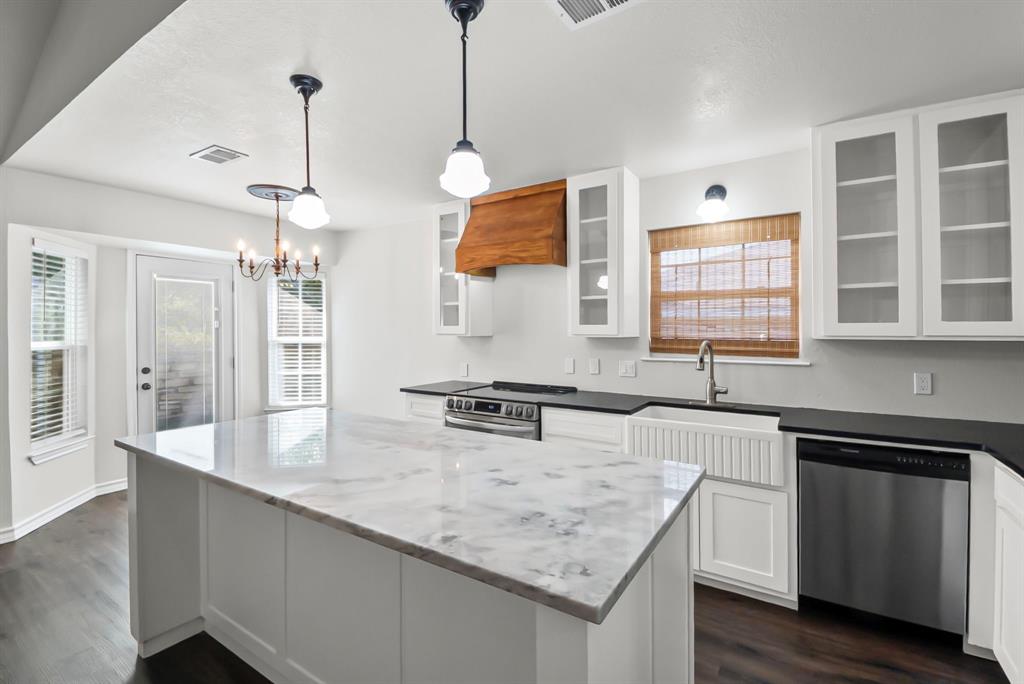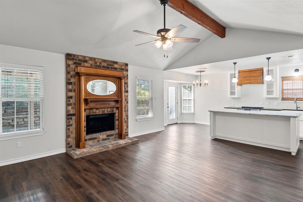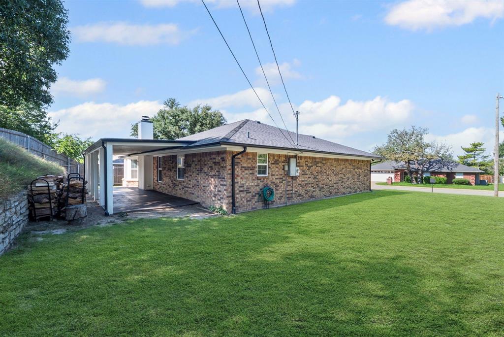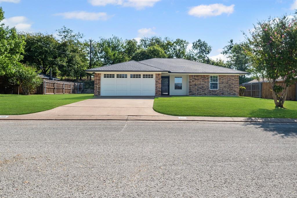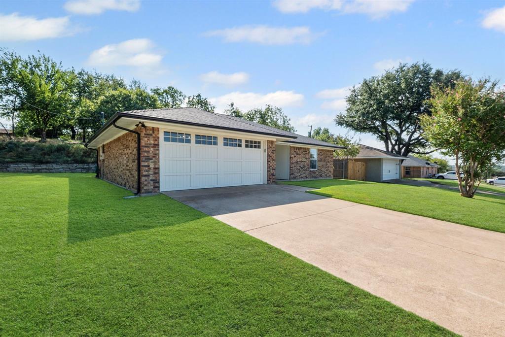 A welcoming, friendly community -- without any HOA restrictions -- in one of Weatherford’s most desirable neighborhoods, the Forest Ridge Addition. Beautiful and recently remodeled 3-bed, 2-bath home sits on an oversized lot with ample room for a pool or RV storage on a cul-de-sac street. Located 1.5 miles from Courthouse Square on the East side of Weatherford with easy access to Hwy 180, Bankhead Hwy, Ric Williamson and I-20. Curb appeal shines with custom wood garage door and manicured yard. Open floor plan features vaulted ceiling and wood-burning fireplace with antique oak mantle. The kitchen boasts stainless appliances, farm sink, granite counters, and a quartz-marble island. Custom cabinetry with hidden garbage, recycling and microwave adds efficiency and style. Natural light fills the home with all new windows and a full-lite glass door. Three flexible bedrooms offer comfort or workspace—one with French doors for easy home-office use. The private back and expansive side-yard invite outdoor living with a 30-foot covered porch and greenbelt behind. Recent upgrades include fresh interior and exterior paint, new attic insulation, new Heat-AC with all new ductwork, new windows throughout, new vinyl flooring, all new light fixtures & fans, custom-wood kitchen cabinets, new roof with hail-wind-resistant shingles with 20-year transferable warranty, new gutters with leaf guards, and French drains on both sides. Close to schools and local amenities in the heart of Weatherford, this stunning home is move-in ready!